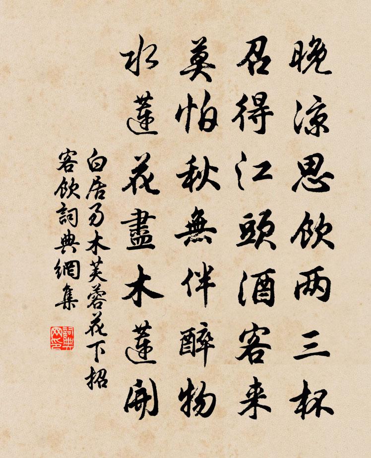 晚涼思飲兩三杯,召得江頭酒客來。莫怕秋無伴醉物,水蓮花盡木蓮開。