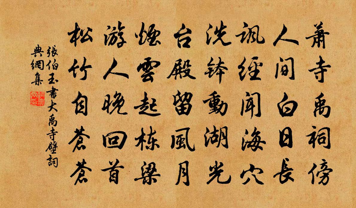 詩詞名句歷史字典書法欣賞書法字典國語詞典說文解字康熙字典古漢語字典標 題 作 者 詩 句 書大禹寺壁作者:張伯玉 朝代:宋代書大禹寺壁原文蕭寺禹祠傍,人間白日長。諷經聞海穴,洗缽動湖光。台殿留風月,煙雲起棟樑。遊人晚回首,松竹自蒼蒼。詩詞問答問:書大禹寺壁的作者是誰?答:張伯玉問:書大禹寺壁寫於哪個朝代?答:宋代張伯玉書大禹寺壁書法欣賞書大禹寺壁書法作品詩詞推薦自和葉茵〔宋代〕壯士須張燕角弧,男兒須誦聖人書。譬如田叟祈多稼,未有春時不荷鋤。分內功名從早晚,腹中學問怕空疏。老夫句周文璞〔宋代〕本是離騷國里人。次韻春日即事六首洪皓〔宋代〕暮春百卉未舒紅,盡日尋芳逆晚風。誰道倦遊鞍馬上,且投佳句錦囊中。南歌子陳克〔宋代〕鳳籙飛醇酎,龍筵噴異香。又還仁祝延長。正對金風玉露、爽秋光。一種莊椿老,五杸仙桂芳。當年天產竇家郎。早春殘雪裴虔余〔唐代〕霽日雕瓊彩,幽庭減夜寒。梅飄余片積,日墮晚光殘。零落偏依桂,霏微不掩蘭。陰林披霧縠,小沼破冰盤。曲檻酬諸公宿鏡水宅嚴維〔唐代〕倖免低頭向府中,貴將藜藿與君同。陽雁叫霜來枕上,寒山映月在湖中。詩書何德名夫子,草木推年長數公。聞道與叔驥父子別後悵然懷之三首趙蕃〔宋代〕客中得君來,念我忘逼仄。君行竟先我,未免為此別。自憐性多忤,每負朋友責。如何君父子,相與獨無隙。摸魚兒·送春張翥〔元代〕漲西湖、半篙新雨,麯塵波外風軟。蘭舟同上鴛鴦浦,天氣嫩寒輕暖。簾半卷,度一縷、歌雲不礙桃花扇。鶯嬌燕趙逵明大社四月一日招游西湖十首楊萬里〔宋代〕御池水滿苑門開,泥帶飛花路帶苔。到得孤山翻作惡,海棠鬧月不曾來。和答詩十首。答箭鏃白居易〔唐代〕矢人職司憂,為箭恐不精。精在利其鏃,錯磨鋒鏑成。插以青竹竿,羽之赤雁翎。勿言分寸鐵,為用乃長兵。聞有一剪梅唐寅〔明代〕紅滿苔階綠滿枝。杜宇聲聲,杜宇聲悲。交歡未久又分離。彩鳳孤飛,彩鳳孤棲。別後相思是幾時。後會難知,後用過韻冬至與諸生飲酒蘇軾〔宋代〕小酒生黎法,乾糟瓦盎中。芳辛知有毒,滴瀝取無窮。凍醴寒初泫,春醅暖更饛。華夷兩樽合,醉笑一歡同。里閈病起楊時〔宋代〕竹風帶雨作秋聲,半睡惟聞鳥雀爭。老病衰殘惟骨立,白頭看鏡不須驚。隨州錢相公輓歌三首梅堯臣〔宋代〕築岩無往夢,游岱有飛魂。墮淚隋侯國,遺金漢帝恩。文章留日域,忠孝在王門。天道何由問,秋風遍九原。徐偃王廟劉克莊〔宋代〕仁暴由來各異施,秦徐至竟孰雄雌。君看驪岫今無墓,得似柯山尚有祠。陳待制輓詩葉適〔宋代〕喚作成虧總雪消,等閒好惡任風飄。齊侯自要乘千駟,顏子何妨飲一瓢。賀新郎(實之用前韻為老者壽,戲答。)劉克莊〔宋代〕身畔無絲縷。但從前、練裳練帨,做他家主。甲子一周加二紀,兔走烏飛幾度。賽孔子、如來三五徐陵云:小如來自廬山折桂旛竿原下望彭蠡湖握杖過前山僧舍釋正覺〔宋代〕木落山骨瘦,水退沙痕隆。漁舟弄江日,一葉浮軟紅。眼底事不俗,道人心若沖。旛竿頭進步,雲水展家風。賢者之孝二百四十首徐季登林同〔宋代〕南州徐高士,姓字滿東都。有子篤孝行,終喪竟隱居。採桑子馮延巳〔唐代〕笙歌放散人歸去,獨宿紅樓。月上雲收,一半珠簾掛玉鉤。起來點檢經由地處處新愁。憑仗東流,將取離心過橘洲名句推薦回首故山千里外,別離心緒向誰言?楊徽之《寒食寄鄭起侍郎》 驚風亂颭芙蓉水,密雨斜侵薜荔牆。柳宗元《登柳州城樓寄漳汀封連四州》 藍橋何處覓雲英。只有多情流水、伴人行。蘇軾《南歌子·寓意》 參差連曲陌,迢遞送斜暉。李商隱《落花》 反者道之動;弱者道之用。老子《老子·德經·第四十章》 君子恥其言而過其行。孔子弟子《論語·憲問篇》 馬上逢寒食,愁中屬暮春。宋之問《途中寒食題黃梅臨江驛寄崔融》 火形嚴,故人獻灼;水形懦,人多溺。韓非及後人《韓非子·內儲說上七術》 一寸柔腸情幾許?薄衾孤枕,夢回人靜,徹曉瀟瀟雨。惠洪《青玉案·絲槐煙柳長亭路》 窮不失義,達不離道。孟子《孟子·盡心章句上·第九節》