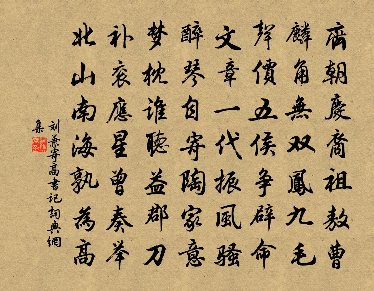 詩詞名句歷史字典書法欣賞書法字典國語詞典說文解字康熙字典古漢語字典標 題 作 者 詩 句 寄高書記作者:劉兼 朝代:唐代寄高書記原文齊朝慶裔祖敖曹,麟角無雙鳳九毛。聲價五侯爭辟命,文章一代振風騷。醉琴自寄陶家意,夢枕誰聽益郡刀。補袞應星曾奏舉,北山南海孰為高?詩詞問答問:寄高書記的作者是誰?答:劉兼問:寄高書記寫於哪個朝代?答:唐代問:寄高書記是什麼體裁?答:七律劉兼寄高書記書法欣賞寄高書記書法作品注釋全唐詩:卷766-33詩詞推薦恩制賜食於麗正殿書院宴賦得林字張說〔唐代〕東壁圖書府,西園翰墨林。誦詩聞國政,講易見天心。位竊和羹重,恩叨醉酒深。緩歌春興曲,情竭為知音。上清詞張繼〔唐代〕紫陽宮女捧丹砂,王母令過漢帝家。春風不肯停仙馭,卻向蓬萊看杏花。四安道中所見牟巘五〔宋代〕兒能忍渴留佳醖,我亦開包得快梨。自笑初無泥可洗,頹然還得醉如泥。戰掉醜奴兒 贈萊州平等會首馬鈺〔元代〕世傳斑竹佳人淚。語話皆非。因擊三屍。血染斑斑事最奇。馬風知。專投正直無私杖,休笑輕微。最好閒攜。屏盡和徐榷院唐佐見寄七首何夢桂〔宋代〕望有玉山果,細實如房蜂。世味羞桃李,棄此盤盎巾。膚頑味更澀,僅能殺三蟲。賴以著微績,始襲炎帝封。不意朝中措(應令錦林檎)姜特立〔宋代〕芳林曲徑錦玲瓏。膩白借微紅。元是海棠標格,司花點化東風。端相渾似,玉真未醉,春思先慵。留取淺顰低笑,殿前歡衛立中〔元代〕碧雲深,碧雲深處路難尋。數椽茅屋和雲賃。雲在松陰。掛雲和八尺琴,臥苔石將雲根枕,折梅蕊把雲梢沁。雲心離維揚宋伯仁〔宋代〕不為鱸魚憶故鄉,只緣心事近重陽。鬢絲添得三分白,空被黃花笑一場。洛陽長句二首杜牧〔唐代〕草色人心相與閒,是非名利有無間。橋橫落照虹堪畫,樹鎖千門鳥自還。芝蓋不來雲杳杳,仙舟何處水潺潺?君王明復作文房四物詩因用其韻郭印〔宋代〕銳精文字里,今古嘆毛錐。職在中書貴,功因大手奇。楮君頻借重,墨客最相知。絕跡頭童日,麟經萬世師。紫瑞香三首陳藻〔宋代〕放蕊爭先見菊彫,逐花旋拆天桃夭。若為耐久還柔脆,莫折仙枝本易搖。延祥寺耿南仲〔宋代〕羅浮仙客隱,準擬訪丹台。為國身將老,逢山眼倍開。月依松上過,風自竹間來。僧欲延清話,茶香屢撥灰。萬年春 夢得一枝白筆馬鈺〔元代〕昨夜山侗,夢遊蓬島逢鍾呂。文房數。一枝純素。不讓蒙恬做。遠勝江淹,五色何曾污。相宜處。書心開悟。堪應同宋景瞻分題汴上行黃庭堅〔宋代〕東風何時來,堤柳芳且柔。河冰日已銷,漫漫春水流。寒梅未破萼,芳草綠猶稠。歲月不我還,念此人生浮。高車州城西園入齋祠社陳叔達〔唐代〕升壇預潔祀,詰早肅分司。達氣風霜積,登光日色遲。農教先八政,陽和秩四時。祈年服垂冕,告幣動褰帷。瘞地哭德和伯氏六首林景熙〔宋代〕伯兮癯似松間鶴,季也孤於雲水僧。昨夜夢中聞笑語,覺來秋在影堂燈。秋日病中張祜〔唐代〕析析檐前竹,秋聲拂簟涼。病加陰已久,愁覺夜初長。坐拾車前子,行看肘後方。無端憂食忌,開鏡倍萎黃。觀佽飛斬蛟龍圖贊李白〔唐代〕佽飛斬長蛟,遺圖畫中見。登舟既虎嘯,激水方龍戰。驚波動連山,拔劍曳雷電。鱗摧 * 下,血染滄江變。感此中秋夜有客攜酒方回〔宋代〕中秋謂無酒,忽有攜酒者。聯翩二三客,柴門系嘶馬。膨脝兩大瓮,待月列堂下。空庭碧天天闊,秋色極瀟灑。皓又五言二首劉克莊〔宋代〕子去臨民社,公私必小寬。皆雲官似水,誰道縣如灘。村絕追胥跡,溪無督賦瘢。自從陳李後,古調少 * 。名句推薦馬上逢寒食,愁中屬暮春。宋之問《途中寒食題黃梅臨江驛寄崔融》 惟賢惟德,可以服人。司馬光《資治通鑑·魏紀·魏紀二》 是是、非非謂之知,非是、是非謂之愚。荀子《荀子·修身》 那裡有鬧紅塵香車寶馬?祗不過送黃昏古木寒鴉。王磐《古蟾宮·元宵》 飛光飛光,勸爾一杯酒。李賀《苦晝短》 驅馬天雨雪,軍行入高山。杜甫《前出塞九首》 酒濃春入夢,窗破月尋人。毛滂《臨江仙·都城元夕》 生則盡力,死則死耳!張廷玉《明史·列傳·卷二十》 不誘於譽,不恐於誹。荀子《荀子·非十二子》 上醫醫國,其次疾人左丘明《國語·晉語·醫和視平公疾》
