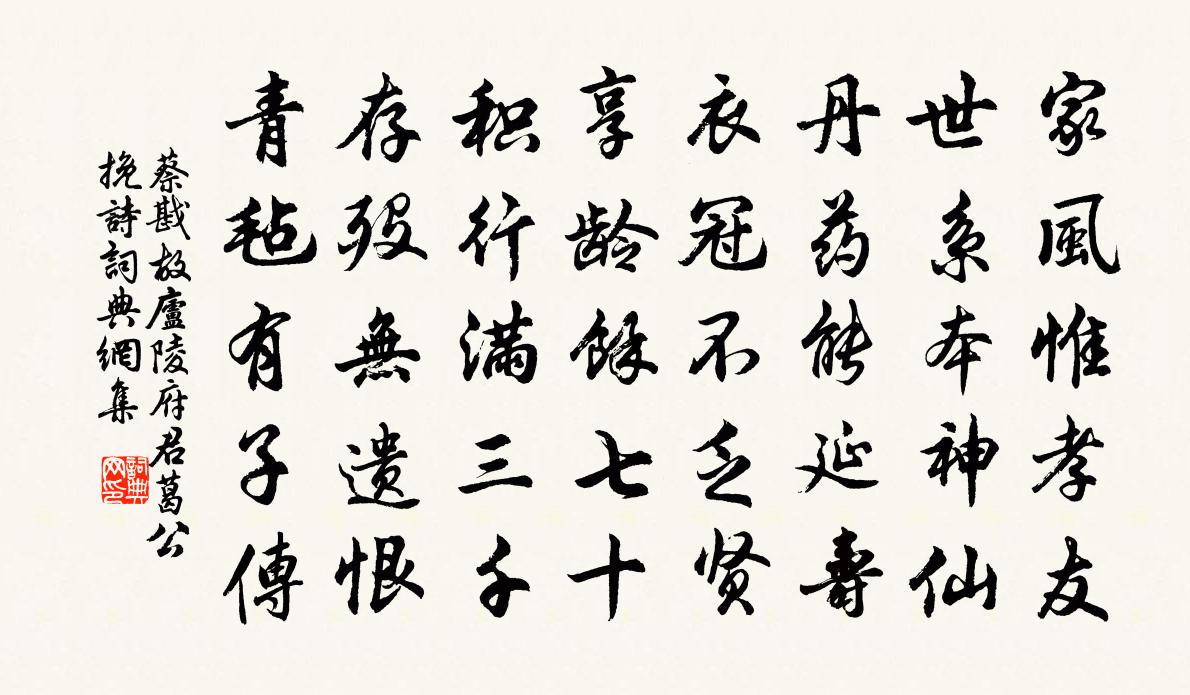 詩詞名句歷史字典書法欣賞書法字典國語詞典說文解字康熙字典古漢語字典標 題 作 者 詩 句 故廬陵府君葛公輓詩作者:蔡戡 朝代:宋代故廬陵府君葛公輓詩原文家風惟孝友,世系本神仙。丹藥能延壽,衣冠不乏賢。享齡餘七十,積行滿三千。存歿無遺恨,青氈有子傳。詩詞問答問:故廬陵府君葛公輓詩的作者是誰?答:蔡戡問:故廬陵府君葛公輓詩寫於哪個朝代?答:宋代問:故廬陵府君葛公輓詩是什麼體裁?答:五律蔡戡故廬陵府君葛公輓詩書法欣賞故廬陵府君葛公輓詩書法作品詩詞推薦秋懷十首微雲淡河漢疏雨滴梧桐為韻楊冠卿〔宋代〕飢來詎堪忍,振履商頌歌。時人不料理,政可著岩阿。喻龜且曳尾,勸公無渡河。一朝失腳去,寧得此婆娑。次韻酬答陳席慶伯見貽二首趙蕃〔宋代〕詩成每輒肺肝愁,那與人充耳目謀。敢謂老懷千里志,故憐飢作四方游。若人尚隱南山霧,老我合從春水鷗。舊契卜居杜甫〔唐代〕歸羨遼東鶴,吟同楚執珪。未成游碧海,著處覓丹梯。雲障寬江左,春耕破瀼西。桃紅客若至,定似昔人迷。李總乾遺詩十四句師於一句之下加頌七句釋印肅〔宋代〕檐棟如翬飛,世間那得知。不是風旛動,如如應好機。青青是翠竹,孤雲無性馳。頭頭垂示處,子細好明知。山丹花楊萬里〔宋代〕春去無芳可得尋,山丹最晚出雲林。柿紅一色明羅袖,金粉群蟲集寶簪。花似鹿匆還耐久,葉如芍藥不多深。青泥山中梅花馬廷鸞〔宋代〕霜崖雪壁花千樹,玉骨冰魂月一痕。芳潔不為塵土涴,瓊英跕跕墮雲根。春日出苑游矚(太子時作)李隆基〔唐代〕三陽麗景早芳辰,四序佳園物候新。梅花百樹障去路,垂柳千條暗回津。鳥飛直為驚風葉,魚沒都由怯岸人。惟願自詠白居易〔唐代〕悶發每吟詩引興,興來兼酌酒開顏。欲逢假日先招客,正對衙時亦望山。勾檢簿書多鹵莽,堤防官吏少機關。誰能夏日南亭懷辛大孟浩然〔唐代〕山光忽西落,池月漸東上。散發乘夜涼,開軒臥閒敞。荷風送香氣,竹露滴消響。欲取鳴琴彈,慨無知音賞。感此六州歌頭(元夕和宜可)劉將孫〔宋代〕天涯倦客,如夢說今宵。承平事,車塵漲,馬鳴蕭。火城朝。狂歌閒嬉笑,平康客,五陵俠,閒相待,沙河路,灞浣溪沙晏殊〔宋代〕楊柳陰中駐彩旌。芰荷香里勸金觥。小詞流入管弦聲。只有醉飲寬別恨,不須朝暮促歸程。雨條菸葉系人情。和徐季功舒蘄道中二十首王之道〔宋代〕光風習習日暉暉,墮絮飛紅積漸稀。芍藥酴醿看正好,一尊能共送春歸。簡瑄上人裘萬頃〔宋代〕千里歸來覓故林,朱弦雖在少知音。青風玉幾山前路,忍負平生一片心。馬司戶所作墨梅並示佳作因次韻蔡沈〔宋代〕誰把霜毫歸庾嶺,王孫去後久寥寥。長時月夜橫疏影,鎮日春風上素綃。可笑兒童尋剪摘,如知蜂蝶亦邀招。人心平都山二首李流謙〔宋代〕福地何蕭爽,真祠自杳冥。棟樑傳曩昔,草木帶仙靈。霧市朝仍合,雲扉夜不扃。天風吹玉磬,應是誦黃庭。殘句:日顆曝乾紅玉軟黃庭堅〔宋代〕日顆曝乾紅玉軟,風枝台動練羅鮮。江上王令〔宋代〕羃羃江城沒遠煙,暮雲歸族忽相連。春江流水出天外,晚渡歸舟下日邊。杏萼春深翻淺纈,柳花風遠曳晴綿。無錢題酒瓮呈夢得白居易〔唐代〕若無清酒兩三瓮,爭向白須千萬莖?麴糵銷愁真得力,光陰催老苦無情。凌煙閣上功無分,伏火爐中藥未成。更擬雜感陸游〔宋代〕射的山前花柳新,典衣買酒過殘春。但甘身作噲等伍,莫信人間髯絕倫。奉和御製龍圖等閣觀三聖御書宋庠〔宋代〕群玉中天府,珍圖綠錯文。叢楹開禹穴,寶畫爛堯雲。萬牒真行辨,千題甲乙分。聖心尊世烈,披玩不知勤。名句推薦知君用心如日月,事夫誓擬同生死。張籍《節婦吟·寄東平李司空師道》 偏借其權勢,則上下易位矣,此言人臣之不可借權勢。韓非及後人《韓非子·備內》 思君如流水,何有窮已時。徐幹《室思》 相思了無益,悔當初相見。朱彝尊《憶少年·飛花時節》 還怕兩人俱薄命,再緣慳、剩月零風裡。納蘭性德《金縷曲·亡婦忌日有感》 漢兵已略地,四方楚歌聲。虞姬《和項王歌》 翻被梨花冷看,人生苦戀天涯。張炎《朝中措·清明時節》 父老得書知我在,小軒臨水為君開。蘇軾《送賈訥倅眉》 居軒冕之中,不可無山林的氣味;處林泉之下,須要懷廊廟的經綸。洪應明《菜根譚·概論》 遙望洞庭山水色,白銀盤裡一青螺劉禹錫《望洞庭》