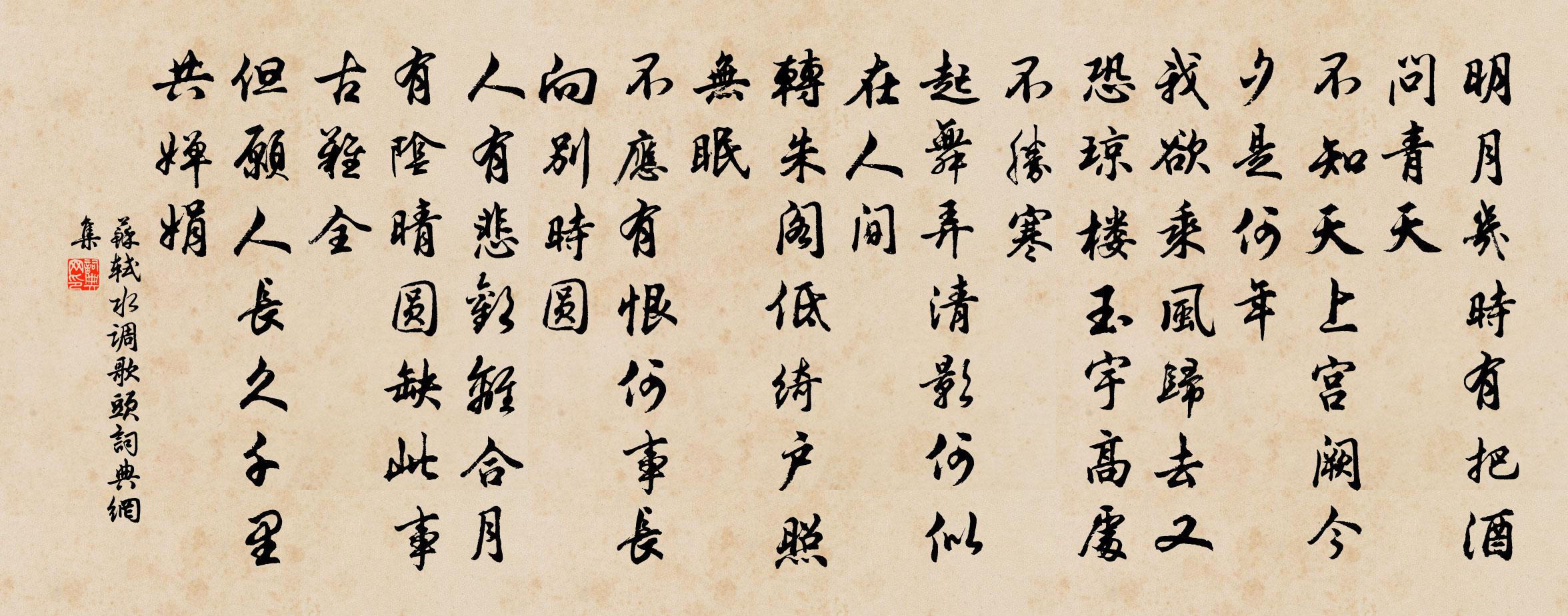 明月幾時有,把酒問青天。不知天上宮闕,今夕是何年?我欲乘風歸去,又恐瓊樓玉宇,高處不勝寒。