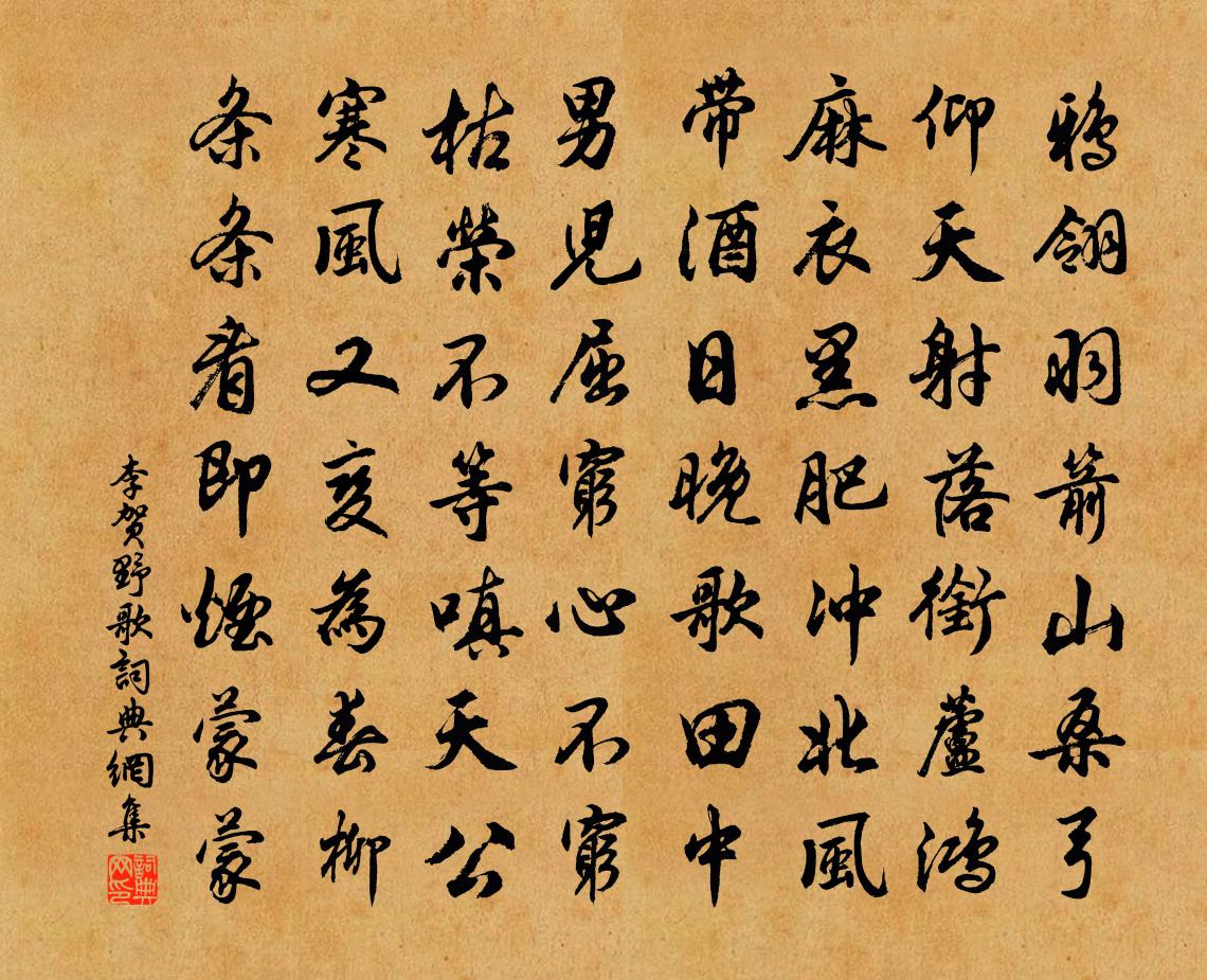 鴉翎羽箭山桑弓,仰天射落銜蘆鴻。麻1/1衣黑肥沖北風,帶酒日晚歌田中。