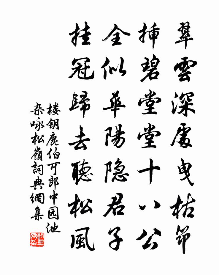 - 柏府樓台銜倒影,茅茨松竹瀉寒聲。