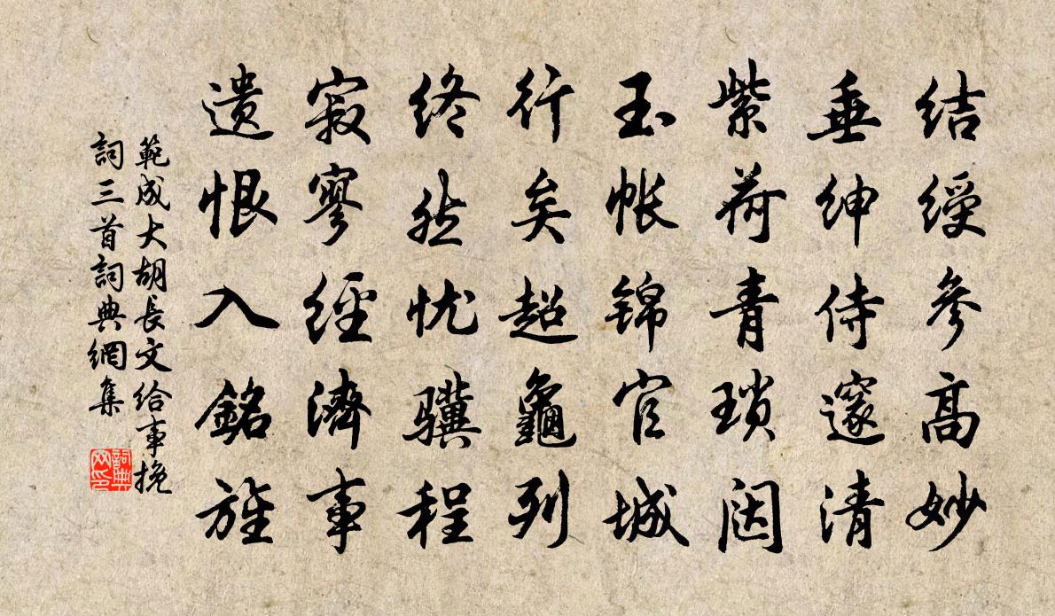 詩詞名句歷史字典書法欣賞書法字典國語詞典說文解字康熙字典古漢語字典標 題 作 者 詩 句 胡長文給事輓詞三首作者:范成大 朝代:宋代胡長文給事輓詞三首原文結綬參高妙,垂紳侍邃清。紫荷青瑣闥,玉帳錦官城。行矣超龜列,終然憂驥程。寂寥經濟事,遺恨入銘旌。詩詞問答問:胡長文給事輓詞三首的作者是誰?答:范成大問:胡長文給事輓詞三首寫於哪個朝代?答:宋代問:范成大的名句有哪些?答:范成大名句大全范成大胡長文給事輓詞三首書法欣賞胡長文給事輓詞三首書法作品詩詞推薦到九座陳宓〔宋代〕想像精藍九疊前,青鞋今得踏雲煙。霜邊澗水多成玉,嶺上人家半是仙。伏蟒千年無動意,老松何日不幽禪。可憐依韻答元卿強至〔宋代〕手把君詩愧暗投,為論昔會覺難酬。巨杯既醉行無算,大句相鏖敵固求。別後溪山應故態,近來寤寐憶前游。致身唐長慶中南池新亭碑在漢高帝廟側亭已失所在陸游〔宋代〕池廢新亭亦已無,遺碑半滅臥春蕪。文章綺靡雖非古,今代詞人不辦渠。題琵琶亭郭明復〔宋代〕香山居士頭欲白,秋風吹分湓城客。眼看世事等虛空,雲夢胸中無一物。舉觴獨醉天為家,詩成萬象遭梳爬。不管偈二首釋雲賁〔宋代〕一見便見,八角磨盤空晨轉。一得永得,奪錦硃砂如墨黑。秋風吹渭水,已落雲門三句里。落葉滿長安,幾個而今郊廟歌辭。武后享清廟樂章十首。第八武舞作佚名〔唐代〕荷恩承顧托,執契恭臨撫。廟略靜邊荒,天兵耀神武。演興四首初祀元結〔唐代〕山之乳兮葺太祠,木孫為桷兮木母榱。雲纓為□兮愚木栭。洞淵禪兮揭巍巍。塗木蘭兮蒔糅蔫,被弱草兮禘礿聯。三月三日宴王明府山亭(見《歲時雜詠》)陳子昂〔唐代〕暮春嘉月,上巳芳辰。群公禊飲,於洛之濱。透法身句釋重顯〔宋代〕潦倒雲門泛鐵船,江南江北競頭看。可憐無限垂鉤者,隨例茫茫失釣竿。句王隨〔宋代〕晚細雨余嵐疊翠,碧江風細浪成紋。喜雨口號呈陳守伯固十二首陳造〔宋代〕錢輕幣重病吾農,未有奇方起困窮。粗遣年豐官糴粟,少令錢幣各通融。慶江檢詳太夫人潛放〔宋代〕誰謂廬陵是富州,反成窮匱省支。壽筵只作家常辦,不學豪奢呈逞異差。阮郎歸·柳陰庭院占風曾覿〔宋代〕柳陰庭院占風光,呢喃清晝長。碧波新漲小池塘,雙雙蹴水忙。萍散漫,絮飄颺。輕盈體態狂。為憐流去落紅香,淳化中朝會二十三首佚名〔宋代〕九苞薦瑞,戴德膺仁。藻翰爰奪,靈音載振。非時不見,有道則臻。降岐匪匹,位舜為靈。句陳珏〔宋代〕石洞雲歸春雨足,海門月上夜潮生。游龍門分題十五首鴛鴦歐陽修〔宋代〕畫舷鳴兩槳,日暮芳洲路。泛泛風波鳥,雙雙弄紋羽。愛之欲移舟,漸近還飛去。寄崇福源長老釋智愚〔宋代〕一髮千鈞適此時,風前無語皺雙眉。松源正脈將枯竭,浚發靈源復是誰。直舍讎理律書呈同舍二首宋祁〔宋代〕舊文新札儼成行,柏燻微開帙氣香。天下書多殊未見,顏生應笑下雌黃。小松(一作杜荀鶴詩,非)羅隱〔唐代〕已有清陰逼座隅,愛聲仙客肯過無。陵遷谷變須高節,莫向人間作大夫。愚石歌何夢桂〔宋代〕大埠初分生怪石,曾與不周山作骨。山崩地缺天柱摧,片石耆姿轉奇崛。媧皇鍊石補天工,化作五星成五色。地下名句推薦事以密成,語以泄敗。韓非及後人《韓非子·說難》 曲終漏盡嚴具陳,月沒星稀天下旦。佚名《雞鳴歌》 風急桃花也似愁,點點飛紅雨。如晦《楚天遙過清江引·有意送春歸》 鳥飛千白點,日沒半紅輪。白居易《彭蠡湖晚歸》 楚王好細腰,宮中多餓死。佚名《無題》 王者不言有無,諸侯不說多少,食祿之 家,不與百姓爭利。李大師、李延壽《南史·列傳·卷三十三》 澄江平少岸,幽樹晚多花。杜甫《水檻遣心二首》 伊川桃李正芳新,寒食山中酒復春。宋之問《寒食還陸渾別業》 力拔山兮氣蓋世。時不利兮騅不逝。項羽《垓下歌》 沙上並禽池上暝。雲破月來花弄影。張先《天仙子·水調數聲持酒聽》
