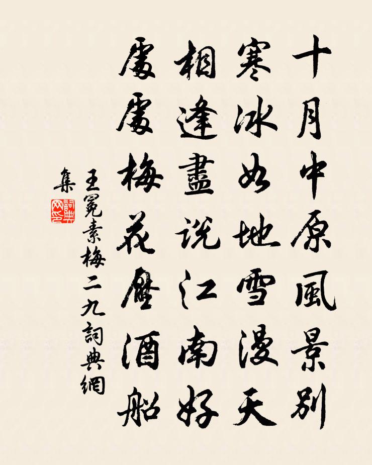 十月中原風景別,寒冰如地雪漫天。相逢盡說江南好,處處梅花壓酒船。