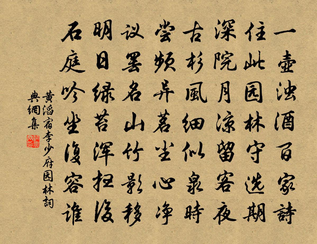 詩詞名句歷史字典書法欣賞書法字典國語詞典說文解字康熙字典古漢語字典標 題 作 者 詩 句 宿李少府園林作者:黃滔 朝代:唐代宿李少府園林原文一壺濁酒百家詩,住此園林守選期。深院月涼留客夜,古杉風細似泉時。嘗頻異茗塵心淨,議罷名山竹影移。明日綠苔渾掃後,石庭吟坐復容誰。詩詞問答問:宿李少府園林的作者是誰?答:黃滔問:宿李少府園林寫於哪個朝代?答:唐代問:宿李少府園林是什麼體裁?答:七律黃滔宿李少府園林書法欣賞宿李少府園林書法作品注釋全唐詩:卷705-43詩詞推薦挽友陳顏〔宋代〕去與來相引,修隨短共旋。只爭生有骨,方信死無權。老友身前法,文章覺後圓。知君能悟此,哭唁一徒然。山居避難六首陳著〔宋代〕三十六風輪,清磨萬古人。軍興山勝市,歲歉富齊貧。破絮身饒垢,乾糧舌費津。吾生不足問,世事入長顰。紹興十年發皇太后冊寶八首佚名〔宋代〕孝奉天儀,信維休德。發越徽音,禮文靡忒。永保嘉祥,時萬時億。歸於東朝,含飴燕息。獻滎陽公詩五十韻元稹〔唐代〕鄭驛騎翩翩,丘門子弟賢。文翁開學日,正禮騁途年。駿骨黃金買,英髦絳帳延。趨風皆蹀足,侍坐各差肩。解榻秋暑楊萬里〔宋代〕夏暑減未曾,秋暑增愈劇。老翁避無處,茅齋聊憩息。銀盆滿注水,銀水同一色。中涵雙桂影,倒臥一天碧。清光丁酉元日年七十一方回〔宋代〕晚節詩如白樂天,每逢元日有新篇。九臚唱第今三紀,七袠開端又一年。風雪五年憐過馬,兒孫百指望歸船。老身同家弟賦蠟梅詩得四絕句陳與義〔宋代〕韻勝誰能舍,色莊那得親。朝揚一映樹,到骨不留塵。菩薩蠻范成大〔宋代〕彤樓鼓密催金輪。沈沈青瑣重重幕。宣喚晚朝天。五雲籠暝煙。風急東華路。暖扇遮微雨。香霧撲人衣。上林烏滿淡圃兄生辰有詩次韻艾可翁〔宋代〕來壽吾兄玉局仙,郎君亦自醉頹然。亂離難得團圞日,清健何須少壯年。投老宦情雲在壑,憂時心事日行天。遐齡戲作墨竹二本贈鶴林因為之贊白玉蟾〔宋代〕一枝嫩綠,數葉老蒼。夜半月明,清露瀼瀼。村舍雜書陸游〔宋代〕中春農在野,蠶事亦隨作。手種臨安青,可飼蠶百箔。累累繭滿簇,繹繹絲上篗。老子雖安眠,衣帛可無怍。春步岳園二首董嗣杲〔宋代〕將軍墓域在杭州,如此家園入夢遊。誰惜再傳無嗣續,至今匙鑰屬官收。丙午二月十五日以府檄出宿了岩戴表元〔宋代〕衰年慕棲息,役役殊未休。天明發東郭,日晏泊西州。豈其千金軀,為此一餐謀。宿麥青已郁,稚桑黃亦稠。欣然碾建溪第一奉邀徐天隱奉議並效建除體黃庭堅〔宋代〕建溪有靈草,能蛻詩人骨。除草開三徑,為君碾玄月。滿甌泛春風,詩味生牙舌。平斗量珠玉,以救風雅渴。定知敘懷二首張九齡〔唐代〕弱歲讀群史,抗跡追古人。被褐有懷玉,佩印從負薪。志合豈兄弟,道行無賤貧。孤根亦何賴,感激此為鄰。晚節如夢令蔣捷〔宋代〕夜月溪篁鸞影。曉露岩花鶴頂。半世踏紅塵,到底輸他村景。村景。村景。樵斧耕蓑漁艇。頌古五十七首釋道昌〔宋代〕針頭削鐵,牛背拔毛。多將少使,冷作熱燒。直上法堂便下去,觸忤和尚重解註。知是般事休更休,茫茫壑與填溝寓言二首王安石〔宋代〕太虛無實可追尋,葉落松枝謾古今。若見桃花生聖解,不疑還自有疑心。新柳楊萬里〔宋代〕柳條百尺拂銀塘,且莫深青只淺黃。未必柳條能蘸水,水中柳影引他長。送李德素歸舒城黃庭堅〔宋代〕僧夏莫問途,麥秋宜煮餅。北寺旬休歸,長廊六月冷。簟翻寒江浪,茶破蒼璧影。李侯為我來,遽以歸期請。青衿名句推薦騁望因高雲外盡,鄉關回首愧煙蘿。石茂華《九月九日登長城關》 獨抱濃愁無好夢,夜闌猶剪燈花弄。李清照《蝶戀花·暖雨晴風初破凍》 驅馬天雨雪,軍行入高山。杜甫《前出塞九首》 一朝權在手,便把令來行。佚名《增廣賢文·下集》 轡搖銜鐵。蹴踏平原雪。張炎《清平樂·平原放馬》 相思謾然自苦,算雲煙、過眼總成空。戴復古《木蘭花慢·鶯啼啼不盡》 寒月悲笳,萬里西風瀚海沙。納蘭性德《採桑子·塞上詠雪花》 江春不肯留歸客,草色青青送馬蹄。劉長卿《送李判官之潤州行營》 誰憐旅愁荏苒。謾長門夜悄,錦箏彈怨。張炎《解連環·孤雁》 故去喜去惡,虛心以為道舍。韓非及後人《韓非子·揚權》