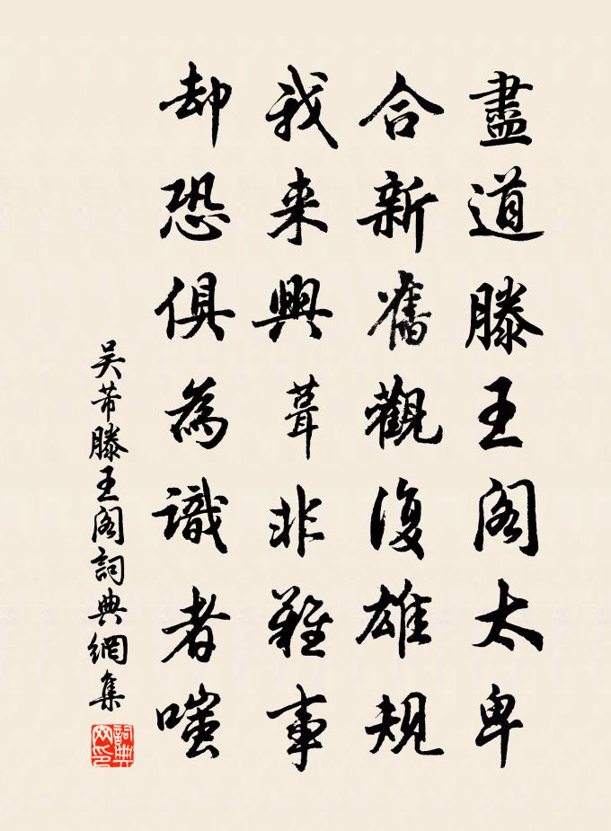 詩詞名句歷史字典書法欣賞書法字典國語詞典說文解字康熙字典古漢語字典標 題 作 者 詩 句 滕王閣作者:吳芾 朝代:宋代滕王閣原文盡道滕王閣太卑,合新舊觀復雄規。我來興葺非難事,卻恐俱為識者嗤。詩詞問答問:滕王閣的作者是誰?答:吳芾問:滕王閣寫於哪個朝代?答:宋代吳芾滕王閣書法欣賞滕王閣書法作品詩詞推薦送江叔源除太府丞柯山需次李洪〔宋代〕威鳳經濟翔千仞,覽輝以來儀。天驥渥窪種,籋雲不受羈。江侯南國珍,劒佩光陸離。三道對清問,萬言敷箴規。偈頌二十九首釋雲〔宋代〕大盡三十日,小盡二十九。昨夜送窮年,今朝賀歲首。時節有變更,佛法無新舊。既是箇中人,不惜娘生口。坐對點絳唇佚名〔宋代〕煙淡黃昏,小移疏影橫斜去。暗香微度。點綴梢頭雨。玉管休吹,更要留春住。人何處。對花無語。望斷江南路。用陳和你太博韻題江州高遠亭四首袁說友〔宋代〕亭高未涉意先申,五馬同來卻報春。一笑孰知今在旅,茲游端不厭居塵。分張好景因人重,排拶佳篇逐日新。我是劉郎浦口號呂溫〔唐代〕吳蜀成婚此水潯,明珠步障幄黃金。誰將一女輕天下,欲換劉郎鼎峙心。齊天樂(次二隱寄梅)周密〔宋代〕護春簾幕東風裡,當年問花曾到。玉影孤搴,冰痕半拆,漠漠凍雲迷道。臨流更好。正雪意逢迎,陰光相照。夢入大笑菊史鑄〔宋代〕晚節敷華性異潰,黃冠白羽道家壯。料應識破榮枯事,獨對秋風笑一場。送知殿釋慧空〔宋代〕人人盡有光明,只恐點時不到。試攜投子油瓶,一一與伊按過。瓶水生數花須臾有蜂來集感而賦詩郭印〔宋代〕折花養瓶水,老眼聊自怡。案置須臾間,游蜂已著枝。嗅香起還泊,{瞢目換羽}{瞢目換羽}動天機。不知何方春日酬熊執易南亭花發見贈武元衡〔唐代〕千株桃杏參差發,想見花時人卻愁。曾忝陸機琴酒會,春亭惟願一淹留。山中憶鶴林白玉蟾〔宋代〕碧桃兮花落,青鳥去兮春寂寞。風止兮雪霽,望美人兮天一角。瑞芝堂曾豐〔宋代〕太空生兩儀,群有函一氣。飛走動植中,往往有常類。凡與常類殊,疑類復疑異。縉雲開國公,來攝飛挽事。乘閒題趙檢察贄卷劉克莊〔宋代〕福唐少尹平生友,函送王孫一卷詩。始信人間有龍種,又疑天上下麟兒。月須玉斧修成後,仙待金丹煉熟時。不是江城子·晚日金陵岸草歐陽炯〔唐代〕晚日金陵岸草平,落霞明,水無情。六代繁華,暗逐逝波聲。空有姑蘇台上月,如西子鏡,照江城。病鶻吟賈島〔唐代〕俊鳥還投高處棲,騰身戛戛下雲梯。有時透霧凌空去,無事隨風入草迷。迅疾月邊捎玉兔,遲回日裡拂金雞。不緣舟中作陸游〔宋代〕會稽城上角嗚嗚,日落煙村暝欲無。千載虛名笑張翰,一官元不宜蓴鱸。詠蟹李貞白〔唐代〕蟬眼龜形腳似蛛,未曾正面向人趨。如今飣在盤筵上,得似江湖亂走無。滿江紅(再用韻)侯置〔宋代〕老矣何堪,隨處是、春衫酒滴。醉狂時、一揮千字,貝光玉色。失意險為湘岸鬼,浩歌又作長安客。且乘流、除卻奉和姚令公溫湯舊館永懷故人盧公之作蘇頲〔唐代〕樹德豈孤邁,降神良並出。偉茲廊廟楨,調彼鹽梅實。正悅虞垂舉,翻悲鄭僑卒。同心不可忘,交臂何為失。清路和商洛章子厚長官早梅邵雍〔宋代〕梅覆春溪水繞山,梅花爛漫水潺湲。南秦地暖開仍早,比至春初已數番。名句推薦日光下澈,影布石上,佁然不動;柳宗元《小石潭記》 人間夢隔西風,算天上、年華一瞬。吳文英《惜秋華·七夕》 豈曰無衣?與子同袍。佚名《秦風·無衣》 安土重遷,黎民之性;骨肉相附,人情所願也。班固《漢書·紀·元帝紀》 至鷺鷥林,則雪深泥滑,不得前矣。辛棄疾《賀新郎·把酒長亭說》 牆角數枝梅,凌寒獨自開。王安石《梅花 / 梅》 南國辛居士,言歸舊竹林孟浩然《都下送辛大之鄂》 哀哀父母,生我勞瘁。佚名《蓼莪》 不如隨分尊前醉,莫負東籬菊蕊黃。李清照《鷓鴣天·寒日蕭蕭上瑣窗》 不用思量今古,俯仰昔人非。蘇軾《八聲甘州·寄參寥子》
