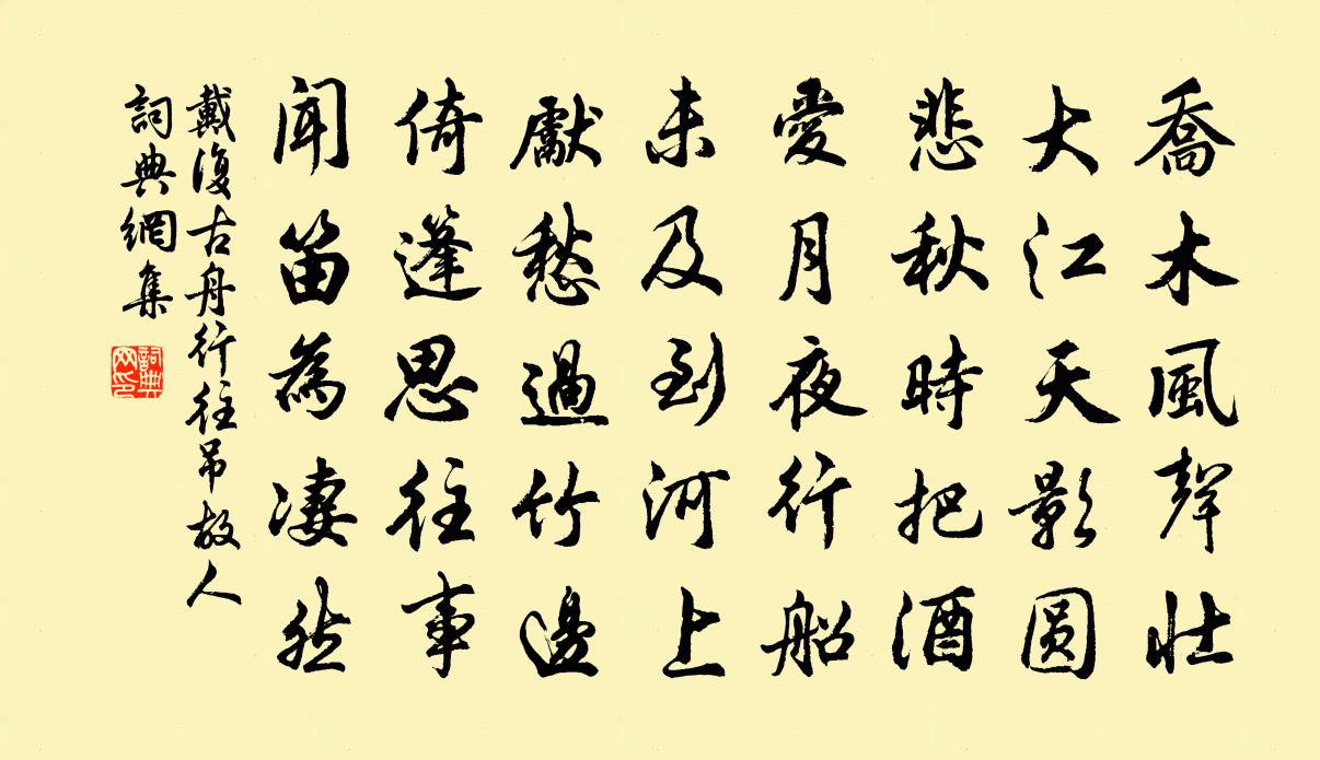 詩詞名句歷史字典書法欣賞書法字典國語詞典說文解字康熙字典古漢語字典標 題 作 者 詩 句 舟行往吊故人作者:戴復古 朝代:宋代舟行往吊故人原文喬木風聲壯,大江天影圓。悲秋時把酒,愛月夜行船。未及到河上,先愁過竹邊。倚篷思往事,聞笛為悽然。詩詞問答問:舟行往吊故人的作者是誰?答:戴復古問:舟行往吊故人寫於哪個朝代?答:宋代問:戴復古的名句有哪些?答:戴復古名句大全戴復古舟行往吊故人書法欣賞舟行往吊故人書法作品詩詞推薦予出蜀日嘗遣僧則華乞簽於射洪陸使君祠使君陸游〔宋代〕少壯不自料,慷慨志四方。謝病還故山,始覺白日長。命薄類蟬翼,功名安可望?狐狸不足問,力不當財狼。惟有唐侯仲友之守台為浮梁於江象令蔣鶚考叔賦江孫應時〔宋代〕我梁既成,我民既平。侯知不矜,侯心載寧。帝曰汝歸,其車宵片。予欲濟川,邦因是經。民留我侯,敢與帝爭。漁父辭毛直方〔宋代〕呼兒買米得新粳,漁村且喜見秋成,今朝嘗新莫草草,好釣鱸魚來煮羹。贈逸民詩 五蕭衍〔南北朝〕仁者博愛。大士兼撫。慈均春陽。澤若時雨。心忘分別。情無去取。等皆長養。同加嫗煦。譬流趨海。如子歸父。賀翰林侍郎二首司空圖〔唐代〕太白東歸鶴背吟,鏡湖空在酒船沈。今朝忽見銀台事,早晚重征入翰林。玉版征書洞裡看,沈羲新拜侍郎官。文星雜劇·杜蕊娘智賞金線池關漢卿〔元代〕楔子(外扮石府尹引張千上,詩云),少小知名達禮闈,白頭猶未解朝衣。年來屢上陳情疏,怎奈君恩不放歸。老十一月七日雪中聞宋中道與其內祥源觀燒香梅堯臣〔宋代〕三日不相見,逢人問始知。同車侵朔雪,臨水拜靈龜。絮撲鴛鴦帶,花團蛺蝶枝。如何東郭叟,足跡自穿綦。酬令狐相公贈別劉禹錫〔唐代〕越聲長苦有誰聞,老向湘山與楚雲。海嶠新辭永嘉守,夷門重見信陵君。田園松菊今迷路,霄漢鴛鴻久絕群。幸遇太常引 和王治書仲安安熙〔元代〕求田問舍欲婆娑。算無地,不風波。胸次盡嵯峨。世間事、都能幾多。登山臨水,望花隨柳,獨此未消磨。便擬借過五里逕三首楊萬里〔宋代〕入山無路出無門,鳥語猿聲更斷魂。當處迷塗何處問,一溪引我得前村。晚夏夜簡程至釋惠崇〔宋代〕中夕坐清簟,繁星時複流。扇聲微變暑,井氣忽生秋。為客方經楚,思鄉欲上樓。雲山殊未返,相顧兩悠悠。秦中吟十首。重賦(一作無名稅)白居易〔唐代〕厚地植桑麻,所要濟生民。生民理布帛,所求活一身。身外充征賦,上以奉君親。國家定兩稅,本意在憂人。厥初已亥出南康宮伯稱以詩贈行次韻三首李呂〔宋代〕丹楓攝攝掛晨霜,笑指匡廬路許長。且喜眼中無逐臭,自然心地發清香。次韻史才孺詠雪四首郭印〔宋代〕凍雲誰剪下,天地已凝嚴。試看郊原潤,何如雨露沾。漁蓑寒愈重,客舍恨猶添。曉起空庭步,深埋屐齒尖。書懶摶寺壁李新〔宋代〕曲崦藏雲樹老藤,碧山秧稻一層層。回尋二十年前夢,猶是當時識面僧。南歌子·手裡金鸚鵡溫庭筠〔唐代〕手裡金鸚鵡,胸前繡鳳凰。偷眼暗形相。不如從嫁與,作鴛鴦。頌古二十八首釋道川〔宋代〕語不邪,笑不來。拙鋪設,巧安排。猢猻將板拍,野老舞三台。秦侯不調累年識者嘆息茲以規恢秘略親簡上知楊冠卿〔宋代〕天驕飽肉氣勇決,憶昨彎弧射漢月。玉關保障烽燧驚,豺狼塞路人蹤絕。將軍方著從事衫,指揮義士征河南。設奇驀山溪晁端禮〔宋代〕輕衫短帽,重入長安道。屈指十年中,一回來、一回漸老。朋游在否,落托更能無,朱弦悄。知音少。撥斷相思調泐潭雲庵偶作釋正覺〔宋代〕曦色雲庵半堵紅,霜林初暖鳥啼風。下知人在蘿窗里,瞑目爐薰百慮空。名句推薦明月松間照,清泉石上流。王維《山居秋暝》 去年五月黃梅雨,曾典袈裟糴米歸。與恭《思母》 鶯嘴啄花紅溜,燕尾點波綠皺。秦觀《如夢令·春景》 新知遭薄俗,舊好隔良緣。李商隱《風雨》 遺民忍死望恢復,幾處今宵垂淚痕。陸游《關山月》 遠書歸夢兩悠悠,只有空床敵素秋。李商隱《端居》 停車數行日,勸酒問回期。王建《送人游塞》 我行殊未已,何日復歸來。宋之問《題大庾嶺北驛》 無端聽畫角,枕畔紅冰薄。納蘭性德《菩薩蠻·朔風吹散三更雪》 故國神遊,多情應笑我,早生華髮。蘇軾《念奴嬌·赤壁懷古》