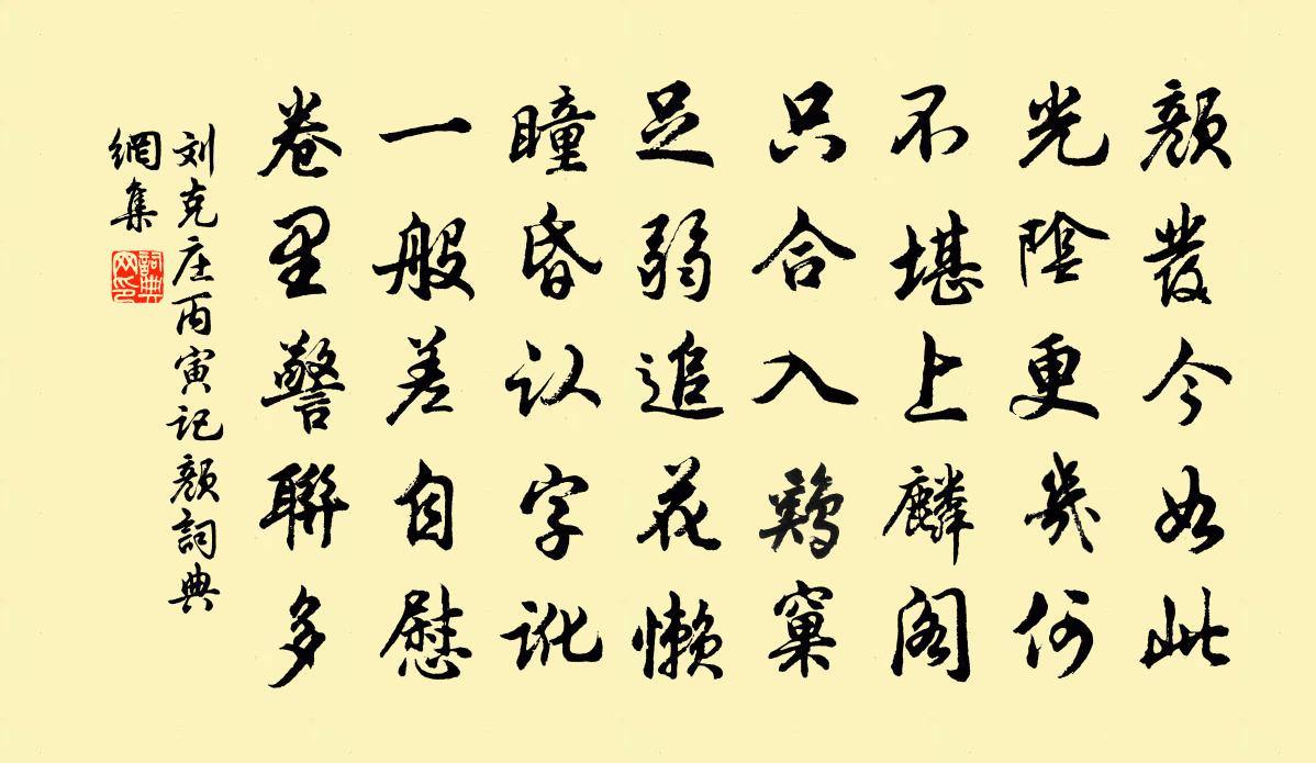 詩詞名句歷史字典書法欣賞書法字典國語詞典說文解字康熙字典古漢語字典標 題 作 者 詩 句 丙寅記顏作者:劉克莊 朝代:宋代丙寅記顏原文顏發今如此,光陰更幾何。不堪上麟閣,只合入雞窠。足弱追花懶,瞳昏認字訛。一般差自1~1慰,卷里警聯多。詩詞問答問:丙寅記顏的作者是誰?答:劉克莊問:丙寅記顏寫於哪個朝代?答:宋代問:劉克莊的名句有哪些?答:劉克莊名句大全劉克莊丙寅記顏書法欣賞丙寅記顏書法作品詩詞推薦汴之水三章送淮南提刑李舍人梅堯臣〔宋代〕汴之水,入於泗,黃流清淮為一致。上牽下櫓日夜來,千人同濟兮萬人利。利何謂,國之漕,商之貨,實所寄。秋盡途中作貫休〔唐代〕行行芳草歇,潭島葉紛紛。山色路無盡,砧聲客強聞。殘陽曜極野,黑水浸空墳。那得無鄉思,前程入楚雲。自和洪咨夔〔宋代〕得寮便住似西資,誰暇安巢更擇枝。闔密不妨中酒聖,樓明大好養書痴。志公分科存刀尺,龐老家風欠笊籬。大廈累日濃雲作雪不成遂有春意陸游〔宋代〕釀雪經旬竟不成,一霜卻作十分晴。雲歸岫穴千峰立,暖入郊原萬耦耕。菖葉離離豐歲候,梅花眷眷故人情。道傍詠史詩。圯橋胡曾〔唐代〕廟算張良獨有餘,少年逃難下邳初。逡巡不進泥中履,爭得先生一卷書。晏歲宋庠〔宋代〕晏歲無情晚,陰飈昨夜聞。芳條臨檻勁,短日轉樓曛。苔石收蒼暈,冰溪疊素紋。蒿蘭雖異種,霜至若為分。訴衷情 九日登黃崖王丹桂〔元代〕重陽又早一年期。景物正淒淒。憑高暢情凝望,極目徹天涯。秋日短,塞天低。雁南風。詩題紅葉,酒泛黃花,不命駕陸游〔宋代〕命駕清晨出射堂,筇枝羽扇受微涼。鴉將數子窺苔井,桐引新枝出粉牆。岸幘影邊茶正熟,投壼聲里日初長。興闌道士李得柔行太乙法曾傳御容李復〔宋代〕處世能求出世心,石壇深夜禮星辰。遍游五嶽求真訣,獨向三清有主人。妙筆曾開天日曉,懸壺常鎖洞山春。不知與溫其對榻劉子翬〔宋代〕細雨南窗夜,青燈對榻眠,升沈嗟汪宦,聚散忽流年。失路誰推轂,他時看著鞭。竹林須款集,君亦暫留連。法寶寺周文璞〔宋代〕細竹千竿殿影斜,龍顏曾此著袈裟。寺樓杳杳鐘聲度,疑有宮娥出晚花。句晏殊〔宋代〕一年為客未歸去,笑殺城東桃李花。浣溪沙晏幾道〔宋代〕綠柳藏烏靜掩關,鴨爐香細瑣窗閒。那回分袂月初殘。惜別漫成良夜醉,解愁時有翠箋還。欲尋雙葉寄情騅。雜詠陸游〔宋代〕一日日窮窮不醒,一年年老老如期。黃河卻有逢清日,白髮應無返黑時。菩提寺私成口號王維〔唐代〕萬戶傷心生野煙,百官何日再朝天?秋槐落葉空宮裡,凝碧池頭奏管弦。古別胡宿〔唐代〕長道何年祖軷休,風帆不斷岳陽樓。佳人挾瑟漳河曉,壯士悲歌易水秋。九帳青油徒自負,百壺芳醑豈消憂。至今村飲陸游〔宋代〕買來新兔不論錢,釣得鮮鱗細柳穿。野店渾頭更醇釅,一杯放手已醺然。和季弟韻二十首劉克莊〔宋代〕去國為農混里廛,故舊拋向短檠邊。台卿複壁猶溫孟,夷甫排牆始悔玄。送老只消營藁葬, * 不過費榆錢。枯腸詠史下顧榮陳普〔宋代〕石勒王彌尚未昌,東南先有顧丹陽。顧榮持易淳于首,未必江東只許長。深秋過源宗上人房(房一作方丈)李頻〔唐代〕到日值搖落,相留山舍空。微寒生夜半,積雨向秋終。度講多來雁,經禪少候蟲。方從聽話後,不省在愁中。名句推薦而今才道當時錯,心緒淒迷。納蘭性德《採桑子·當時錯》 軍氣橫大荒,戰酣日將入。王昌齡《從軍行二首》 怒髮衝冠,憑欄處、瀟瀟雨歇。岳飛《滿江紅·寫懷》 客思吟商還怯。怨歌長、瓊壺暗缺。周密《玉京秋·煙水闊》 斜陽外,寒鴉萬點,流水繞孤村。秦觀《滿庭芳·山抹微雲》 榮所眾羨,亦引眾怨。來俊臣《羅織經·固榮卷第六》 鳳簫聲斷月明中,舉手謝、時人慾去。蘇軾《鵲橋仙·七夕送陳令舉》 如今但暮雨,蜂愁蝶恨,小窗閒對芭蕉展。呂渭老《薄倖·青樓春晚》 石溪久住思端午,館驛樓前看發機。盧肇《競渡詩 / 及第後江寧觀競渡寄袁州剌史成應元》 春還草閣梅先動,月滿虛庭雪未消。王守仁《元夕二首》