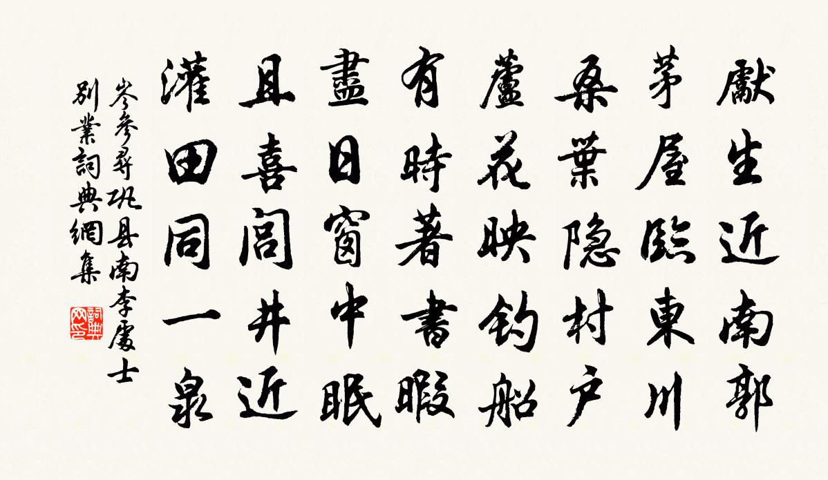 先生近南郭,茅屋臨東川。桑葉隱村戶,蘆花映釣船。