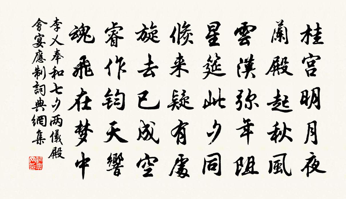 詩詞名句歷史字典書法欣賞書法字典國語詞典說文解字康熙字典古漢語字典標 題 作 者 詩 句 奉和七夕兩儀殿會宴應制作者:李乂 朝代:唐代奉和七夕兩儀殿會宴應制原文桂宮明月夜,蘭殿起秋風。雲漢彌年阻,星筵此夕同。倏來疑有處,旋去已成空。睿作鈞天響,魂飛在夢中。詩詞問答問:奉和七夕兩儀殿會宴應制的作者是誰?答:李乂問:奉和七夕兩儀殿會宴應制寫於哪個朝代?答:唐代問:奉和七夕兩儀殿會宴應制是什麼體裁?答:五律李乂奉和七夕兩儀殿會宴應制書法欣賞奉和七夕兩儀殿會宴應制書法作品注釋全唐詩:卷92_4詩詞推薦雲山姜特立〔宋代〕茫茫幾雲山,中有萬古人。人間有生死,出沒如浮雲。山雲有銷歇,世人無斷絕。所以西方尊,不言生與滅。蜻蜓浦夜泊陸游〔宋代〕風雨忽如秋已深,短篷今夜系楓林。溪翁那問市朝事,蔬食不生杯炙心。橫截煙波飛健鶻,遠投沙渚落羈禽。斯游甲子春晴久三月晦得頻雨喜而為二絕句鄭剛中〔宋代〕春晚鬱蒸如溽暑,朝來蕭颯似清秋。千山雨後陰雲凝,三日樓前野水流。寄君貺王學士宋祁〔宋代〕雞檄防邊未得休,久停歡酌為前籌。良辰並賞何憂晚,他日三公尚黑頭。偈頌一百五十首釋心月〔宋代〕甌峰布鐵連陣,我曾長袖拂開。甌峰擲金剛圈,我曾鐵鞭擊碎。沒仇讎處起仇讎,無怨對中作怨對。今日何以報之吟梅趙時韶〔宋代〕安得梅開向四時,騷人日日可吟詩。年來萬事心都懶,只有吟梅興未衰。題中山出遊圖龔開〔宋代〕髯君家本住中山,駕言出遊安所適。謂為小獵無鷹犬,以為意行有家室。阿妹韶容見靚妝,五色臙脂最宜黑。道逢送李處士南歸鄭獬〔宋代〕駕車跨馬聲嘈嘈,長劍闊佩橫滿朝。塵埃走趨顏發老,先生久客得無勞。夜來氣味有秋色,歸心鬧與秋風高。揭竿縣西陳造〔宋代〕一徑斜穿犖确行,身閒尤覺馬蹄輕。坡頭嘉樹千幢立,煙際長江匹練橫。茶鼓適敲靈鷲院,夕陽欲壓赭圻城。一春東樓王珪〔唐代〕漢家宮省青槐下,信斷鰲峰日易斜。應為能言鎖鸚鵡,翻愁無思學楊花。風波滾滾驚人事,文字孳孳老歲華。偶向寄題龐宮便提舉山齋二絕馮時行〔宋代〕才及中年便買山,山中何事可怡顏。當時白傳登臨眼,物色渾歸几案間。金峰寺陳自新〔宋代〕金峰寺外望藍橋,只尺溪山路許遙。世事昏人心似醉,倚欄無計遺愁消。五更王安石〔宋代〕青燈隔幔映悠悠,小雨含煙凝不流。只聽蛩聲已無夢,五更桐葉強知秋。出城別張又新,酬李漢李賀〔唐代〕李子別上國,南山崆峒春。不聞今夕鼓,差慰煎情人。趙壹賦命薄,馬卿家業貧。鄉書何所報,紫蕨生石雲。長安讀張氏義莊畫一寄持甫輅院劉宰〔宋代〕叔世誰憐族派同,高情真有古人風。宗分大小稽周典,惠匝親疏比范公。二頃開端能不吝,一編垂訓可無窮。欲書絕句釋法平〔宋代〕春風吹枕小屏寒,客舍無聊夢不安。花葉暗時人已去,夕陽光滿舊欄乾。江南晁說之〔宋代〕一家天下莫分三,天極明星萬象含。此水北江歸海處,誰將此地號江南。北窗聞雨劉敞〔宋代〕泄雲霏棟宇,危葉墮霜枝。忽忽時空晚,蕭蕭會自悲。竟無高枕興,還有閉關宜。生事安蓬藋,商歌恣所為。次韻和石學士見寄十首宋庠〔宋代〕隱几鈴齋咀道腴,洛煙嵩靄遍神都。時時便作書生詠,方信隨何一腐儒。成石屏詩後枕上再賦舒岳祥〔宋代〕十年欲作石屏題,覃思冥濛意轉迷。枕上呻吟翻了此,短蓬秋雨宿浯溪。名句推薦荷絲傍繞腕,菱角遠牽衣蕭綱《採蓮曲》 無半點閒愁去處,問三生醉夢何如。喬吉《折桂令·七夕贈歌者》 一棹碧濤春水路。過盡曉鶯啼處。晏幾道《清平樂·留人不住》 不知天外雁,何事樂長征?徐禎卿《在武昌作》 全則必缺,極則必反,盈則必虧。呂不韋《呂氏春秋·論·不苟論》 日暮九疑何處?認舜祠叢竹。文廷式《好事近·湘舟有作》 早知潮有信,嫁與弄潮兒。李益《江南曲》 江燕話歸成曉別,水花紅減似春休。西風梧井葉先愁。吳文英《浣溪沙·秋情》 生死有命,富貴在天。佚名《增廣賢文·上集》 去年燕子天涯,今年燕子誰家?張炎《清平樂·采芳人杳》