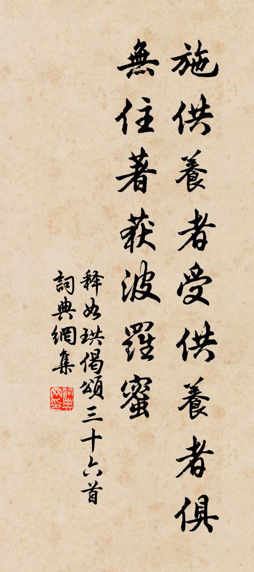 詩詞名句歷史字典書法欣賞書法字典國語詞典說文解字康熙字典古漢語字典標 題 作 者 詩 句 偈頌三十六首作者:釋如珙 朝代:宋代偈頌三十六首原文施供養者,受供養者。俱無住著,獲波羅蜜。詩詞問答問:偈頌三十六首的作者是誰?答:釋如珙問:偈頌三十六首寫於哪個朝代?答:宋代釋如珙偈頌三十六首書法欣賞偈頌三十六首書法作品詩詞推薦送陸君重五首方回〔宋代〕起伏難前定,行藏喜自由。足堪娛壽母,幸不乏先疇。酒具饒魚蟹,郊居少應酬。兩無慚事育,何用到壺頭。柳梢青曾覿〔宋代〕花柳爭春。湖山竟秀,恰近清明。綺席從容,蘭舟搖曳,穩泛波平。君恩許宴簪纓。密座促、仍多故情。一部清音清商怨晏幾道〔宋代〕庭花香信尚淺,最玉樓先暖。夢覺春衾,江南依舊遠。回紋錦字暗剪,漫寄與、也應歸晚。要問相思,天涯猶自短題薛教授靖軒豐有俊〔宋代〕小船行行過晴軒,衾紬帷楮興修然。如何打疊江湖志,甘守陳編隱几眠。歸去來集字十首蘇軾〔宋代〕役役倦人事,來歸車載奔。征夫問前路,稚子候衡門。入息亦詩策,出遊常酒樽。交親書已絕,雲壑自相存。次韻良佐歇心歌三首陶夢桂〔宋代〕一生受用燕營窠,百歲光陰馬駐坡。晚境喜無乾己事,故人遠寄歇心歌。君開經卷塵緣了,我辟山林詩料多。得句灩澦堆范成大〔宋代〕灩澦之石誰劖鐫?惡駭天下形眇然。客行五月潦始漲,但見匹馬浮黃湍。時時吐沫作濆淖,灂灂有聲如粥煎。蜀江謫官南康軍徐誼〔宋代〕花飛片片上衣襟,拾得飛花寘柳陰。莫遣便隨流水去,東君應有惜花心。寄宗彥侄韓維〔宋代〕清寒霽愈劇,幽居夜正間。環爐盡兄弟,無為愁苦顏。游心物象表,放論文字間。念汝不與此,慨然以長嘆。唯昨懷剡川故居釋仲皎〔宋代〕煙光流轉太駸駸,山見春山換綠陰。蝴蝶夢中新歲病,杜鵑聲裹故鄉心。焦桐冷卻風三尺,瘦竹拖來月一尋。早晚又五言徐鉉〔唐代〕彩仗映花韉,春庭散曙煙。毬飛皆應手,馬駿不須鞭。仙樂飄雲外,祥風近日邊。籌多不虛發,制生在機先。春日山居好十首舒岳祥〔宋代〕春日山居好,尋花急占先。騎驢投酒市,領鶴上漁船。薄暖還揮扇,輕寒未替綿。清和時候正,麗日牡丹天。古意黃庚〔宋代〕庭前有高樹,風撓無停枝。寒鴉噤不鳴,夜半環樹飛。託身未得所,三匝情依依。高飛犯霜露,低飛獨茅茨。乾坤種蔬二首黎廷瑞〔宋代〕可憐黃觳{觳殳換束},役役秋畦耕。既以謀我飯,又復謀我羹。早暮一束芻,所報良亦輕。飽食輒自媿,悠悠念魚耶孫氏輓詩魏了翁〔宋代〕可堪風撼木,不見雪盈簪。嫠緯愁春晝,兒書課夜深。米鹽毋我累,惸獨是予心。未報熊丸苦,寒堂服已廞。滿庭芳呂岩〔唐代〕大道淵源,高真隱秘,風流豈可知聞。先天一氣,清濁自然分。不識坎離顛倒,誰能辨、金木浮沉?幽微處,無中詠史詩七里灘胡曾〔唐代〕七里青灘映碧層,九天星象感嚴陵。 * 上無絲竹,不是高人誰解登?江城子·醉來長袖舞雞元好問〔金代〕醉來長袖舞雞鳴,短歌行,壯心驚。西北神州,依舊一新亭。三十六峰長劍在,星鬥氣,郁崢嶸。古來豪俠數幽并瑣窗寒張炎〔宋代〕絕響矣。余悼之玉笥山,所謂長歌之哀,過於痛哭。斷碧分山,空簾剩月,故人天外。香留酒殢。蝴蝶一生花里。頌古釋道顏〔宋代〕狸奴白牯念摩訶,爭似南泉打粥鍋。雖然佛法無多子,天下叢林不柰何。名句推薦吳絲蜀桐張高秋,空山凝雲頹不流李賀《李憑箜篌引》 惜恐鏡中春。不如花草新。張先《菩薩蠻·憶郎還上層樓曲》 勝而不驕,敗而不怨。商鞅《商君書·戰法》 春江花朝秋月夜,往往取酒還獨傾。白居易《琵琶行 / 琵琶引》 借錢塘潮汐,為君洗盡,岳將軍淚!陳德武《水龍吟·西湖懷古》 在天願作比翼鳥,在地願為連理枝。白居易《長恨歌》 風乍起,吹皺一池春水。馮延巳《謁金門·風乍起》 爾來從軍天漢濱,南山曉雪玉嶙峋。陸游《金錯刀行》 種竹淇園遠致君,生平孤節負辛勤。王汝舟《詠歸堂隱鱗洞》 筆落驚風雨,詩成泣鬼神杜甫《寄李十二白二十韻》