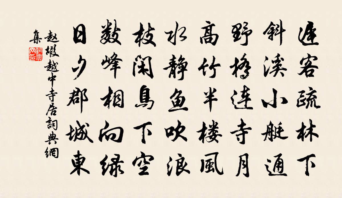 遲客疏林下,斜溪小艇通。野橋連寺月,高竹半樓風。