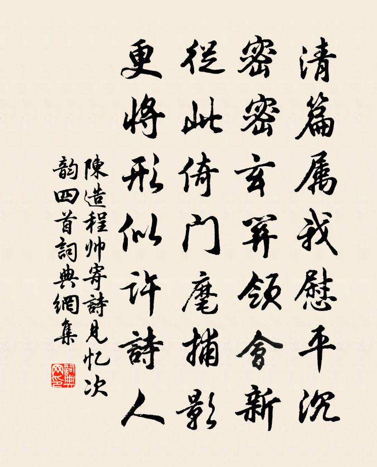 詩詞名句歷史字典書法欣賞書法字典國語詞典說文解字康熙字典古漢語字典標 題 作 者 詩 句 程帥寄詩見憶次韻四首作者:陳造 朝代:宋代程帥寄詩見憶次韻四首原文清篇屬我慰平沉,密密玄關領會新。從此倚門麾捕影,更將形似許詩人。詩詞問答問:程帥寄詩見憶次韻四首的作者是誰?答:陳造問:程帥寄詩見憶次韻四首寫於哪個朝代?答:宋代陳造程帥寄詩見憶次韻四首書法欣賞程帥寄詩見憶次韻四首書法作品詩詞推薦過戰鳥山譚嗣同〔清代〕冰玉相生愧獨頑,可兒豪膽鎮心關。悲秋剩有桓宣武,雪涕重經戰鳥山。和鄭巽坡詠菊並見寄韻二首李曾伯〔宋代〕轉蓬又是幾三秋,客里常宜視鼎羞。嶺首舍梅無所有,衡陽斷雁寄何由。淒涼陳跡幾年事,繾綣高情一夕留。新地游熙六年端午帖子詞皇后合五首崔敦詩〔宋代〕剪玉菰筒翠,盤金彩縷長。宮中多燕喜,天下正明昌。天童道上二首袁燮〔宋代〕嶪岌嶄岩太白峰,高名千古獨稱雄。放懷擬向山頭立,宇宙都歸一望中。用前韻酬高仲貽見贈林季仲〔宋代〕杖藜谷口佇歸雲,生理蕭條一葛巾。未敢軒眉焚芰制,更期晚節伴霜筠。江山約我盟猶在,風月於人意自新。木落春歸五首 其三朱淑真〔宋代〕狼籍花因昨夜風,春歸了不見行蹤。孤吟煢坐清如水,憶得輕離十二峰。勸學詩宋真宗〔宋代〕富家不用買良田,書中自有千鍾粟。安居不用架高樓,書中自有黃金屋。娶妻莫恨無良媒,書中自有顏如玉。出門和史太師蝸室三首釋寶曇〔宋代〕臥聽花敷寶篆灰,坐看野馬與塵埃。有時笑入棋聲去,千騎雷奔挽不回。挽外舅二首許月卿〔宋代〕月卿方髻時,公欲東床之。我姑已黃土,公鬢正青絲。忽忽成今古,茫茫問孰誰。但成抱茂子,灑淚讀新碑。寄鄧志宏五首鄧柞〔宋代〕厭從薄宦思蓮幕,思見故人映玉山。須信人生貴適志,相逢樽酒且開顏。春晚偶題范成大〔宋代〕寂寥春事冷於秋,雨打風吹斷送休。點檢梨花成一夢,蘸紅新綠滿枝頭。在彭城日與定國為九日黃樓之會今復以是日相蘇軾〔宋代〕瘁感之作詩菊盞萸囊自古傳,長房寧復是臞仙。應從漢武橫汾日,數到劉公戲馬年。對玉山人雖老矣,見恆河性故朱尚書夫人洪氏輓詞戴栩〔宋代〕八座方新玉鉉家,妝檯忽掩五雲賒。徽聲不愧古彤管,覺性能空曇缽花。夜月東岡疏磬度,春風南國去旌斜。所親後湖訪古各賦一題得西邸徐鉉〔唐代〕南朝藩閫地,八友舊招尋。事往山光在,春晴草色深。曲池魚自樂,叢桂鳥頻吟。今日中興運,猶懷翰墨林。重賦白兔梅堯臣〔宋代〕毛氏穎出中山中,衣白兔褐求文公。文公嘗為穎作傳,使穎名字存無窮。遍走五嶽都不逢,乃至琅琊聞醉翁。醉翁戲文·荊釵記柯丹邱〔元代〕第一出家門【臨江仙】(末上)一段新奇真故事,須教兩極馳名。三千今古腹中存,開言驚四座,打動五靈神。六頌一百則釋重顯〔宋代〕由基箭射猿,遶樹何太直。千箇與萬箇,是誰曾中的。相喚相呼歸去來。曹溪路上休登陟。歌戚逍遙〔唐代〕笑看滄海欲成塵,王母花前別眾真。千歲卻歸天上去,一心珍重世間人。寧宗郊前朝獻景靈宮二十四首真宗〔宋代〕光熉紫幄,神流玉房。秉文侑務,嘉虞貳觴。震澹醉喜,彷佛迪賞。璇源之休,地久天長。和董伯玉不向東山久韻吳芾〔宋代〕塵緣嗟未斷,俗事頗相關。雖懷林下趣,坐失山中閒。時信清夜裡,夢繞雲水灣。寄語猿鶴伴,明朝歸故山。名句推薦在家不會迎賓客,出門方知少主人。佚名《增廣賢文·上集》 萬里想龍沙,泣孤臣吳越張元乾《石州慢·己酉秋吳興舟中作》 請君試問東流水,別意與之誰短長。李白《金陵酒肆留別》 君子恥其言而過其行。孔子弟子《論語·憲問篇》 半壁見海日,空中聞天雞。李白《夢遊天姥吟留別 / 別東魯諸公》 散關三尺雪,回夢舊鴛機。李商隱《悼傷後赴東蜀辟至散關遇雪》 過能改,歸於無。倘掩飾,增一辜。李毓秀《弟子規·信》 秋色從西來,蒼然滿關中。岑參《與高適薛據同登慈恩寺浮圖》 無限傷心夕照中,故國淒涼,剩粉余紅。夏完淳《一剪梅·詠柳》 疏雨池塘見,微風襟袖知。陰陰夏木囀黃鸝賀鑄《南歌子·疏雨池塘見》
