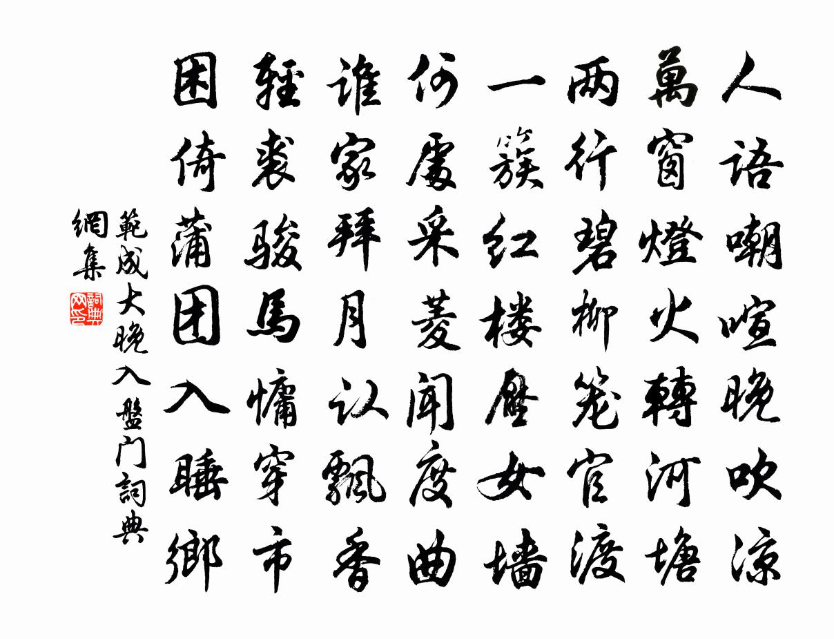 人語嘲喧晚吹涼,萬窗燈火轉河塘。兩行碧柳籠官渡,一簇紅樓壓女牆。