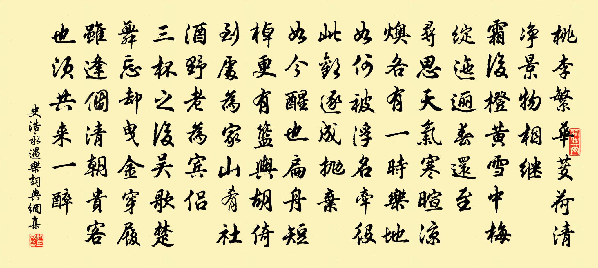 詩詞名句歷史字典書法欣賞書法字典國語詞典說文解字康熙字典古漢語字典標 題 作 者 詩 句 永遇樂作者:史浩 朝代:宋代永遇樂原文桃李繁華,芰荷清淨,景物相繼。霜後橙黃,雪中梅綻,迤邐春還至。尋思天氣,寒暄涼燠,各有一時樂地。如何被、浮名牽役,此歡逐成拋棄。如今醒也,扁舟短棹,更有籃輿胡倚。到處為家,山餚社酒,野老為賓侶。三杯之後,吳歌楚舞,忘卻曳金穿履。雖逢個、清朝貴客,也須共來一醉。詩詞問答問:永遇樂的作者是誰?答:史浩問:永遇樂寫於哪個朝代?答:宋代問:永遇樂是什麼體裁?答:詞史浩永遇樂書法欣賞永遇樂書法作品詩詞推薦句吳山〔宋代〕外列千句區民庶巷,中藏萬載帝王家。荒城步月熊禾〔宋代〕出門喜清曠,興盡喚歸船。攜手共明月,知心惟老天。暮潮生遠浦,秋色滿平田。落落男兒事,相逢豈偶然。雜詠八首王安石〔宋代〕羔豚窘虎豹,鳩雀窮鷹鸇。巧者具機弋,鷙猛還拘攣。論功莫如神,論大莫如天。悲哉區區人,乃欲逃其間。石油詩沈括〔宋代〕二郎山下雪紛紛,旋卓穹廬學塞人。化盡素衣冬不老,石油多似洛陽塵。浣溪沙晏幾道〔宋代〕樓上燈深欲閉門,夢雲歸去不留痕。幾年芳草憶王孫。向日闌乾依舊綠,試將前事倚黃昏。記曾來處易消魂。祭岳回重贈孟都督韓翃〔唐代〕封作天齊王,清祠太山下。魯公秋賽畢,曉日回高駕。從騎盡幽并,同人皆沈謝。自矜文武足,一醉寒溪夜。送勛侄之官嵢峽五言五首劉克莊〔宋代〕機難下鷗鳥,察至見淵魚。何日抽回去,商人願出塗。鄰峰艮上人2釋紹曇〔宋代〕短筇扶瘦扣煙蘿,款問東山瓦鼓歌。老倦不能謳唱得,隔窗幽鳥語尤多。詠懷古蹟五首·其四杜甫〔唐代〕蜀主窺吳幸三峽,崩年亦在永安宮。翠華想像空山里,玉殿虛無野寺中。古廟杉松巢水鶴,歲時伏臘走村翁。武侯辱粹道兄弟寄書久不作報以長句謝不敏黃庭堅〔宋代〕病癖無堪吾懶書,交親情分豈能疏。深慚煙際兩鴻雁,遺我罾中雙鯉魚。故國青山長極眼,今年白髮不勝梳。幾時奉和龍興燈夕強至〔宋代〕結彩仙山對淨坊,曳珠賓履捧台光。燈搖夜月天形動,歌聒春風物態狂。刻燭詩成傳魏國,吐茵酒釅醉程鄉。今年蘄春李丈解後游江上園勸遊人不可折花木禁漁戴復古〔宋代〕坐斷此江乾,池亭百畝寬。禽魚全性命,花竹報平安。有道行其志,非時做甚官。丰神更閒雅,野服竹皮冠。郭因芍藥洛中本吳則禮〔宋代〕粲粲忽來紅粉晚,故入吾人醉歸眼。吾人宿昔翰墨場,消得文君作小妝。莫遣邊頭風雨惡,驚破文君夢伊洛。孤芳王充道送水仙花五十枝欣然會心為之作詠黃庭堅〔宋代〕凌波仙子生塵襪,水上輕盈步微月。是誰招此斷腸魂,種作寒花寄愁絕。含香體素欲傾城,山礬是弟梅是兄。坐對滿庭芳(木犀)李洪〔宋代〕香滿千岩,芳傳叢桂,小山曾詠幽菲。仙姿冷淡,不奈此香奇。翠葆層層障日,深愛惜、早被風吹。秋英嫩,夜來次韻月中聞鶴張蘊〔宋代〕月明華表語霜清,萬籟沉沉靜有聲。一自別來璚樹長,幾回飛夢到曾城。次張丞送菊韻二首陳造〔宋代〕寒花彭澤門闌舊,好句柯山伯仲間。貧負清樽只三益,詩人錯笑庾郎慳。三字令向子諲〔宋代〕春盡日,雨餘時。紅蔌蔌,綠漪漪。花滿地,水平池。煙光里,雲影上,畫船移。紋鴛並,白鷗飛。歌韻響,酒行戲詠陳氏女剪彩花二絕句拒霜楊萬里〔宋代〕染露金風裡,宜霜玉水濱。莫嫌開最晚,元自不爭春。贈神籟談天胡仲弓〔宋代〕曾將甲子問群生,來向人間說五行。眼底精神雖晦昧,胸中造化卻分明。指推寶曆八千數,時弄玉簫三四聲。袖裡名句推薦內省不疚,夫何憂何懼!孔子弟子《論語·顏淵篇》 明日巴陵道,秋山又幾重。李益《喜見外弟又言別》 垂柳依依惹暮煙,素魄娟娟當繡軒。王元鼎《憑欄人·閨怨》 若要俏,添重孝。馮夢龍《警世通言·卷三十五》 鵲橋波里出,龍車霄外飛。任希古《和長孫秘監七夕》 一日不作,百日不食。司馬遷《史記·三十世家·趙世家》 春眠不覺曉,處處聞啼鳥。孟浩然《春曉》 己所不欲,勿施於人。孔子弟子《論語·顏淵篇》 除腹心之疾,而置諸股肱,何益?左丘明《左傳·哀公·哀公六年》 社下燒錢鼓似雷,日斜扶得醉翁回。范成大《春日田園雜興》