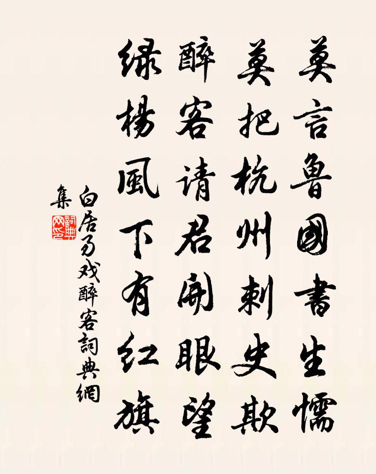 莫言魯國書生懦,莫把杭州刺史欺。醉客請君開眼望,綠楊風下有紅旗。