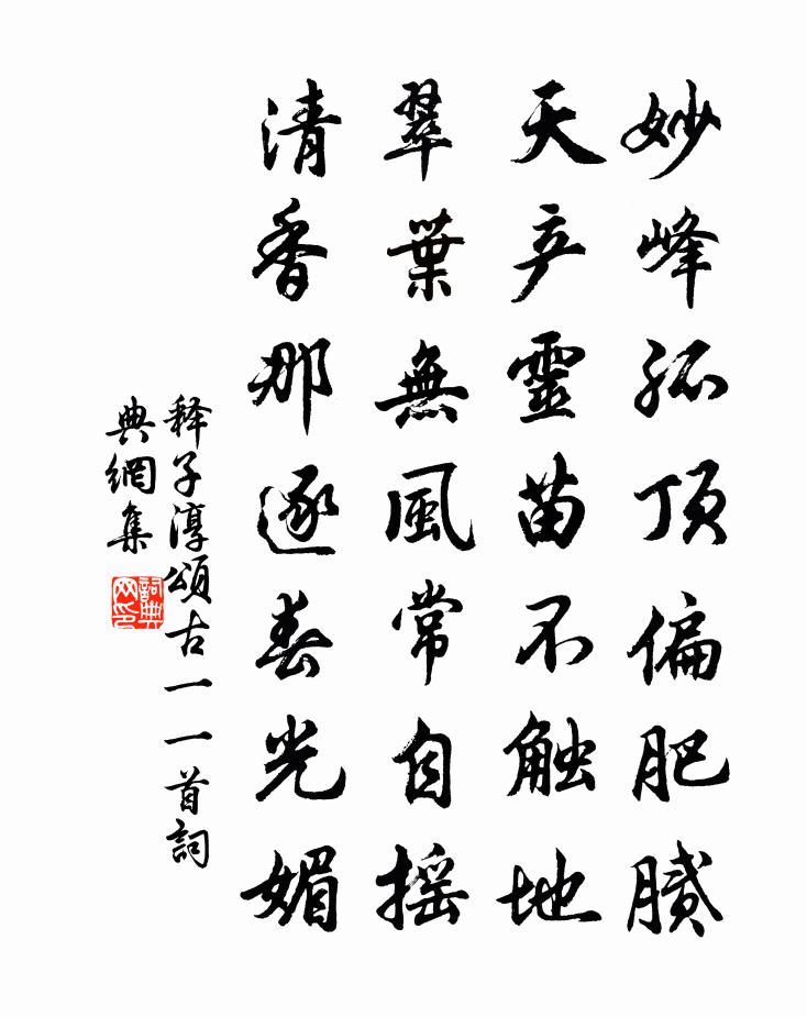 詩詞名句歷史字典書法欣賞書法字典國語詞典說文解字康熙字典古漢語字典標 題 作 者 詩 句 頌古一○一首作者:釋子淳 朝代:宋代頌古一○一首原文妙峰孤頂偏肥膩,天產靈苗不觸地,翠葉無風常自搖,清香那逐春光媚。詩詞問答問:頌古一○一首的作者是誰?答:釋子淳問:頌古一○一首寫於哪個朝代?答:宋代釋子淳頌古一○一首書法欣賞頌古一○一首書法作品詩詞推薦寄友二首李群玉〔唐代〕野水晴山雪後時,獨行村落更相思。無因一向溪頭醉,處處寒梅映酒旗。花落輕寒酒熟遲,醉眠不及落花期。愁人忠顯劉公輓詩四首張嵲〔宋代〕禍基媒孽自燕雲,抗議如公有幾人。軍旅未聞焉用試,豺狼不噬豈宜親。求魚緣木謾蠹國,曲突徙薪翻殞身。才大喜李翰自越至劉長卿〔唐代〕南浮滄海上,萬里到吳台。久別長相憶,孤舟何處來。春風催客醉,江月向人開。羨爾無羈束,沙鷗獨不猜。句謝中〔宋代〕十年太守桐江郡,萬首新詩陸放翁。浣溪沙(堂前岩桂犯雪開數枝,色如杏黃,適當老妻生朝,作此以侑觴)向子諲〔宋代〕瑞氣氤氳拂水來。金幢玉節下瑤台。江梅岩桂一時開。不盡秋香凝燕寢,無邊春色入尊罍。臨風嗅蕊共裴回。薤露行曹植〔魏晉〕天地無窮極。陰陽轉相因。人居一世間。忽若風吹塵。願得展功勤。輪力於明君。懷此王佐求。慷慨獨不羣。鱗介宮詞宋白〔宋代〕水殿東西夾翠樓,春乘步輦過瀛洲。赭袍如日花如錦,一半宮人盡裡頭。送元中丞轉運江淮(一作錢起詩)王維〔唐代〕薄賦歸天府,輕徭賴使臣。歡沾賜帛老,恩及卷綃人。去問珠官俗,來經石砝春。東南御亭上,莫使有風塵。泊巴東王周〔唐代〕偶泊巴東古縣前,宦情鄉思兩綿綿。不堪蠟炬燒殘淚,雨打船窗半夜天。贈英公大師穎贄〔宋代〕蠻牋免管少年時,幾賦簾前祝壽詩。三殿荷恩卿相看,兩朝承寵帝王知。尋窮太華高低景,念盡長安內外碑。可惜從和山聰上人覓竹艾性夫〔宋代〕龍光長老有大竹,肯為東坡斫兩竿。可是孟郊家具少,請師分我碧琅玕。病起窺園十絕劉克莊〔宋代〕雲里金烏瞥見些,屋山鵲語亦查查。侵晨掃徑開籬戶,童子知翁出看花。天竺有懷釋行海〔宋代〕白日閉門亦懶開,門前日日起塵埃。人無舊分言難托,道有同心信不來。 * 一籬秋冷淡,碧雲千里暮徘徊。去年過上天竺寺張栻〔宋代〕上竺諸天近,中林萬木低。迥超塵世外,恍入雪山西。忽漫參龍角,行將混鹿麋。何年釋簪紱,於此獨幽棲。與陳剛父論詩曾由基〔宋代〕少陵久矣跨鯨游,近說西江沸不休。雙井發源注南海,百川分洪失東流。君懷正印高懸眼,我抉玄關笑點頭。半世邊思周朴〔唐代〕年高來遠戍,白首罷乾戎。夜色薊門火,秋聲邊塞風。磧浮悲老馬,月滿引新弓。百戰陰山去,唯添上將雄。留別趙明府喻良能〔宋代〕彩棒漫分部,牛刀新發硎。花城方竊蔭,瓜戌已餘蓂。生計雙蓬鬢,歸心幾驛亭。他時重會面,應是眼俱青。司徒工開府韓國富公輓辭四首司馬光〔宋代〕杖屨還私第,精誠在本朝。愛君老不懈,憂國沒方昭。東閣秋牢落,西芒夜寂寥。只應忠亮志,氣運不能消。齊天樂(左綿道中)陸游〔宋代〕角殘鍾晚關山路,行人乍依孤店。塞月征塵,鞭絲帽影,常把流年虛占。藏鴉柳暗。嘆輕負鶯花,謾勞書劍。事往和聖俞春雨歐陽修〔宋代〕檐瓦蕭蕭雨勢疏,寂寥官舍與君俱。身遭鎖閉如鸚鵡,病識陰晴似鵓鴣。年少自愁花爛熳,春寒偏著老肌膚。莫嫌名句推薦常恐秋節至,焜黃華葉衰。佚名《長歌行》 禍不妄至,福不徒來。司馬遷《史記·龜策列傳》 盛事惟忠,庸則自從。來俊臣《羅織經·控權卷第四》 歲不寒無以知松柏,事不難無以知君子荀子《荀子·大略》 有福傷財,無福傷己。佚名《增廣賢文·上集》 長江如虹貫,蟠繞其下。宋濂《閱江樓記》 情知已被山遮斷,頻倚闌乾不自由。辛棄疾《鷓鴣天·晚日寒鴉一片愁》 學者非必為仕,而仕者必如學。荀子《荀子·大略》 雙燕飛來,陌上相逢否?撩亂春愁如柳絮。馮延巳《鵲踏枝·幾日行云何處去》 風雨端陽生晦冥,汨羅無處吊英靈。貝瓊《已酉端午》