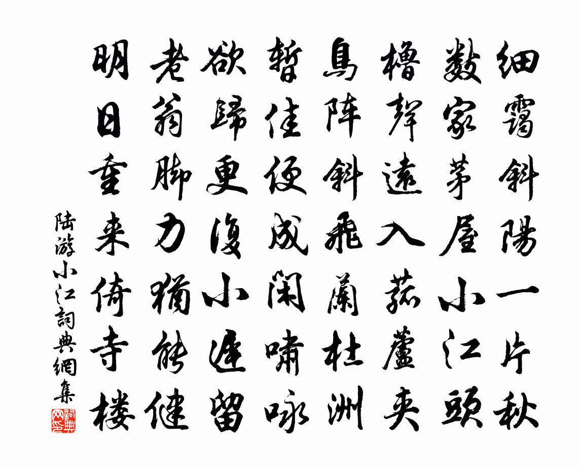細靄斜陽一片秋,數家茅屋小江頭。櫓聲遠入菰蘆夾,鳥陣斜飛蘭杜洲。