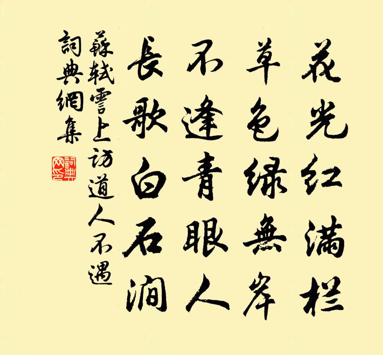 花光紅滿欄,草色綠無岸。不逢青眼人,長歌白石澗。