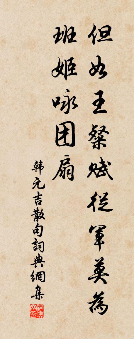 詩詞名句歷史字典書法欣賞書法字典國語詞典說文解字康熙字典古漢語字典標 題 作 者 詩 句 句作者:韓元吉 朝代:宋代句原文但如王粲賦從軍,莫為班姬詠團扇。詩詞問答問:句的作者是誰?答:韓元吉問:句寫於哪個朝代?答:宋代問:韓元吉的名句有哪些?答:韓元吉名句大全韓元吉句書法欣賞句書法作品詩詞推薦陪幸韋嗣立山莊應制(一作宋之問詩)李乂〔唐代〕樞掖調梅暇,林園種槿初。入朝榮劍履,退食偶琴書。地隱東岩室,天回北斗車。旌門臨窈窕,輦道屬扶疏。雲罕齊山陳續〔宋代〕齊山壓清溪,蒼崖浸老碧。山半古招提,高堂敞虛寂。西園早春二首宋祁〔宋代〕樽酒不常滿,年華祗自春。言歸雖薄澣,業已負良辰。野翠欣欣遍,林紅撲撲新。其如好風景,料理愛詩人。貫之學士寵示佳作欻然有丘壑之思因反其意以度正〔宋代〕夫君隆隆如長車,方途萬里無塵沙。天公生材要有用,安得嘿嘿吟窗紗。辛勤學問求大指,求不在他心而已。解將偈頌二十一首釋堅璧〔宋代〕金葉銀莖報有秋,明珠萬斛堂中收。自從一飽家田飯,不用埋頭向外求。憶李友叔皓三首陳淳〔宋代〕初見即我贈,東京博雅堂。再見復我和,北窗小梅章。此物今只存,而人乃雲亡。有時牽龍尾,濃磨發精光。恍惚漢武帝雜歌三首韋應物〔唐代〕漢武好神仙,黃金作台與天近。王母摘桃海上還,感之西過聊問訊。欲來不來夜未央,殿前青鳥先迴翔。綠鬢縈雲萬年春馬鈺〔元代〕堪嘆人人,波波劫劫貪名利。何時已。眼光落地。到此才方悔。雖有兒孫,要替應難替。辭生淚。甚家滋味。想著秋日二首張耒〔宋代〕黃簾朱戶狹洞房,何事易知獨難忘。相思故人云間月,涼夜皎皎出東廂。九日南山寺方回〔宋代〕佳節攜壺意,全如杜牧之。百年誰不死,九日可□□。□□差能飲,平生政坐痴。胸中不酩酊,未許野人知。桃花坑山釋鑒〔宋代〕地僻人居少,林深路轉迷。桃花流水細,不異武陵溪。武康縣治松桂林二首袁說友〔宋代〕詩競山川秀,亭隨草木新。弦歌魯言偃,吏隱漢梅真。淇苑雪霜操,廣寒宮殿春。相望不百里,一葦要身親。將至南都途中感舊二首寄錢穆父孔文仲〔宋代〕北風吹雪滿皇州,攜手同為落魄游。霄漢路歧騰萬里,江湖塵土積千憂。世情共逐飛蓬轉,人事都如激浪流。只待胡旋女-戒近習也(天寶末,康居國獻之)白居易〔唐代〕胡旋女,胡旋女。心應弦,手應鼓。弦鼓一聲雙袖舉,回雪飄颻轉蓬舞。左旋右轉不知疲,千匝萬周無已時。人間寄弟曾國藩〔清代〕昔我初去家,諸弟各弱小。阿季髡兩髦,覷人眸子繚。後園偷棗栗,揉升極木沙。叔也從之求,揖我謂我矯。分甘滿庭芳邵緝〔宋代〕落日旌旗,清霜劍戟,塞角聲喚嚴更。論兵慷慨,齒頰帶風生。坐擁貔貅十萬,銜枚勇、雲槊交橫。笑談頃,匈奴頌古五十五首釋紹曇〔宋代〕仙翁還旆武陵家,仙女歡迎步彩霞。貧弄玉簫頻勸酒,不如凋盡碧桃花。水調歌頭(柳州北湖)吳鎰〔宋代〕澄徹北湖水,圓鏡瑩青銅。客槎星漢天上,隱隱暗朝通。六月浮雲落日,十頃增冰積雪,勝絕與誰同。羅襪步新月夏日雜詠陸游〔宋代〕閒居自無客,況復暑如焚。百折赴溪水,數峰當戶雲。幽尋窮鹿徑,靜釣雜鷗群。舊愛南華語,今方踐所聞。有感華岳〔宋代〕十年憂患客江城,雙鬢蕭蕭已不禁。多病不逢醫國手,感懷徙有濟時心。西風吹夢夜寒悄,黃葉滿階秋意深。休笑名句推薦晚鴉飛去,一枝花影送黃昏夏完淳《婆羅門引·春盡夜》 盛事惟忠,庸則自從。來俊臣《羅織經·控權卷第四》 乘興南遊不戒嚴,九重誰省諫書函。李商隱《隋宮》 春去秋來也,愁心似醉醺。歐陽炯《巫山一段雲·春去秋來也》 冬夜兮陶陶,雨雪兮冥冥。王逸《九思》 相見時難別亦難,東風無力百花殘。李商隱《無題·相見時難別亦難》 寂寂聞猿愁,行行見雲收李白《尋高鳳石門山中元丹丘》 燕忙鶯懶芳殘,正堤上、柳花飄墜。章楶《水龍吟·燕忙鶯懶芳殘》 已忍伶俜十年事,強移棲息一枝安。杜甫《宿府》 桃花洞,瑤台夢,一片春愁誰與共?和凝《天仙子·柳色披衫金縷鳳》