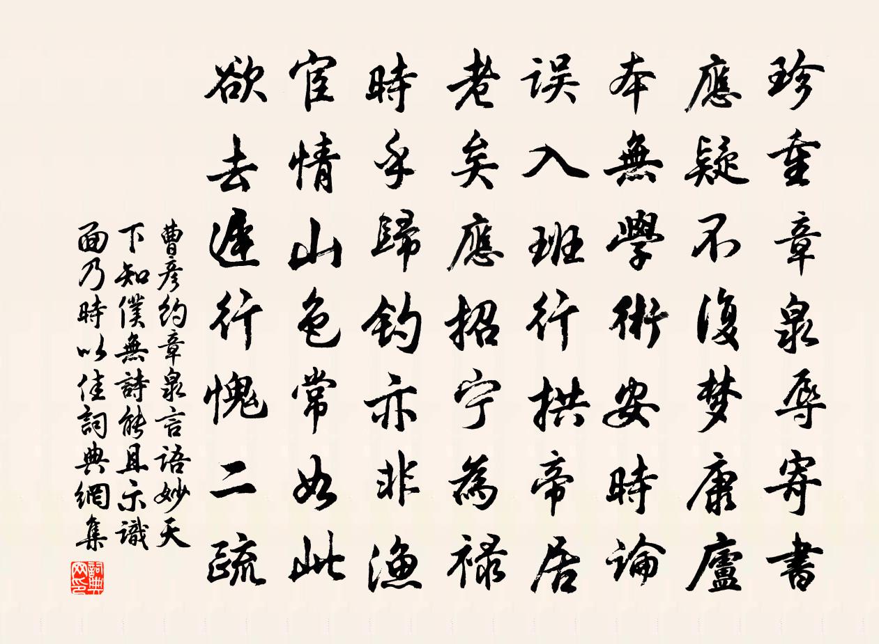 - 只愁飛詔下青冥。不應霜塞晚,橫槊看詩成。周紫芝《臨江仙·送光州曾使君》