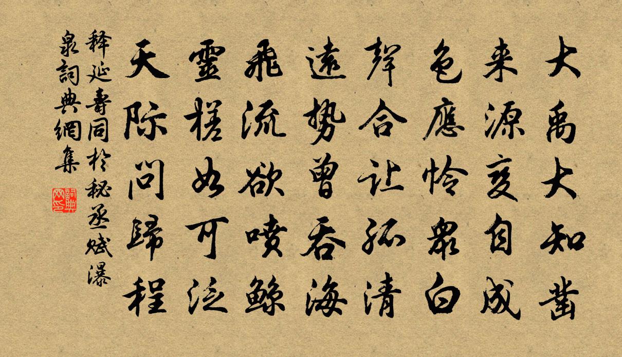 詩詞名句歷史字典書法欣賞書法字典國語詞典說文解字康熙字典古漢語字典標 題 作 者 詩 句 同於秘丞賦瀑泉作者:釋延壽 朝代:宋代同於秘丞賦瀑泉原文大禹大知鑿,來源變自成。色應憐眾白,聲合讓孤清。遠勢曾吞海,飛流欲噴鯨。靈槎如可泛,天際問歸程。詩詞問答問:同於秘丞賦瀑泉的作者是誰?答:釋延壽問:同於秘丞賦瀑泉寫於哪個朝代?答:宋代釋延壽同於秘丞賦瀑泉書法欣賞同於秘丞賦瀑泉書法作品詩詞推薦紀恩詩姜特立〔宋代〕百首清詩夜上,九重溫詔晨頒。自古封侯賜璧,慷慨只立談間。聽彈沈湘雍裕之〔唐代〕賈誼投文吊屈平,瑤琴能寫此時情。秋風一奏沈湘曲,流水千年作恨聲。相和歌辭。江南曲李賀〔唐代〕汀洲白蘋草,柳惲乘馬歸。江頭楂樹香,岸上蝴蝶飛。酒杯若葉露,玉軫蜀桐虛。朱樓通水陌,沙暖一雙魚。見山真意楊公遠〔宋代〕栗里幽深自結廬,東籬採菊足清娛。偶然觸目南山好,相對沈吟一語無。摸魚子 題王德璉山居圖邵亨貞〔元代〕遍乾坤、好山無數,古來高隱能幾。相逢盡道林泉勝,無柰利名朝市。青嶂里。望曲徑深門,彷佛柴桑里。先生傲次韻衡山徐監酒同考府學試八首項安世〔宋代〕少時亹亹著新功,老來蕭蕭漸禿翁。辜負平生好師友,納湖雲谷兩仁翁。哭重伋兼穰令鄭獬〔宋代〕古劍沈來不可尋,白沙堆下葬黃金。憑君莫向大江哭,淚人黃泉冤更深。明堂慶成詩文天祥〔宋代〕曉移天仗入思成,雨腳先驅御路清。虹影倒垂雲氣卷,日輪飛上袞衣明。韶音九奏真游格,酌獻三行福酒頃。景命和文與可洋川園池三十首 吏隱亭蘇軾〔宋代〕縱橫憂患滿人間,頗怪先生日日閒。昨夜清風眠北牖,朝來爽氣在西山。辭顯禪師題壁釋善暹〔宋代〕不是無心繼祖燈,道慚未廁嶺南能。三更月下離岩竇,眷眷無言戀碧層。回次媯川大寒鄭獬〔宋代〕地風如狂兕,來自黑山旁。坤維欲傾動,冷日青無光。飛沙擊我面,積雪沾我裳。豈無玉壺酒,飲之冰滿腸。鳥獸陝西晚思羅隱〔唐代〕長途已自窮,此去更西東。樹色榮衰里,人心往返中。別情流水急,歸夢故山空。莫忘交遊分,從來事一同。曉雪陸游〔宋代〕觀雪剡溪天下勝,題詩常恨不能奇。未應便許凝之語,此興何曾有盡時?道州月嘆(追述蕃中事,與道州對言之)呂溫〔唐代〕別館月,犁牛冰河金山雪。道州月,霜樹子規啼是血。壯心感此孤劍鳴,沉火在灰殊未滅。和鮑守次韻林德祖十四首傅察〔宋代〕銀鉤落紙彩毫輕,醉寫新詩入禁亭。學擅儒宗窮壺奧,文摛墨妙炳丹青。親承零露如金掌,密蔽衝風似寶屏。雅意菩薩蠻(春歸)韓元吉〔宋代〕牆根新筍看成竹。青梅老盡櫻桃熟。幽牆幾多花。落紅成暮霞。閉門風又雨。只道春歸去。媚臉笑持杯。卻驚春思送龍州樊使君許棠〔唐代〕曾見邛人說,龍州地未深。碧溪飛白鳥,紅旆映青林。土產唯宜藥,王租只貢金。政成開宴日,誰伴使君吟。和徐季功舒蘄道中二十首王之道〔宋代〕下馬郵亭忽喟然,數間茅屋起孤煙。山花狼藉余無幾,斷送歸心起杜鵑。詠梅五十首呈史尚書釋紹嵩〔宋代〕梅出稽山世少雙,月中疏影暗中香。夢回仿佛三更後,臥見瓊枝低壓牆。鳳州柳曾極〔宋代〕蜀主函封遣使時,芳根元自鳳州移。柔荑醽醁今安在,唯有青絲拂地垂。名句推薦花自飄零水自流。一種相思,兩處閒愁。李清照《一剪梅·紅藕香殘玉簟秋》 晴野鷺鷥飛一隻,水葓花發秋江碧。皇甫松《天仙子·躑躅花開紅照水》 更滿眼、殘紅吹盡,葉底黃鸝自語。韓元吉《薄倖·送安伯弟》 秋風蕭瑟天氣涼,草木搖落露為霜,群燕辭歸鵠南翔。曹丕《燕歌行二首·其一》 西登香爐峰,南見瀑布水。李白《望廬山瀑布水二首》 狗馬飾雕文,土木被緹繡。范曄《後漢書·列傳·宦者列傳》 愁凝處,渺渺殘照紅斂吳文英《宴清都·秋感》 不能則學,疑則問戴聖《大戴禮記·曾子制言上第五十四》 蓮子已成荷葉老。青露洗、蘋花汀草。李清照《怨王孫·湖上風來波浩渺》 淥水明秋月,南湖采白蘋。李白《淥水曲》