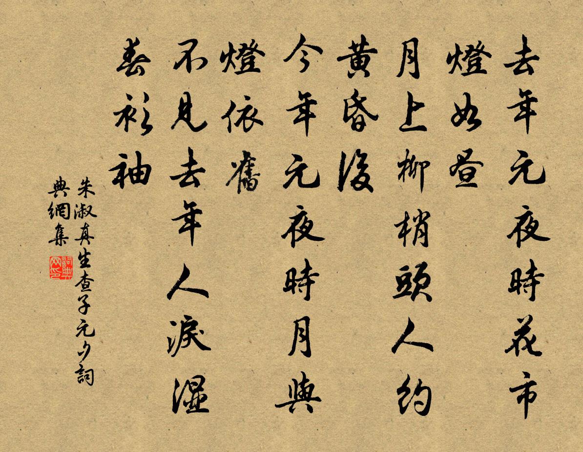 按:此詞一說歐陽修作,但《六一詞》與其它詞集互雜極多,不足為憑。力辯此詞非朱淑真所作者如《四庫提要》,乃出於保全淑真“名節”,衛道士心態,何足道哉!細賞此詞,似非六一居士手筆,實乃斷腸之聲。淑真另有一首《元夜詩》,可與此詞互看:“火燭銀花觸目紅,揭天吹鼓斗春風。新歡入手愁忙裡,舊事驚心憶夢中。但願暫成人繾綣,不妨常任月朦朧。賞燈那待工夫醉,未必明年此會同。”