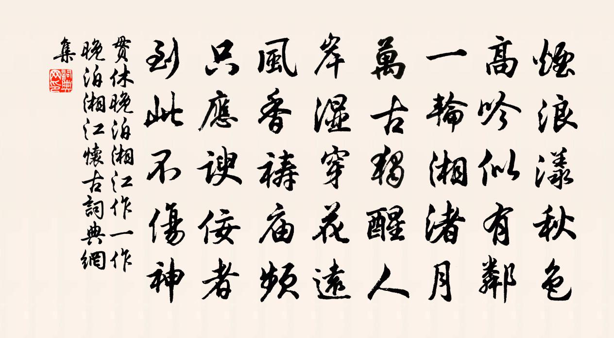 詩詞名句歷史字典書法欣賞書法字典國語詞典說文解字康熙字典古漢語字典標 題 作 者 詩 句 晚泊湘江作(一作晚泊湘江懷古)作者:貫休 朝代:唐代原文煙浪漾秋色,高吟似有鄰。一輪湘渚月,萬古獨醒人。岸濕穿花遠,風香禱廟頻。只應諛佞者,到此不傷神。詩詞問答問:《晚泊湘江作(一作晚泊湘江懷古)》的作者是誰?答:貫休問:該詩寫於哪個朝代?答:唐代問:貫休的名句有哪些?答:貫休名句大全書法欣賞晚泊湘江作(一作晚泊湘江懷古)書法作品注釋全唐詩:卷829-5詩詞推薦戲題趙從善兩畫軸三首范成大〔宋代〕一枝香杏一枝梅,各占東風掛玉釵。居士石腸都似夢,王孫心眼怎安排?十六日方回〔宋代〕來往江復浙,擾擾一年間。有子猶相隔,無官亦未閒。病嫌真藥少,債準舊書不。霽雪樓前立,依依憶故山。款塞來享黃庭堅〔宋代〕前朝夏州守,來款塞門西。聖主敷文德,降書付狄鞮。氈裘瞻日月,剺面帶金犀。殿陛閒乾羽,邊亭息鼓鼙。永輸夜歸丁卯橋村舍許渾〔唐代〕月涼風靜夜,歸客泊岩前。橋響犬遙吠,庭空人散眠。紫蒲低水檻,紅葉半江船。自有還家計,南湖二頃田。九月十日寄潘邠老賀鑄〔宋代〕明月昔如許,懷人殊不來。徒歌桃葉曲,又負菊華開。尺紙緘愁去,扁舟載夢回。它年雞黍約,千里信悠哉。任光徐鈞〔宋代〕河兵已渡迫饑寒,道路賓士正急難。不是信都同助順,王郎未必死邯鄲。山居詩釋延壽〔宋代〕名利梯媒事已忘,唯憑拙直定行藏。探玄休煉長生藥,助道時抄歇食方。溪汲古痕山雨漲,樹摧殘枿野風狂。一言仁宗皇帝輓辭四首王安石〔宋代〕憑几微言絕,群臣涕泗揮。哀號 * 陛,縞素九重圍。天上仙遊遠,宮中御座非。最悲帷幄侍,不復未明衣。和史司直韻五首吳潛〔宋代〕滕翁只道老非才,不料窮冬雪壯哉。擬撥寒蔬尋早韭,試尋玉樹索寒梅。孤汀錯認鶿為鷺,四野偏宜牟與來。聞說樂語王義山〔宋代〕戲袞玉球添一笑。笑道輕狂,似恁人間少。偏倚龍池依鳳沼。隨風得得低迴繞。掠麵點衣夸百巧。似雪飛花,點束題羅亨祖叢菊隱居劉克莊〔宋代〕令君抱送當秋晚,手種寒葩占斷清。伯始厚顏貪飲水,靈均滿腹飽餐英。要須晚節分香臭,寧與朝華角悴榮。父老入祁陽縣界即事李曾伯〔宋代〕境入祁陽驛堠迢,道旁煙火頓蕭蕭。茅岡叢篠路磊砢,蓬舍扃柴人寂寥。市粒頗艱緣歲儉,野芳交發自春饒。扶藜和鄭國器六首曹勛〔宋代〕老境欣逢世路平,收回神觀遠逢迎。五更不復趨雙闕,六鑿都忘任七情。滕子京魏介之二同年相訪丹陽郡范仲淹〔宋代〕長江天下險,涉者利名驅。二公訪貧交,過之如坦途。風波豈不惡,忠信天所扶。相見乃大笑,命歌倒金壺。同年逍遙詠白居易〔唐代〕亦莫戀此身,亦莫厭此身。此身何足戀,萬劫煩惱根。此身何足厭,一聚虛空塵。無戀亦無厭,始是逍遙人。靈寶縣西側津吳融〔唐代〕碧溪瀲瀲流殘陽,晴沙兩兩眠鴛鴦。柳花無賴苦多暇,蛺蝶有情長自忙。千里宦遊成底事,每年風景是他鄉。高歌西溪葉紹翁〔宋代〕一條橫木過前溪,村女齊登采葉梯。獨立衡門春雨細,白雞飛上樹梢啼。丙申重九前後得今日都無病一句成十首方回〔宋代〕今日都無病,持杯得自如。空行萬里路,枉讀一生書。可奈多魔障,真當棄腐餘。休官十六載,此計未全疏。寄衣曲張籍〔唐代〕織素縫衣獨苦辛,遠因回使寄征人。官家亦自寄衣去,貴從妾手著君身。高堂姑老無侍子,不得自到邊城裡。殷勤清遠舟中寄耘老蘇軾〔宋代〕小寒初渡梅花嶺,萬壑千岩背人境。清遠聊為泛宅行,一夢分明墮鄉井。覺來滿眼是湖山,鴨綠波搖鳳凰影。海陵名句推薦老翁逾牆走,老婦出門看。杜甫《石壕吏》 秋夜訪秋士,先聞水上音。袁枚《夜過借園見主人坐月下吹笛》 國無常強,無常弱。奉法者強,則國強;奉法者弱,則國弱。韓非及後人《韓非子·有度》 幼而學者,如日出之光;老而學者,如秉獨夜行,猶賢乎瞑目而無見者也。顏之推《顏氏家訓·勉學篇》 故人江海別,幾度隔山川。司空曙《雲陽館與韓紳宿別》 志不勵,則士不死節;士不死節,則眾不戰。尉繚《尉繚子·戰威》 信宿漁人還泛泛,清秋燕子故飛飛。杜甫《秋興八首》 雍雍新雁咽寒聲,愁恨年年長相似。李煜《謝新恩·冉冉秋光留不住》 一場幽夢同誰近,千古情人獨我痴。曹雪芹《紅樓夢·第五回》 東邊日出西邊雨,道是無晴卻有晴。劉禹錫《竹枝詞二首·其一》