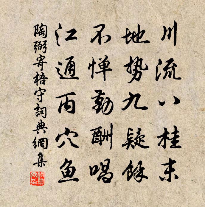 詩詞名句歷史字典書法欣賞書法字典國語詞典說文解字康熙字典古漢語字典標 題 作 者 詩 句 寄梧守作者:陶弼 朝代:宋代寄梧守原文川流八桂末,地勢九疑余。不憚勤酬唱,江通丙穴魚。詩詞問答問:寄梧守的作者是誰?答:陶弼問:寄梧守寫於哪個朝代?答:宋代陶弼寄梧守書法欣賞寄梧守書法作品詩詞推薦送舅氏行敖陶孫〔宋代〕迎面賓鴻去未多,攬祛官柳不勝拖。還家定笑扊扅曲,上水初聽欸乃歌。濁酒過鄰通問訊,青燈語夜愜平和。機雲書懷陸游〔宋代〕老人舉動須扶掖,跣婢椎奴少得閒。從此漸須都畫斷,疋如避難在空山。小酌陸游〔宋代〕盤箸貧猶設,杯盂老更耽。宗文樹雞柵,靈照挈蔬籃。徑醉眼花亂,高眠鼻息酣。覺來寒日晚,落葉擁茆庵。鳳山黃漳〔宋代〕鳳山之嶺高岧嶢,上有仙人吹洞簫。俯瞰眾流浩無際,縱觀萬壑亦來朝。衣冠幸際承明日,壺矢況逢拔俗標。長嘯慢卷綢(雙調)柳永〔宋代〕閒窗燭暗,孤幃夜永,欹枕難成寐。細屈指尋思,舊事前歡,都來未盡,平生深意。到得如今,萬般追悔。空只添寄同州田長史王建〔唐代〕除聽好語耳常聾,不見詩人眼底空。莫怪出城為長史,總緣山在白雲中。水調歌頭(秋日登浮遠堂作)丘崈〔宋代〕一葉下林表,秋色滿蘅皋。江風吹雨初過,天宇一何高。蠟屐徑來堂上,倚杖然長嘯,萬里看雲濤。逸興浩無際,和前人韻賦昌溪洞口陽枋〔宋代〕洞口天容黯,靈宮暫潔齋。中宵輕霢霂,向晚捲雲霾。岩削蒼璆璧,峰攢碧玉釵。水花紛迸峽,石乳溜垂岩。噴浪數名詩范雲〔南北朝〕一鼓有餘氣。趫勇正紛紜。二廣無遺畧。雄虎自為羣。三河尚擾攘。楯櫓起橨榲。四巡駐青蹕。瘞玉曠亭雲。五十禪房十事癢和子釋紹曇〔宋代〕既就良工雕琢,何妨出手扶持。抓著衲僧癢處,賞伊一枚荔枝。家藏畫鵲二軸其一棠梨結子青黃葉亦蟲蝕尚帶舒岳祥〔宋代〕粉節娟娟碧玉枝,螳螂得意更誰疑。旁人只與危黃雀,不道中林有鵲知。李與賢來訪,自言所居幽勝,甚似剡溪。因以楊萬里〔宋代〕溪上新橋是鳳林,殘風剩雨做秋陰。先生小試南風手,寫得一川山水音。蝶戀花·送春朱淑真〔宋代〕樓外垂楊千萬縷。欲系青春,少住春還去。獨自風前飄柳絮。隨春且看歸何處。綠滿山川聞杜宇。便做無情,莫也勸學詩顏真卿〔唐代〕三更燈火五更雞,正是男兒讀書時。黑髮不知勤學早,白首方悔讀書遲。詠路鄒浩〔宋代〕赤路如龍蛇,不知幾千丈。出沒出水間,一下復一上。伊予獨何為,與之同俯仰。念奴嬌汪晫〔宋代〕相逢草草,共吟詩、同醉杯中之物。評論三王譏五霸,談辯喧譁鄰壁。敲缺唾壺,擊殘如意,妙語飛華雪。無能為送人赴安西岑參〔唐代〕上馬帶吳鉤,翩翩度隴頭。小來思報國,不是愛封侯。萬里鄉為夢,三邊月作愁。早須清黠虜,無事莫經秋。行香子張翥〔元代〕水遠天低。雪意垂垂。火爐頭、煨芋燃萁。 * 穩坐,紙帳低圍。且放些慵,補些拙,學些痴。休惹群兒。唱起銅冬日讀白集愛其貧堅志士節病長高人情之句作陸游〔宋代〕郊居四十年,草木日夜長。喬松已偃蓋,稚松出蓁莽。儒生學仁義,敢廢自培養;鬱郁棟樑姿,拔地當百丈。賞春二首周文璞〔宋代〕賞春社裡鼓逢逢,尚恨聲同調不同。我亦明朝苦無事,更來吹笛亂山中。名句推薦萬里鄉為夢,三邊月作愁。岑參《送人赴安西》 白兔搗藥秋復春,嫦娥孤棲與誰鄰?李白《把酒問月·故人賈淳令予問之》 吃一分虧,受無量福。馮夢龍《警世通言·卷三》 其出不出,間不容髮。班固《漢書·傳·賈鄒枚路傳》 觀書老眼明如鏡,論事驚人膽滿軀辛棄疾《送湖南部曲》 失之東隅,收之桑榆。范曄《後漢書·列傳·馮岑賈列傳》 淮水悠悠。萬頃煙波萬頃愁。淮上女《減字木蘭花·淮山隱隱》 蠶娘洗繭前溪淥,牧童吹笛和衣浴。貫休《春晚書山家屋壁二首》 做弄得、酒醒天寒,空對一庭香雪。張炎《疏影·梅影》 空山新雨後,天氣晚來秋。王維《山居秋暝》