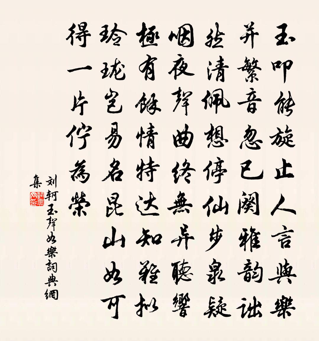 詩詞名句歷史字典書法欣賞書法字典國語詞典說文解字康熙字典古漢語字典標 題 作 者 詩 句 玉聲如樂作者:劉軻 朝代:唐代玉聲如樂原文玉叩能旋止,人言與樂並。繁音忽已闋,雅韻詘然清。佩想停仙步,泉疑咽夜聲。曲終無異聽,響極有餘情。特達知難擬,玲瓏豈易名。崑山如可得,一片佇為榮。詩詞問答問:玉聲如樂的作者是誰?答:劉軻問:玉聲如樂寫於哪個朝代?答:唐代問:玉聲如樂是什麼體裁?答:五排劉軻玉聲如樂書法欣賞玉聲如樂書法作品注釋全唐詩:卷491-30詩詞推薦安溪勸農詩勸孝養陳宓〔宋代〕父母辛勤養汝身,直須五鼎奉雙親。有田若不勤耕稼,菽水猶虧豈是人。次韻和唐公北使途中見寄二首韓維〔宋代〕文史平居樂,塵埃少別心。都門開柳色,樽酒駐車音。漢節光華遠,春風藻思深。一聞傳麗句,清興靄盈襟。謝岩上張伯春伯齊兄弟子侄惠生日詩陳普〔宋代〕苟食媮衣豈足論,諸公何見為開尊。詩書雖讀道何有,爵德鹹無齒敢言。泉下年年孤祖孝,眼前事事負乾坤。幸隨和戶部令狐尚書喜裴司空見招看雪張籍〔唐代〕南園新覆雪,上宰曉來看。誰共登春榭,唯聞有地官。色連山遠靜,氣與竹偏寒。高韻更相應,寧同歌吹歡。龍游道中得家信曹彥約〔宋代〕幸自居家樂,何須遣信來。聲聞先隕獲,書至尚驚猜。問仆心方定,開緘色漸回。寄言重九日,掃淨玉京台。挽王柳州程珌〔宋代〕才華唐令君,名勝晉參軍。善政流郴水,遺風襲縉雲。寶釵當自合,神劍不中分。心折白岩路,猿吟日未曛。以毅齋曾先生詩法曰能以無情作有情子熊舉以陳起〔宋代〕西禪欲南闡,胡僧越海來。一蹴嵩山雲,支分五岐開。逢人問靈源,要識老牛胎。半生苦迷此,所見只瞢哉。有時池口下小港元遇大風陽枋〔宋代〕水本無聲風作聲,何民主坎止與流行。掀天不礙翻洪浪,到海須知有去程。可以東形暫激,不容軒輊性元平。懸知以黃子木拄杖為子由生日之壽蘇軾〔宋代〕靈壽扶孔光,菊潭飲伯始。雖雲閒草木,豈樂蒙此恥。一時偶收用,千載相瘢疻。海南無嘉植,野果名黃子。堅瘦霜天曉月(慶高尉)李廷忠〔宋代〕洞天仙伯。總是梅標格。來索東風一笑,香浮動、潛溪月。壽尊誰共酌。少年花縣客。試問日邊春信,梁園上、正句程敦厚〔宋代〕春飛白玉花,秋吐黃金實。皇子生獻詩蔡挺〔宋代〕昨夜薰風入舜韶,君王未御正衙朝。陽暉已得前星助,陰滲潛隨夜雨消。謝竹堂先生見過王隱〔宋代〕學稼古寺側,結廬高柳陰。音書故交絕,歲月杜門深。新雪添衰鬢,寒灰死壯心。西州賢別駕,連日肯相尋。夢後寄歐陽永叔梅堯臣〔宋代〕不趁常參久,安眼向舊溪。五更千里夢,殘月一城雞。適往言猶是,浮生理可齊。山王今已貴,肯聽竹禽啼。寄舍弟二首李新〔宋代〕冷漿庭巷四時秋,巧拙時情不解謀。遠客病容詩共瘦,故鄉野水淚通流。稍辜破鏡刀頭約,盡失蒼蠅驥尾游。他日元日觀朝厲玄〔唐代〕玉座臨新歲,朝盈萬國人。火連雙闕曉,仗列五門春。瑞雪銷鴛瓦,祥光在日輪。天顏不敢視,稱慶拜空頻。次韻子由書王晉卿畫山水一首而晉卿和二首蘇軾〔宋代〕誤點故教同子敬,雜篇真欲擬湯休。隴雲寄我山中信,雪月追君溪上舟。會看飛仙虎頭篋,卻來顛倒拾遺裘。(子薙草李復〔宋代〕眾草費薙鋤,回首已芒翳。隨處競茀冗,苟生無遠意。時亦吐柔蔓,牽引強附離。端居嘆力寡,門庭愧蕪穢。蘀兮佚名〔先秦〕蘀兮蘀兮,風其吹女。叔兮伯兮,倡予和女。蘀兮蘀兮,風其漂女。叔兮伯兮,倡予要女。送黃幾先司戶楊萬里〔宋代〕吾友黃編修,用不究其挾。有子傅父書,潛心泣麟業。胸中石渠勝,筆底秋鷹捷。蟾兔贈一枝,衣缽續四葉。不應名句推薦謝公最小偏憐女,自嫁黔婁百事乖。元稹《遣悲懷三首·其一》 有緣千里來相會,無緣對面不相逢。施耐庵《水滸傳·第十四回》 黯與山僧別,低頭禮白雲。李白《秋浦歌十七首》 龍馬花雪毛,金鞍五陵豪。李白《白馬篇》 且莫思身外,長近尊前。周邦彥《滿庭芳·夏日溧水無想山作》 儒有博學而不窮,篤行而不倦戴聖《禮記·儒行》 一涓春水點黃昏,便沒頓、相思處。史達祖《留春令·詠梅花》 會桃花之芳園,序天倫之樂事李白《春夜宴桃李園序/春夜宴從弟桃花園序》 遙知獨聽燈前雨,轉憶同看雪後山。納蘭性德《於中好·送梁汾南還為題小影》 近鄉情更怯,不敢問來人。宋之問《渡漢江》