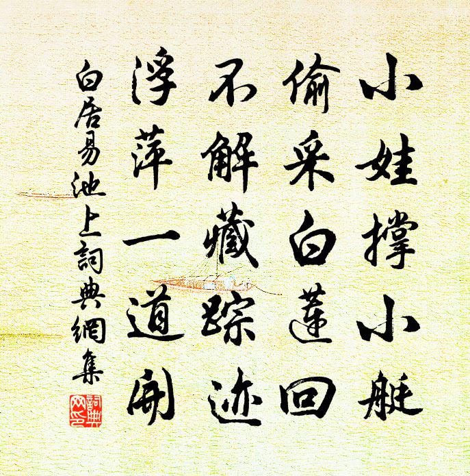 詩人在詩中敘述一個小娃娃生活中的一件小事,準確地捕捉了小娃娃瞬間的心情,勾畫出一幅採蓮圖。蓮花盛開的夏日裡,天真活潑的兒童,撐著一條小船,偷偷地去池中採摘白蓮花玩。興高采烈地採到蓮花,早已忘記自己是瞞著大人悄悄地去的,不懂得或是沒想到去隱蔽自己的蹤跡,得意忘形地大搖大擺劃著名小船回來,小船把水面上的浮萍輕輕盪開,留下了一道清晰明顯的水路痕跡。詩人以他特有的通俗風格將詩中的小娃娃描寫得非常可愛、可親,整首詩如同大白話,富有韻味。