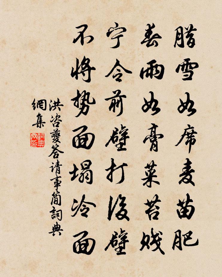詩詞名句歷史字典書法欣賞書法字典國語詞典說文解字康熙字典古漢語字典標 題 作 者 詩 句 答請事簡作者:洪咨夔 朝代:宋代答請事簡原文臘雪如席麥苗肥,春雨如膏菜苔賤。寧令前壁打後壁,不將勢面塌冷麵。詩詞問答問:答請事簡的作者是誰?答:洪咨夔問:答請事簡寫於哪個朝代?答:宋代洪咨夔答請事簡書法欣賞答請事簡書法作品詩詞推薦牡丹吟邵雍〔宋代〕牡丹花品冠群芳,況是其間更有王。四色變而成百色,百般顏色百般香。誡子何夢桂〔宋代〕魯語誨時羽,商書稱時敏。一字該二義,學者盍重省。又日新其德,成湯常自儆。三月不違仁,顏子獨深領。今日詩曹植〔魏晉〕游鳥翔故巢。狐死反邱穴。我信歸故鄉。安得憚離別。過蜀龍門沈佺期〔唐代〕龍門非禹鑿,詭怪乃天功。西南出巴峽,不與眾山同。長竇亘五里,宛轉復嵌空。伏湍喣潛石,瀑水生輪風。流水還過東都,留守周公筵上贈座客徐鉉〔唐代〕賈生三載在長沙,故友相思道路賒。已分終年甘寂寞,豈知今日返京華。麟符上相恩偏厚,隋苑留歡日欲斜。明旦六州歌頭(元夕和宜可)劉將孫〔宋代〕天涯倦客,如夢說今宵。承平事,車塵漲,馬鳴蕭。火城朝。狂歌閒嬉笑,平康客,五陵俠,閒相待,沙河路,灞晚秋遊中溪唐彥謙〔唐代〕淡竹岡前沙雁飛,小花尖下柘丸肥。山雲不捲雨自薄,天氣欲寒人正歸。招伴只須新稻酒,臨風猶有舊苔磯。故人春詞常建〔唐代〕階下草猶短,牆頭梨花白。織女高樓上,停梭顧行客。聞君在何所,青鳥舒錦翮。次呂居仁九日群集韻朱翌〔宋代〕衣冠交上郡,氣象有中州。九日一尊酒,千岩萬壑秋。星方聚吳分,魚已躍王舟。即事感今昔,乃情無去留。憂時九日登壽安縣錦屏山下宿邑中邵雍〔宋代〕煙嵐一簇特崔鬼,到此令人心自灰。上有神仙不知姓,洞門閒倚白雲開。使至塞上王維〔唐代〕腳踏車欲問邊,屬國過居延。征蓬出漢塞,歸雁入吳天。大漠孤煙直,長河落日圓。蕭關逢候騎,都護在燕然。醉蓬萊王吉昌〔元代〕混元形一氣,位析乾坤,朴分呈瑞。曠劫難逃,被陰陽相累。頓悟回、光合和金,木簇坎離精粹。瘴海風高,雲行梁甫吟佚名〔兩漢〕步出齊城門,遙望盪陰里。里中有三墳,累累正相似。問是誰家墓,田疆古冶氏。力能排南山,又能絕地紀。一朝郊廟歌辭。儀坤廟樂章。金奏(一本無此章)佚名〔唐代〕陰靈曜祉,軒曜降精。祥符淑氣,慶集柔明。瑤俎既列,雕桐發聲。徽猷永遠,比德皇英。襄陽作崔湜〔唐代〕廟堂初解印,郡邸忽腰章。按節巡河右,鳴騶入漢陽。城臨南峴出,樹繞北津長。好學風猶扇,誇才俗未忘。江山上元有感范成大〔宋代〕嶽樹五千仞,蓮花千萬枝。宛然明月夜,非是少年時。已自歡悰少,那堪官緒羈。人言急行樂,何以且遲遲。鰻井施樞〔宋代〕人言此井有靈源,潮落生透海門。陵谷未須窮變易,朱{外廣內嗇}里是濮王園。送陳子振池州學正方回〔宋代〕聞說池陽郡,初能曲突虞。學官如舊否,文選尚存無。魚蟹江淮聚,桑雨雨露腴。物平仍酒賤,時佩翠微壺。蝶戀花佚名〔宋代〕羅襪匆匆曾一遇,烏鵲歸來,怨感流年度。別袖空看啼粉污。相思待倩誰分付。殘雪江村回馬路。裊裊春寒,簾晚陪陳太守游南山道院宋貺〔宋代〕漫陪仙吏訪仙鄉,仙室傾頹逕路荒。碧草護壇麏有跡,紅桃照井水浮香。岩邊鶴返曾千歲,夢裡丹分近一囊。最憐名句推薦無肉令人瘦,無竹令人俗。蘇軾《於潛僧綠筠軒》 欲速則不達。孔子弟子《論語·子路篇》 半天涼月色,一笛酒人心。袁枚《夜過借園見主人坐月下吹笛》 為政以德,譬如北辰,居其所而眾星共之。孔子弟子《論語·為政篇》 傳聞一戰百神愁,兩岸強兵過未休。曹松《己亥歲二首·僖宗廣明元年》 重陽過後,西風漸緊,庭樹葉紛紛。晏殊《少年游·重陽過後》 馬先馴而後求良,人先信而後求能。劉安及其門客《淮南子·說林訓》 客醉倚河橋,清光愁玉簫。高觀國《菩薩蠻·何須急管吹雲暝》 寄治亂於法術,托是非於賞罰韓非及後人《韓非子·大體》 竹籬茅舍,淡煙衰草孤村。白樸《天淨沙·冬》