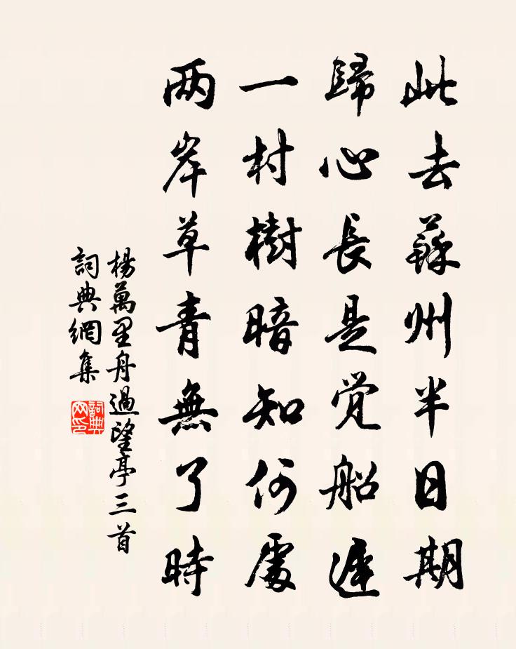 此去蘇州半日期,歸心長是覺船遲。一村樹暗知何處,兩岸草青無了時。