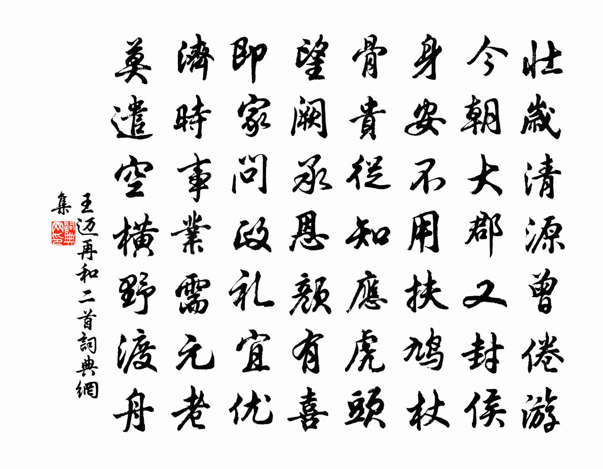 詩詞名句歷史字典書法欣賞書法字典國語詞典說文解字康熙字典古漢語字典標 題 作 者 詩 句 再和二首作者:王邁 朝代:宋代再和二首原文壯歲清源曾倦遊,今朝大郡又封侯。身安不用扶鳩杖,骨貴從知應虎頭。望闕承恩顏有喜,即家問政禮宜優,濟時事業需元老,莫遣空橫野渡舟。詩詞問答問:再和二首的作者是誰?答:王邁問:再和二首寫於哪個朝代?答:宋代王邁再和二首書法欣賞再和二首書法作品詩詞推薦山村道中思蜀陸游〔宋代〕當年萬里客西南,藥市題詩倚半酣。偶為三游群玉府,遂妨重到百花潭。剡溪漫說思安道,函谷誰能識老聃?空乞喜藥山賢師見過宋祁〔宋代〕風林曾語別,王舍此相逢。淨月常涵水,孤雲易去峰。供緣賓閣飲,耳界帝城鍾,卻舉當年話,無言促麈松。綺羅香陳著〔宋代〕裊入風腔,清含露脈,聲在絲絲煙碧。破暑吹涼,天付弄嬌雙腋。似戀戀、舞翠纖腰,斷還續、忍相離拆。最歡時送洪宰西歸少歌漁春渡是日風雨陳宗遠〔宋代〕送客來孤店,疏軒竹數莖。歸帆出煙雨,群吏立沙汀。似我情何悄,如君事最榮。待無雲隔岸,須看遠山青。贈鏡公(一作旅次錢塘)方乾〔唐代〕幽獨度遙夜,夜清神更閒。高風吹越樹,細露濕湖山。月皎微吟後,鐘鳴不寐間。如教累簪組,此興豈相關?秦兵部書堂張耒〔宋代〕丈人憐我厚,許與過常情。身世已迂闊,功名何敢爭。笑談忘晚輩,樽俎罄生平。欲斸臨淮地,從公老此生。餉饁歌鄭樵〔宋代〕提筐兮阡陌,花紅兮衣白,步遲遲兮心迫迫。行至止兮嗟於役,低聲相勞兮日其夕。縉雲縣仙都山黃帝祠宇王銍〔宋代〕我渡溪山尋荒村,群峰勢若萬馬奔。酣酣春色雪初霽,靄靄野氣山猶昏。瓊樓金闕滌地盡,松柏半帶斤斧痕。要還春陰二首陳造〔宋代〕連連麥浪搖空闊,挺挺松幢暝寒。眼底春工餘幾在,更堪風雨苦摧殘。鷓鴣天韓玉〔宋代〕披拂芝蘭便斷金。頓成南北豈勝任。三年尊酒半生話,千里雲山一寸心。休悵望,莫登臨。夢魂何處不相尋。柔腸勸農有感三首高斯得〔宋代〕衍漾春郊遍野疇,不堪回首劍南州。勸農官吏渾冠鶡,力穡丁夫總帶牛。苦欲如邛嗟未得,自憐適越竟何求。春風楊柳枝劉禹錫〔唐代〕南陌東城春草時,相逢何處不依依?桃紅李白皆夸好,須得垂楊相發揮。雜詠三首宋祁〔宋代〕金爐焚蕙荃,香播蕙已灰。郁馥誠可貴,無乃為蕙災。上瓦編翠煙,下礎挺沈質。所用不必同,相濟所宮室。擬白樂天期李二十文略王十八質夫不至獨宿仙晃逈〔宋代〕角勝勞生不足雲,濫傳僧語亦非真。始知解愛禪中樂,萬萬人中無一人。悼鄭彥繼書墓亭朱槔〔宋代〕蒼梧翠柏泣西風,尺冢巍然宿草中。寶劍何心求季子,只雞今日過橋公。麟經有味人誰識,鶴陣論功氣自雄。欲拂宴交代湖南提弄李運使致語口號文天祥〔宋代〕河流雙星會使槎,分明徹夜照長沙。轡絲曉轉全龜影,衣繡春隨錦鵲花。雲杏舊陰涼綠淨,野萍新韻度朱華。明年挽諸葛壽之孫應時〔宋代〕人物殊高朗,交遊見直溫。蠅頭深故帙,塵尾富名言。憗不儀多士,猶令重一門。若耶溪上月,空復閉山村。書古寺僧房齊己〔唐代〕綠樹深深處,長明焰焰燈。春時游寺客,花落閉門僧。萬法心中寂,孤泉石上澄。勞生莫相問,喧默不相應。秦原覽古於濆〔唐代〕耕者戮力地,龍虎曾角逐。火德道將亨,夜逢蛇母哭。昔日望夷宮,是處尋桑谷。漢祖竟為龍,趙高徒指鹿。當時水龍吟(別傅先之提舉,時先之有召命)辛棄疾〔宋代〕只愁風雨重陽,思君不見令人老。行期定否,徵車幾兩,去程多少。有客書來,長安卻早,傳聞追詔。問歸來何日名句推薦聖人終不為大,故能成其大。老子《老子·德經·第六十三章》 何期今日酒,忽對故園花。文森《九日》 蛛絲暗鎖紅樓,燕子穿簾處。吳文英《荔枝香近·七夕》 最是多情汴堤柳,春來依舊帶棲鴉!曾棨《維揚懷古》 罩向金籠好羽儀,分明喉舌似君稀僧定渚《詠鸚鵡》 去來江口守空船,繞船月明江水寒。白居易《琵琶行 / 琵琶引》 君問歸期未有期,巴山夜雨漲秋池。李商隱《夜雨寄北》 致治在於任賢,興國在於務農。陳壽《三國志·魏書·辛毗楊阜高堂隆傳》 藥醫不死病,佛度有緣人。馮夢龍《醒世恆言·卷十》 淒涼南浦,斷橋斜月。房舜卿《憶秦娥·與君別》