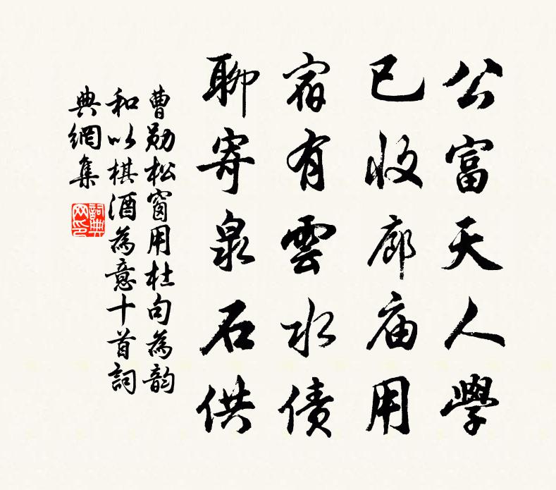 詩詞名句歷史字典書法欣賞書法字典國語詞典說文解字康熙字典古漢語字典標 題 作 者 詩 句 松窗用杜句為韻和以棋酒為意十首作者:曹勛 朝代:宋代原文公富天人學,已收廊廟用。宿有雲水債,聊寄泉石供。詩詞問答問:《松窗用杜句為韻和以棋酒為意十首》的作者是誰?答:曹勛問:該詩寫於哪個朝代?答:宋代書法欣賞松窗用杜句為韻和以棋酒為意十首書法作品詩詞推薦蘇幕遮(錢塘避暑憶舊用美成韻)趙必〔宋代〕遠迎風,迴避暑。人似荷花,笑隔荷花語。無限情雲並意雨。驚散鴛鴦,蘭棹波心舉。約重遊,輕別去。斷橋風月送劉時可縣丞奉母游岷山程公許〔宋代〕西爽抗層霄,南牆回見招。乘春扶鶴馭,披霧過龍橋。香火祈親壽,煙霞遠俗囂。歸來索吟稿,起我意逍遙。邊公式周表卿侍郎同年會王之道〔宋代〕侍郎修好燕群公,雁塔題名二紀同。談笑靜移楊柳日,杯盤清乏芰荷風。鵬摶競祝三旌貴,鯨吸相期百榼空。此會憶秦娥(茉莉)韓淲〔宋代〕香滴滴。肌膚冰雪嬌無力。嬌無力。秋風涼冷,有誰消得。洗妝不奈雲鬟側。璧堂珠院空相憶。空相憶。輕顰淺笑海覺禪師山院貫休〔唐代〕人言海覺老宗師,隱絕層巔世莫知。青草不生行道跡,白雲常護坐禪扉。六環金錫飛來後,一派銀河瀉落時。借問贈潛溪李明府趙湘〔唐代〕縣幽多水石,栽竹亦成畦。聽雨公田近,開窗月岳齊。宿禽無別語,病馬立閒蹄。夜坐聞清唱,何人釣月溪。次韻梁教授陳造〔宋代〕房陵為州亂山鎖,雅宜著此衰病身。勿雲蕞爾曹鄶下,舞袖莫回腳不伸。土風疎鬯北通魏,語音勁正西帶秦。入箸西山道中蕭元之〔宋代〕省得離家日,秋風吹我衣。客吟詩句贈,兒問幾時歸。獨宿孤村館,長懷舊竹扉。羈愁不堪觸,山雨暗斜暉。謁金門石孝友〔宋代〕歸不去。歸去又還春暮。洞裡小桃音信阻。幾番風更雨。相伴竹筇芒履。穿盡松溪花塢。早是行人貪道路。聲聲聞喜劉伯宣尚書至五首方回〔宋代〕於世已無求,公來特少留。相期一會面,動隔幾年秋。鼎貴曾何樂,常飢亦不憂。端能專鳳沼,未必勝漁舟。芙蓉峰鄭芝秀〔宋代〕芙蓉峰插最高峰,上有仙台近碧空。不憚攀蘿登絕頂,俯盾塵世一樊籠。題所書黃庭經後(泥金正書)景審〔唐代〕金粉為書重莫過,黃庭舊許右軍多。請看今日酬恩德,何似當年為愛鵝。臨秋三首宋庠〔宋代〕兀坐臨秋水,悠然到夕霏。蓮叢經雨折,菰米待霜肥。有餌潛鱗出,無軒野鶴飛。騶呼且勿遽,更待月華歸。曉炊黃竹莊三首楊萬里〔宋代〕琯灰蔌蔌欲飛聲,日到牽牛第幾星。地底陽生人不覺,燒痕未冷已青青。鈴齋馮時行〔宋代〕亂離固多事,賢哲有要領。一切本仁義,條教日月炳。邦民用不犯,閉閣自非省。猶能肖蓋公,使我醉清淨。春風憶猿吳融〔唐代〕翠微雲斂日沈空,叫徹青冥怨不窮。連臂影垂溪色里,斷腸聲盡月明中。靜含煙峽淒淒雨,高弄霜天裊裊風。猶有偈頌七十二首釋祖欽〔宋代〕語默俱忘非是非,聖凡情盡絕玄微。穿花蛺蝶深深見,點水晴蜓款款飛。登廬山東峰觀九江合彭蠡湖吳筠〔唐代〕百川灌彭蠡,秋水方浩浩。九派混東流,朝宗合天沼。寫心陟雲峰,縱目還縹緲。宛轉眾浦分,差池群山繞。江妃和青州教授頓起九日見寄蘇轍〔宋代〕歲月飄然風際煙,紫萸 * 又霜天。莫思太室杉松外,且醉青州歌舞前。〈昔年與頓君同登嵩頂,時正重九。杯酒採桑子(一名醜奴兒、羅敷媚、羅敷艷歌)李煜〔唐代〕轆轤金井梧桐晚,幾樹驚秋。晝雨新愁,百尺蝦須在玉鉤。瓊窗春斷雙蛾皺,回首邊頭。欲寄鱗游,九曲寒波不溯名句推薦興天下之利,除天下之害。墨子《墨子·12章 尚同(中)》 吾本乘興而行,興盡而返,何必見戴!劉義慶《世說新語·任誕》 榮螈,蜥蜴。佚名《爾雅·釋魚》 幽蘭旋老,杜若還生,水鄉尚寄旅。吳文英《鶯啼序·春晚感懷》 算明朝、未了重陽,紫萸應耐看。吳文英《霜花腴·重陽前一日泛石湖》 君是南山遺愛守,我為劍外思歸客。蘇軾《滿江紅·江漢西來》 習俗移志,安久移質。荀子《荀子·儒效》 青山橫北郭,白水繞東城李白《送友人》 天欲禍人,必先以微福驕之,要看他會受陳繼儒《小窗幽記·集醒篇》 天地之性,人為貴。 人之行,莫大於孝。孔子及其弟子《孝經·聖治》