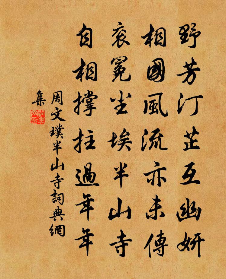 詩詞名句歷史字典書法欣賞書法字典國語詞典說文解字康熙字典古漢語字典標 題 作 者 詩 句 半山寺作者:周文璞 朝代:宋代半山寺原文野芳汀芷互幽妍,相國風流亦未傳。袞冕塵埃半山寺,自相撐拄過年年。詩詞問答問:半山寺的作者是誰?答:周文璞問:半山寺寫於哪個朝代?答:宋代周文璞半山寺書法欣賞半山寺書法作品詩詞推薦答楊辛一君重陽對雨見寄韓維〔宋代〕秋風吹雨入荒城,城下籬邊菊艷明。佳節相從平日事,新詩遙寄故人情。浮沉保宦非吾願,俯仰流年只自驚。早晚孽海情天對聯曹雪芹〔清代〕厚地高天,堪嘆古今情不盡,痴男怨女,可憐風月債難償。再和四首郭印〔宋代〕東皇物色未全收,山半登臨當倚樓。錦里煙光渾在眼,雲溪花片亦隨流。夕陽正好無多景,春序才移已復秋。卻憶慈雲嶺楊蟠〔宋代〕左右盼江湖,遊人憩半途。山高步步上,何用嘆崎嶇。將發琵琶亭岳珂〔宋代〕前歲西泝鄂,今歲東入吳。同一琵琶亭,行客各異塗。當時白傅恨,陳跡久榛蕪。豈特無遺音,榛蕪今亦無。突兀孚舟亭新成賦十絕方回〔宋代〕不待圓□□□□,□□□□□□□。棲梁燕乳春聲豫,細玩天機坐此亭。巴陵界中作孔武仲〔宋代〕曲曲秋江灩灩波,直疑乘興到銀河。逢人慾問支機石,此去星橋路幾多。一別湖湘二十秋,飄然羈旅復萍浮。冰霜天竺寺八月十五日夜桂子皮日休〔唐代〕玉顆珊珊下月輪,殿前拾得露華新。至今不會天中事,應是嫦娥擲與人。眼兒媚王賞〔宋代〕凌寒低亞出牆枝。孤瘦雪霜姿。歲華已晚,暗香幽艷,自與時違。化工放出江頭路,沙水冷相宜。東風自此,別開雪齋即事一首蘇籀〔宋代〕熾炭雪窗塵簡編,慵偎毳被藉粗氈。卯晨呵筆冰膠研,乙夜橫琴凍折弦。鬱郁烹鮮具羹戛,浮浮炊餗忍饞涎。鬻薪偈頌十九首釋紹曇〔宋代〕不業農商不業儒,菑田弗下寸根株。驢年斫倒菩提樹,羞見新州個老盧。寄廬山道士二首董嗣杲〔宋代〕才懷故里餘清夢,方說廬山得好詩。何日與師傳菊酒,劇談浩劫未分時。晨起待子聿歸陸游〔宋代〕老人盥櫛罷,坐待汝晨省;忽思隔重關,懷抱增耿耿。小雨暗北窗,誰與慰淒冷?卷書默袖手,奈此清晝永!懸知次張丞送菊韻二首陳造〔宋代〕粉身免泛杯中物,並駕容陪隴首花。況耐歲寒雙乾在,周旋三益羨君家。過淞江憶鄭虞任項安世〔宋代〕獨上吳淞第四橋,憶隨鄭老駐蘭橈。白頭髮佛平生處,一盞寒泉賦大招。蚊二首蒲壽宬〔宋代〕白日沿溝渠,中宵隱堂奧。獨處招燎煙,幾人有良幬。眶睫知若何,口觜有計暴。晚投慈恩寺呈俊上人許渾〔唐代〕雙岩瀉一川,十里絕人煙。古廟陰風地,寒鍾暮雨天。沙虛留虎跡,水滑帶龍涎。不及曹溪侶,空林已夜禪。早起施樞〔宋代〕檐前鳴玉響丁東,清夢初回鶴帳中。早起井梧飄一葉,方知昨夜是秋風。倚月仇遠〔宋代〕大江東去月分明,烏鵲南飛露氣清。如此嬋娟人不愛,倚樓獨立過三更。舟中讀元九詩白居易〔唐代〕把君詩卷燈前讀,詩盡燈殘天未明。眼痛滅燈猶暗坐,逆風吹浪打船聲。名句推薦刑天舞乾戚,猛志固常在。陶淵明《讀山海經·其十》 養備而動時,則天不能病;修道而不貳,則天不能禍。荀子《荀子·天論》 雨窗和淚搖湘管。意長箋短。許棐《後庭花·一春不識西湖面》 綠池落盡紅蕖卻,荷葉猶開最小錢。楊萬里《秋涼晚步》 西山白雪三城戍,南浦清江萬里橋。杜甫《野望》 旌旆夾兩山,黃河當中流。李白《經亂離後天恩流夜郎憶舊遊書懷贈江夏韋太守良宰》 玉輪碾平芳草,半面惱紅妝。陳子龍《訴衷情·春遊》 經年塵土滿征衣,特特尋芳上翠微。岳飛《池州翠微亭》 夫輕諾必寡信,多易必多難。老子《老子·德經·第六十三章》 無錢休入眾,遭難莫尋親。佚名《增廣賢文·上集》