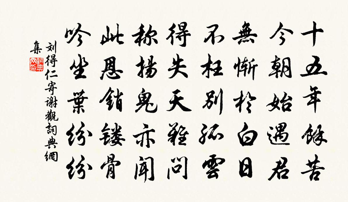 詩詞名句歷史字典書法欣賞書法字典國語詞典說文解字康熙字典古漢語字典標 題 作 者 詩 句 寄謝觀作者:劉得仁 朝代:唐代寄謝觀原文十五年余苦,今朝始遇君。無慚於白日,不枉別孤雲。得失天難問,稱揚鬼亦聞。此恩銷鏤骨,吟坐葉紛紛。詩詞問答問:寄謝觀的作者是誰?答:劉得仁問:寄謝觀寫於哪個朝代?答:唐代問:寄謝觀是什麼體裁?答:五律劉得仁寄謝觀書法欣賞寄謝觀書法作品注釋全唐詩:卷544-64詩詞推薦和贈知宮王洋〔宋代〕洞門九鎖是天關,出世那知在世間。行客沖煙排洞戶,主人失足到人寰。飽餐蔬筍棄朝暮,便與孤雲結往還。因為送蹇秀才赴臨洮高適〔唐代〕悵望日千里,如何今二毛。猶思陽穀去,莫厭隴山高。倚馬見雄筆,隨身唯寶刀。料君終自致,勳業在臨洮。和劉後村梅花百詠方蒙仲〔宋代〕不把山林換市朝,鮮明自是一時標。便令大冶安能鑄,儻有小山差可招。初夏即事一首謝俞德遠惠茶洪咨夔〔宋代〕病眼昏花懶讀書,閉門恬養冉溪愚。一簾草色蛤呼伴,四壁樹陰雞護雛。已是歸來何用引,本無太極不須圖。小團題成國仲畫扇王之道〔宋代〕奮髯欲何為,戢翼應有待。畫工妙丹青,物狀從變態。感懷方岳〔宋代〕三十年前氣掛天,老來身世竟茫然。窮愁正坐識丁字,生事不聊稱子錢。得見古人千載上,已忘今我一漚邊。劉伶鮑融州病足叩謁適遇孝若示融州菊詩和篇次韻許及之〔宋代〕不見融州夏涉秋,居然款對豁羈愁。猶存尊足憐同病,不擊虛舟任打頭。久待一州當斂惠,終煩諸野要營求。我今族叔疇甫老死於場屋人共惜之其子得瑞梅於園洪咨夔〔宋代〕乃翁抱璞售地媒,去作修文地下魁。換骨法從青子得,返魂香自綠陰來。詩書根氣春無盡,清白源流慶有開。十二寄陳孟容二首喻良能〔宋代〕先生湖海士,餘子詎能班。正始清談近,黃初美句還。相望半舍外,契闊數年間。何日衡茅底,匏樽一破顏。梅落二首趙蕃〔宋代〕春風可是獨嗔梅,不待飄零著雨催。我欲挽留無上策,戲拈落蕊薦芳醅。寄延帥趙龍圖卨李復〔宋代〕瘴嶺有毒霧,鳴沙無美田。乾坤滋孕毓,山海限腥羶。乾舞旄星落,弓橐譯舌傳。但能思上策,何必勒燕然。雜興陸游〔宋代〕冰壺冷浸玉芙蕖,三伏炎蒸一點無。淨洗硯池瀦墨瀋。乘涼要答故人書。布袋贊釋普濟〔宋代〕南無阿逸多,忙忙走寰宇。等個人未至,放下寬腸肚。來也來也,泰岳何曾乏土。採桑子·彭浪磯朱敦儒〔宋代〕扁舟去作江南客,旅雁孤雲。萬里煙塵。回首中原淚滿巾。碧山對晚汀洲冷,楓葉蘆根。日落波平。愁損辭鄉去國惜雙雙令/惜分飛劉弇〔宋代〕風外桔花香暗度。飛絮綰、殘春歸去。醞造黃梅雨。冷煙曉占橫塘路。翠屏人在天低處。驚夢斷、行雲無據。此恨游石門洞李洪〔宋代〕溪壑縈紆礙去舟,石門雄峭未曾游。雲深飛瀑自成雨,洞辟雙扉最上頭。紫府丹台疑有路,碧岩紅樹飽經秋。追懷遲明出都宋庠〔宋代〕曉出西郊道,回瞻北闕天。城頭雲斂蓋,關外月低弦。委佩辭朝紱,鳴笳逐使旃。老臣三去國,憑軾淚潺湲。九真山淨居寺謁無礙上人沈佺期〔唐代〕大士生天竺,分身化日南。人中出煩惱,山下即伽藍。小澗香為剎,危峰石作龕。候禪青鴿乳,窺講白猿參。藤愛范參議宜人高氏輓詩二首李彌遜〔宋代〕毓秀勛庸後,來嬪詩禮家。浮雲輕富貴,朽木視鉛華。晚日俄晞露,春風自笑花。平生偕老志,愁絕五雲車。風入松(岫雲)張炎〔宋代〕卷舒無意入虛玄。丘壑伴雲煙。石根清氣千年潤,覆孤松、深護啼猿。靄靄靜隨仙隱,悠悠閒對僧眠。傍花懶向小名句推薦酒極則亂,樂極則悲。司馬遷《史記·滑稽列傳》 越梅半拆輕寒里,冰清淡薄籠藍水。和凝《菩薩蠻·越梅半拆輕寒里》 黃河之水天上來,奔流到海不復回。李白《將進酒》 春風旍旗擁萬夫,幕下諸將思草枯。黃庭堅《送范德孺知慶州》 舉杯邀明月,對影成三人。李白《月下獨酌四首·其一》 是數人之齒,而以為富。墨子《墨子·48章 公孟》 山有木兮木有枝,心悅君兮君不知。佚名《越人歌》 大兒鋤豆溪東,中兒正織雞籠。辛棄疾《清平樂·村居》 欸乃一聲山水綠。回看天際下中流,岩上無心雲相逐柳宗元《漁翁》 留連光景惜朱顏,黃昏獨倚闌。李煜《阮郎歸·呈鄭王十二弟》
