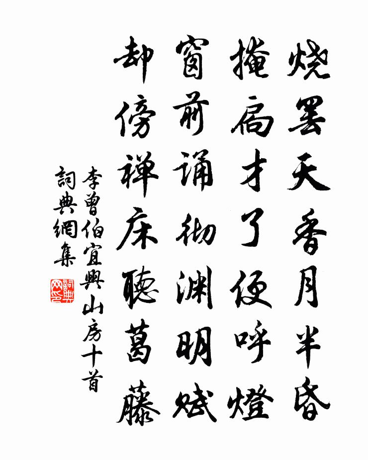 詩詞名句歷史字典書法欣賞書法字典國語詞典說文解字康熙字典古漢語字典標 題 作 者 詩 句 宜興山房十首作者:李曾伯 朝代:宋代宜興山房十首原文燒罷天香月半昏,掩扃才了便呼燈。窗前誦徹淵明賦,卻傍禪床聽葛藤。詩詞問答問:宜興山房十首的作者是誰?答:李曾伯問:宜興山房十首寫於哪個朝代?答:宋代李曾伯宜興山房十首書法欣賞宜興山房十首書法作品詩詞推薦十二時/憶少年佚名〔宋代〕聖明代,海縣澄清。惠化洽寰瀛。時康歲足,治定功成。遐邇賀昇平。嘉壇上,昭事神靈。薦明誠。報本禪雲亭。次韻謝呂君見寄二首方回〔宋代〕弱冠清修更老成,詩來重慰故人情。向曾屢共阿戎語,今乃新聞侯喜聲。材大君當為杞梓,哭微吾僅比瓶罌。平生偈公六十五首釋鹹傑〔宋代〕今朝六月十五,祝聖升堂擊鼓。木童火里吹笙,石女雲中作舞。也大奇,也大奇,天無四壁,地絕八維。五湖四海菊花十二首史鑄〔宋代〕菊花有意浮杯酒,秋老霜濃滿檻開。多謝主人相管領,盡收清致助吟才。擬古三章留別果山同官吳泳〔宋代〕同門二三友,星弁嘗蟬聯。一日兩會面,三日一共筵。共旨棋聲里,雨夜詩籌前。斗酒相為娛,餘歡則陶然。永言玉唾壺岳珂〔宋代〕古來玉唾壺,歌罷壺為缺。憂時一片心,常惜志士烈。{左辟右鳥}鵜瑩出昆吾刀,截肪溫潤如世膏。悲歌聲動行剛叔以雅言題拙稿輒依韻和酬強至〔宋代〕每恨塵勞荒舊學,更慚篆刻得初名。聖賢閫奧期深入,風雅源流庶一清。短技示人方蓄縮,雄篇鏖我太崢嶸。君詩次韻趙克勤吏部六首劉克莊〔宋代〕甫里薄田汾曲廬,兒曹堪墾亦堪居。惟應水竹並風月,尚屬先生未屬渠。頌古二十七首釋雲賁〔宋代〕牙根爛嚼真彌勒,腹里橫吞老釋迦。大地虛空皆得飽,這回不到負檀家。再和呈李提舉曹勛〔宋代〕僑寓江城意豈疎,得親仙李似南舒。高門帶佩昭寰宇,一代勛庸切太虛。相業自應求的子,老成宜復被親除。中興除月二十三日夜夢許月卿〔宋代〕仙君重瞳袞衣明,紅雲一朵當殿楹。千官拜舞環佩鳴,中有一人攝齊升。琅琅敷誦百辟驚,首雲有臣許月卿。合在先立春一日電雪交作程叔運賦詩次韻魏了翁〔宋代〕自從日馭行牽牛,四十五日為春朝。誰驅阿香送劈歷,更遣玉女來姑瑤。從來雷雪不兩立,有如皋禹於驩苗。闖然泐潭暹上人出示延福頌古三首索鄙語因用其韻釋慧空〔宋代〕引鼻牽回野鴨兒,升堂卷席便高飛。後來要識吾宗旨,試看而今是甚時。送元晟歸江東舊居李端〔唐代〕澤國舟車接,關門雨雪乖。春天行故楚,夜月下清淮。講易居山寺,論詩到郡齋。蔣家人暫別,三路草連階。閒適白居易〔唐代〕祿俸優饒官不卑,就中閒適是分司。風光暖助遊行處,雨雪寒供飲宴時。肥馬輕裘還粗有,粗歌薄酒亦相隨。微躬菩薩蠻張孝祥〔宋代〕恰則春來春又去。憑誰說與春教住。與問坐中人。幾回迎送春。明年春更好。只怕人先老。春去有來時。願春長見憶新淦觴池寄孟賓於員外徐鉉〔唐代〕往年淦水駐行軒,引得清流似月圓。自有谿光還碧甃,不勞人力遞金船。潤滋苔蘚欺茵席,聲入杉松當管弦。珍重翩翩春燕行釋文珦〔宋代〕翩翩春燕,厥有常心。來以春陽,去以秋陰。不爽於社,為時所欽。玄衣濟濟,美度愔愔。差池其羽,下上其音。初寒無衾買紙被以紓急作四絕趙蕃〔宋代〕度夕陰風吹扊扅,布衾如鐵念嬌兒。夜來例拜奇溫賜,但覺安眠曉不知。對雪二首毛滂〔宋代〕空庭白鳳舞毰毸,撲帟窺簾去卻回。柳絮似將春色到,梅梢不認月華來。輕盈舞殿三千女,縹緲飛天十二台。定有名句推薦以少總多,情貌無遺矣。劉勰《文心雕龍·物色》 聖人不能為時,時至而弗失。劉向《戰國策·秦三·秦客卿造謂穰侯》 那堪旅館經殘臘,只把空書寄故鄉。王建《維揚冬末寄幕中二從事》 我醉欲眠卿且去,明朝有意抱琴來。李白《山中與幽人對酌》 淡淡橫朝煙,脈脈深秋思。劉道著《湘江秋曉》 何意百鍊剛,化為繞指柔。劉琨《重贈盧諶》 日日思君不見君,共飲長江水。李之儀《卜運算元·我住長江頭》 春思亂,芳心碎。惠洪《千秋歲·半身屏外》 行一不義,殺一無罪,而得天下,仁者不為也。司馬光《資治通鑑·周紀·周紀四》 孔子大聖,不免武叔之毀;子路至賢,猶有伯寮之訴。范曄《後漢書·列傳·列女傳》
