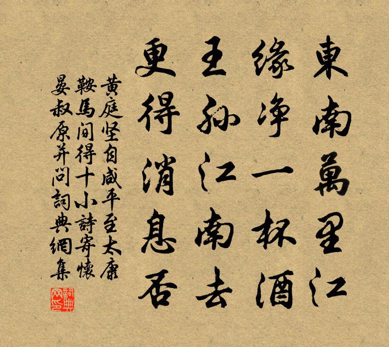 東南萬里江,緣淨一杯酒。王孫江南去,更得訊息否。