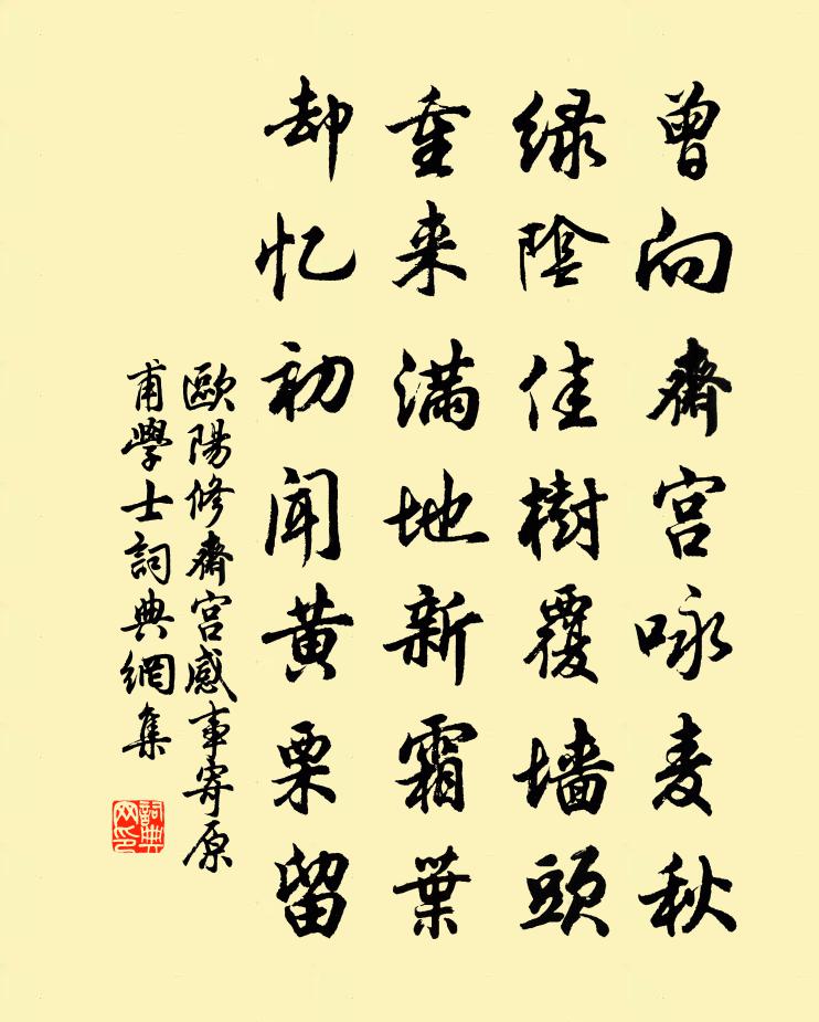 曾向齋宮詠麥秋,綠陰佳樹覆牆頭。重來滿地新霜葉,卻憶初聞黃栗留。