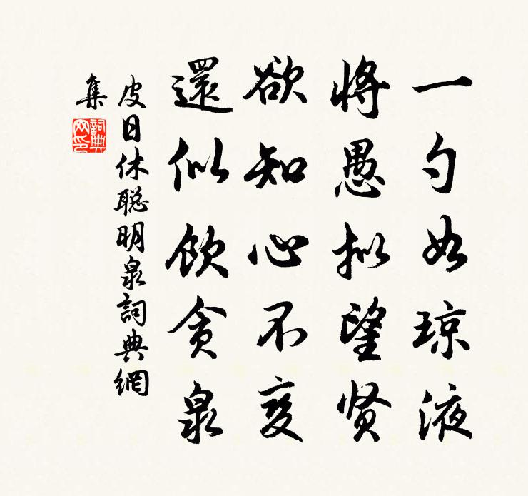 詩詞名句歷史字典書法欣賞書法字典國語詞典說文解字康熙字典古漢語字典標 題 作 者 詩 句 聰明泉作者:皮日休 朝代:唐代聰明泉原文一勺如瓊液,將愚擬望賢。欲知心不變,還似飲貪泉。詩詞問答問:聰明泉的作者是誰?答:皮日休問:聰明泉寫於哪個朝代?答:唐代問:聰明泉是什麼體裁?答:五絕皮日休聰明泉書法欣賞聰明泉書法作品注釋全唐詩:卷615-6詩詞推薦答友人惠牙簪章孝標〔唐代〕牙簪不可忘,來處隔炎荒。截得半環月,磨成四寸霜。曉辭梳齒膩,秋入髮根涼。好是紗巾下,纖纖錐出囊。江畔獨步尋花·其六杜甫〔唐代〕黃四娘家花滿蹊,千朵萬朵壓枝低。留連戲蝶時時舞,自在嬌鶯恰恰啼。和陳魯山十詩以孟夏草木長遶屋樹扶疏為韻陸游〔宋代〕大父昔在朝,騰上唯恐早。淡然清班中,灰寒而木槁。議論主中和,人才進耆老。至今下馬墳,不生刺人草。挽武龍蹇巡檢陽枋〔宋代〕仁者壽宜得,王臣忠可嘉。功名是有約,雲月自為家。義粟飢中糶,茲梁雨後斜。百年回首處,溪冷欲梅花。送僧歸護國寺王化基〔宋代〕巋然傍勢浙江東,不羨金庭第一峰。法境常清五十里,妙蓮今現幾千重。清涼解洗枝頭露,變更能飛缽底龍。平日玉隆得丹芝陸游〔宋代〕何用金丹九轉成,手持芝草已身輕。祥雲平地擁笙鶴,便自西山朝玉京。沁園春 次韻林南金賦愁陳人傑〔宋代〕撫劍悲歌,縱有杜康,可能解憂。為修名不立,此身易老,古心自許,與世多尤。平子詩中,庾生賦里,滿目江山送一老住廬山歸宗樓鑰〔宋代〕久向東山捲藏經,鬼神推出舉軍驚。從來要去廬山住,好就山中過此生。讀梅福傳有感高斯得〔宋代〕君不見綏和天子在御世五春,畫堂甲觀寂寂空無人。豈無壯發類元帝,奈燕飛來啄皇孫。三星屢暗紫宮裹,群臣默河南王尉西齋梅堯臣〔宋代〕官舍古城隅,西齋何寂寂。種竹幽趣深,開屏翠光滴。青山露南牆,落日明東壁。危台起其傍,其隰坐可覿。歲暮送劉漢老過蕪湖董嗣杲〔宋代〕歌傅制錦久,樂得袖琴過。浙客量鹽少,淮商販藥多。隨燈游晚市,沽酒隔昏河。才見江豚起,東風又碧波。南園周元明〔宋代〕熳爛花時錦繡張,無端下馬擊垂楊。山亭水閣笙歌地,合與行人作醉鄉。南陽酇詩王祜〔宋代〕置酒向南宮,分明將將雄。指蹤為第一,大國賞元戎。似續惟人傑,危忘盡狗功。賢哉垂儉德,千古仰清風。寄明州於駙馬使君三絕句白居易〔唐代〕有花有酒有笙歌,其奈難逢親故何。近海饒風春足雨,白須太守悶時多。平陽音樂隨都尉,留滯三年在浙東。吳越留槎閣陳舜俞〔宋代〕聞說歐川似沃洲,一溪分作雨溪流。長橋跨岸虹垂地,高閣凌空蜃吐樓。浩蕩乾坤供醉眼,淒涼風雨送行舟。憑誰有感三首李覯〔宋代〕官家的的要寬征。古時什一今更輕。州縣酷嫌民漸富,幾多率斂是無名。曉坐釋文珦〔宋代〕夢破不成寐,茅齋坐清曉。他山已擊鐘,獨樹初啼鳥。四體既調柔,眾境亦深窈。素書未終軸,朝光射林杪。任性迎仙客王哲〔元代〕這曲破。先入破。迎仙客處休言破。勘得破。識得破。看看把我,肚皮都鱉破。會做麽。是恁麽。柰何子午貪眠麽山居李新〔宋代〕綠樹初浮光,嘉禽自行樂。廚煙續雲根,澗水斷冰腳。徜徉一樽酒,坐看山花落。日暮歸去來,嫣香裛羅幕。春初過王仲禮教授小園曾幾〔宋代〕幽居倦孤寂,俗駕難追攀。相攜筇九節,徑造茅三間。三卿貧無事,況得獨冷官。衡門靜如水,委巷深于山。自言名句推薦牽牛織女遙相望,爾獨何辜限河梁。曹丕《燕歌行二首·其一》 君歌楊叛兒,妾勸新豐酒。李白《楊叛兒》 仁則榮,不仁則辱。今惡辱而居不仁,是猶惡濕而居下也。孟子《孟子·公孫丑章句上·第四節》 灞涘望長安,河陽視京縣。謝朓《晚登三山還望京邑》 小知不可使謀事,小忠不可使主法。韓非及後人《韓非子·飾邪》 香霧雲鬟濕,清輝玉臂寒。杜甫《月夜》 父母教,須敬聽。父母責,須順承。李毓秀《弟子規·入則孝》 其餘七匹亦殊絕,迥若寒空動煙雪。杜甫《韋諷錄事宅觀曹將軍畫馬圖》 春風試手先梅蕊,頩姿冷艷明沙水。趙令畤《菩薩蠻·春風試手先梅蕊》 月明星稀,烏鵲南飛。繞樹三匝,何枝可依?曹操《短歌行》