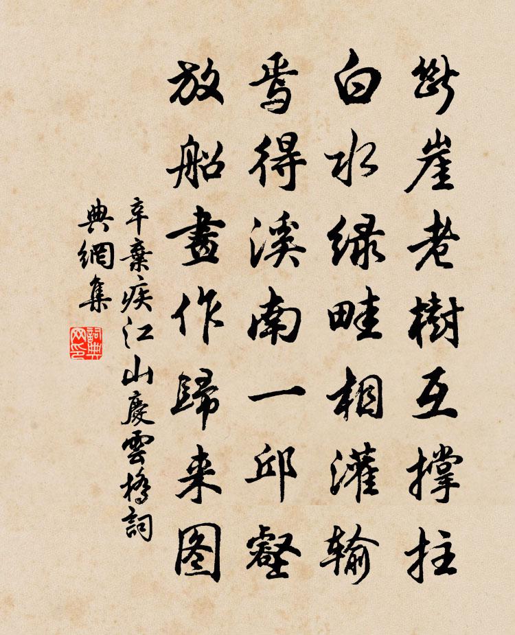 斷崖老樹互撐拄,白水綠畦相灌輸。焉得溪南一邱壑,放船畫作歸來圖。