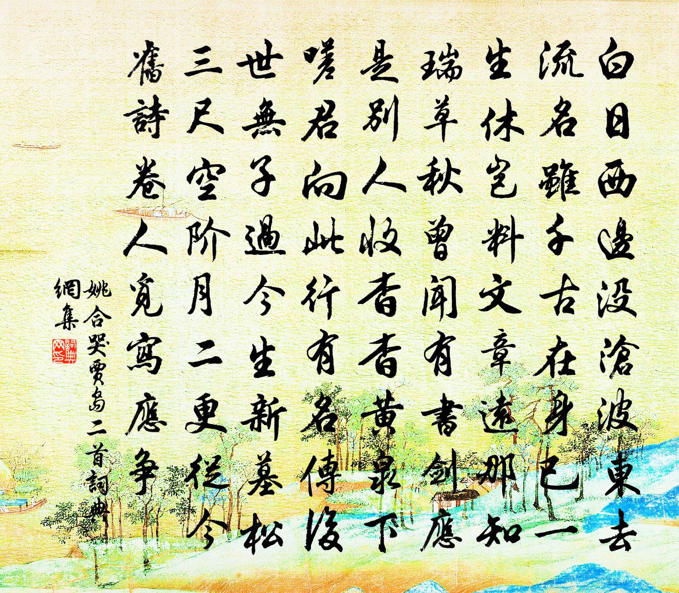 - 晚日金陵岸草平,落霞明,水無情歐陽炯《江城子·晚日金陵岸草平》