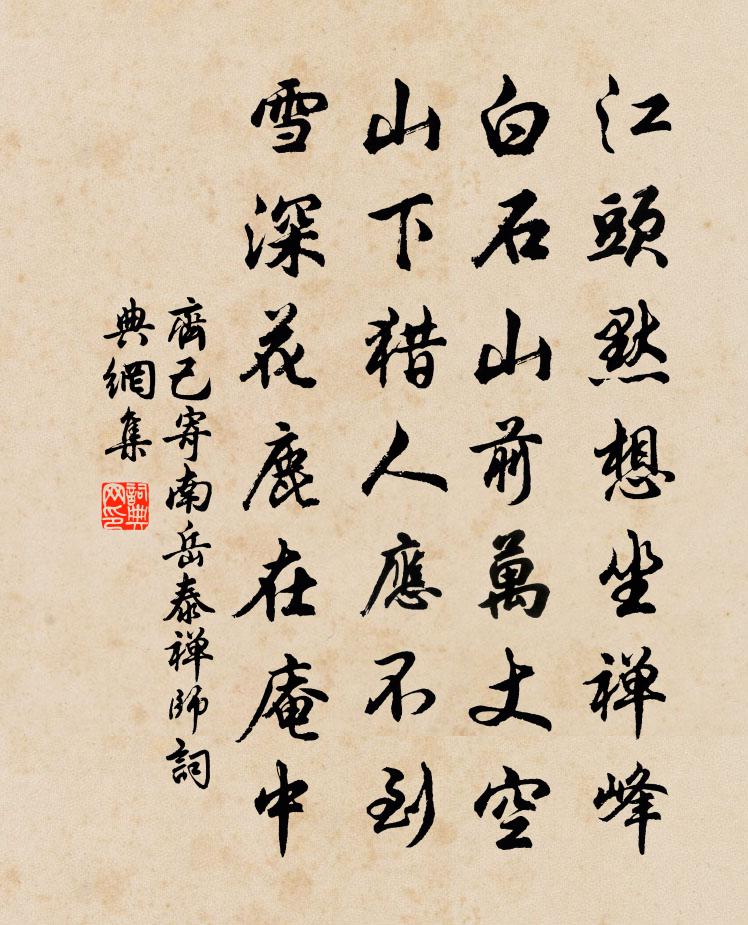 江頭默想坐禪峰,白石山前萬丈空。山下獵人應不到,雪深花鹿在庵中。
