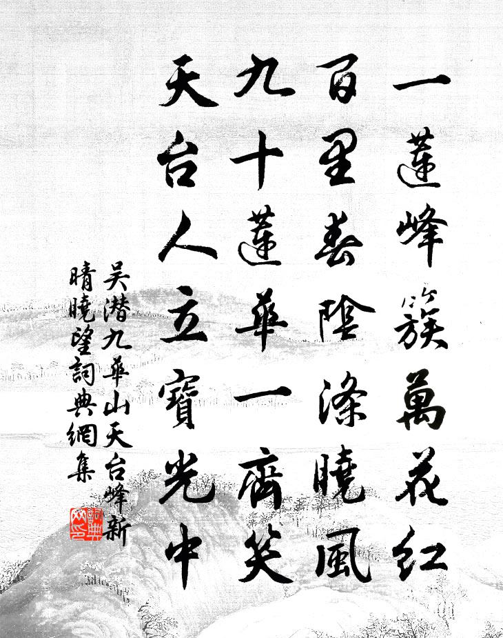 一蓮峰簇萬花紅,百里春陰滌曉風。九十蓮華一齊笑,天台人立寶光中。