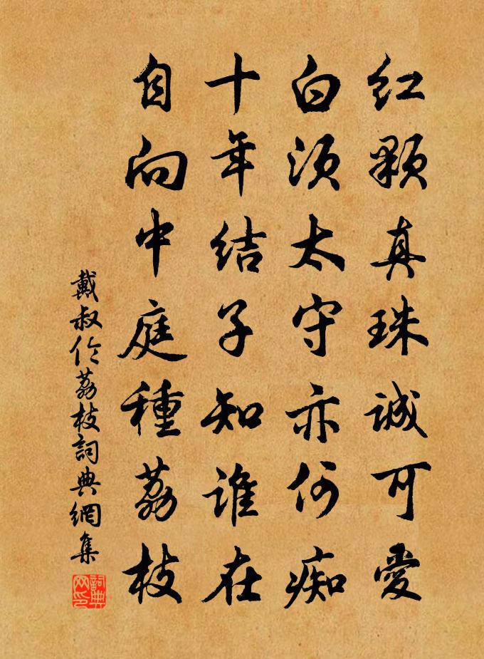 紅顆真珠誠可愛,白須太守亦何痴。十年結子知誰在,自向中庭種荔枝。