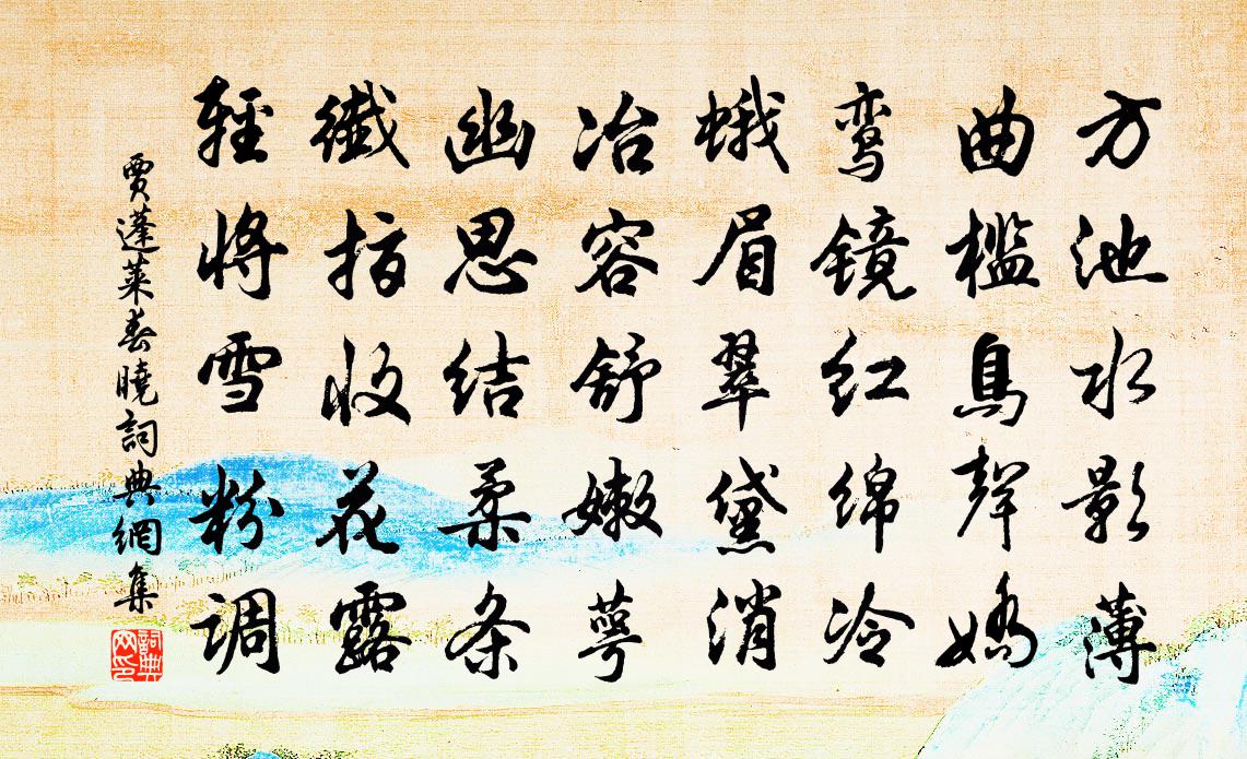 詩詞名句歷史字典書法欣賞書法字典國語詞典說文解字康熙字典古漢語字典標 題 作 者 詩 句 春曉作者:賈蓬萊 朝代:宋代春曉原文方池水影薄,曲檻鳥聲嬌。鸞鏡紅綿冷,蛾眉翠黛消。冶容舒嫩萼,幽思結柔條。纖指收花露,輕將雪粉調。詩詞問答問:春曉的作者是誰?答:賈蓬萊問:春曉寫於哪個朝代?答:宋代賈蓬萊春曉書法欣賞春曉書法作品詩詞推薦鄒衍谷李白〔唐代〕燕谷無暖氣,窮岩閉嚴陰。鄒子一吹律,能回天地心。顯聖寺庭枸杞黃庭堅〔宋代〕仙苗壽日月,佛界承露雨。誰為萬年計,乞此一抔土。扶疏上翠蓋,磊落綴丹乳。去家尚不食,出家何用許。正恐題閻立本畫水官蘇洵〔宋代〕水官騎蒼龍,龍行欲上天。手攀時且住,浩若乘風船。不知幾何長,足尾猶在淵。下有二從臣,左右乘魚黿。矍鑠殿中覆考進士度正〔宋代〕宮漏傳籌趨絳幘,御盤行炙出黃金。春餘花氣香寧重,雨足林光綠更深。通籍不須羞暮齒,好文何幸獲初心。東風后土祠瓊花傅夢得〔宋代〕朱闌遮護石為台,只說揚州地可栽。若與八仙同日文,因何九蕊有香來。此花堪詠奚須辯,自舊曾移不肯開。得得次顏博士游紫羅洞五首李若水〔宋代〕休著青衫謁五侯,徑覓拄杖山中游。故山別來鬢毛禿,一飽累人成久留。碧嶂巉巉雲影底,儻得破茅甘老此。孤猿絕句漫興九首·其四杜甫〔唐代〕二月已破三月來,漸老逢春能幾回。莫思身外無窮事,且盡生前有限杯。四不忍劉子翬〔宋代〕漁陽疊鼓風沙戰,潑水淋漓舞胡旋。此時太息念鑾輿,玉體能勝寂寞無。六宮遭亂多奔迸,不復梨園歌舞盛。著鞭古風其四十三李白〔唐代〕周穆八荒意。漢皇萬乘尊。淫樂心不極。雄豪安足論。西海宴王母。北宮邀上元。瑤水聞遺歌。玉杯竟空言。靈跡送沈子壽吳芾〔宋代〕孤城度日宛如年,賴有吾人慰眼前。把酒論文方累月,揚鞭別我遽朝天。長才合赴風雲會,新渥行沾雨露邊。帝里芙蓉花方岳〔宋代〕綠裳丹臉水芙蓉,不謂佳名偶自同。一朵方酣初日色,千枝應發去年叢。莫驚墜露添新紫,更待微霜暈淺紅。卻笑普慈學官何子固廨舍有溪月軒明復留詩用其韻郭印〔宋代〕碧霄桂影墮寒溪,賞心正與幽人期。憑軒一俯吟思發,雕肝鏤肺成新詩。水流月出鹹自爾,去來休論東與西。句中庭前柏樹子釋重顯〔宋代〕千聖靈機不易親,龍生龍子莫因循。趙州奪得連城璧,秦主相如總喪身。南柯子(東坡過楚州,見淨慈法師,作南歌子。用其韻贈郭詩翁二首)黃庭堅〔宋代〕郭泰曾名我,劉翁復見誰。入鄽還作和羅槌。特地干戈相待、使人疑。秋浦橫波眼,春窗遠岫眉。補陀岩畔夕陽遲曹彥約昌谷集同官絕賦經梅成五十六字毛滂〔宋代〕淡中著色似狂顛,心與梅同跡不然。奪我焉支寧免俗,豈無膏沐獨爭先。辨桃認杏何人拙,壓雪欺霜政自妍。只恐又記呂岩〔唐代〕數載樂幽幽,欲逃寒暑逼。不求名與利,猶恐身心役。苦志慕黃庭,殷勤求道跡。陰功暗心修,善行長日積。世路送臧奎之寧州謁韓使官魏野〔宋代〕路遠邠郊外,嚴冬去若何。時平防賊少,山險下驢多。塞色晴猶慘,蕃音譯尚訛。賢侯雖禮待,陟屺願頻歌。扇子詩李石〔宋代〕三丈為樹八尺行,花艷桃李葉柘桑。元龍自是湖海客,師德去尋田舍郎。聽詹溫之彈琴歌劉子翬〔宋代〕鳴琴藝精非小道,可惜溫之今已老。玲琅一鼓萬象春,鐵面霜髯不枯槁。自言寡和音,求我為作歌。號宮韻角可聽紀行雜詩李洪〔宋代〕水宿荒村夕照間,奔流怪石斗潺潺。白醪似密聊供醉,過盡嚴陵大浪灘。名句推薦扁舟去作江南客,旅雁孤雲。朱敦儒《採桑子·彭浪磯》 頌其詩,讀其書,不知其人,可乎?是以論其世也。孟子《孟子·萬章章句下·第八節》 桃李不言,下自成蹊。司馬遷《史記·李將軍列傳》 細雨春蕪上林苑,頹垣夜月洛陽宮。陸游《書憤五首·其二》 去年折贈行人遠,今年恨、依然縴手。吳文英《花心動·柳》 不愁屋漏床床濕,且喜溪流岸岸深曾幾《蘇秀道中》 大曰逝,逝曰遠,遠曰反。老子《老子·道經·第二十五章》 不是一番寒徹骨,怎得梅花撲鼻香!馮夢龍《醒世恆言·卷十七》 柳色黃金嫩,梨花白雪香。李白《宮中行樂詞八首》 見世人可取者多,則德日進矣。王永彬《圍爐夜話·第五六則》