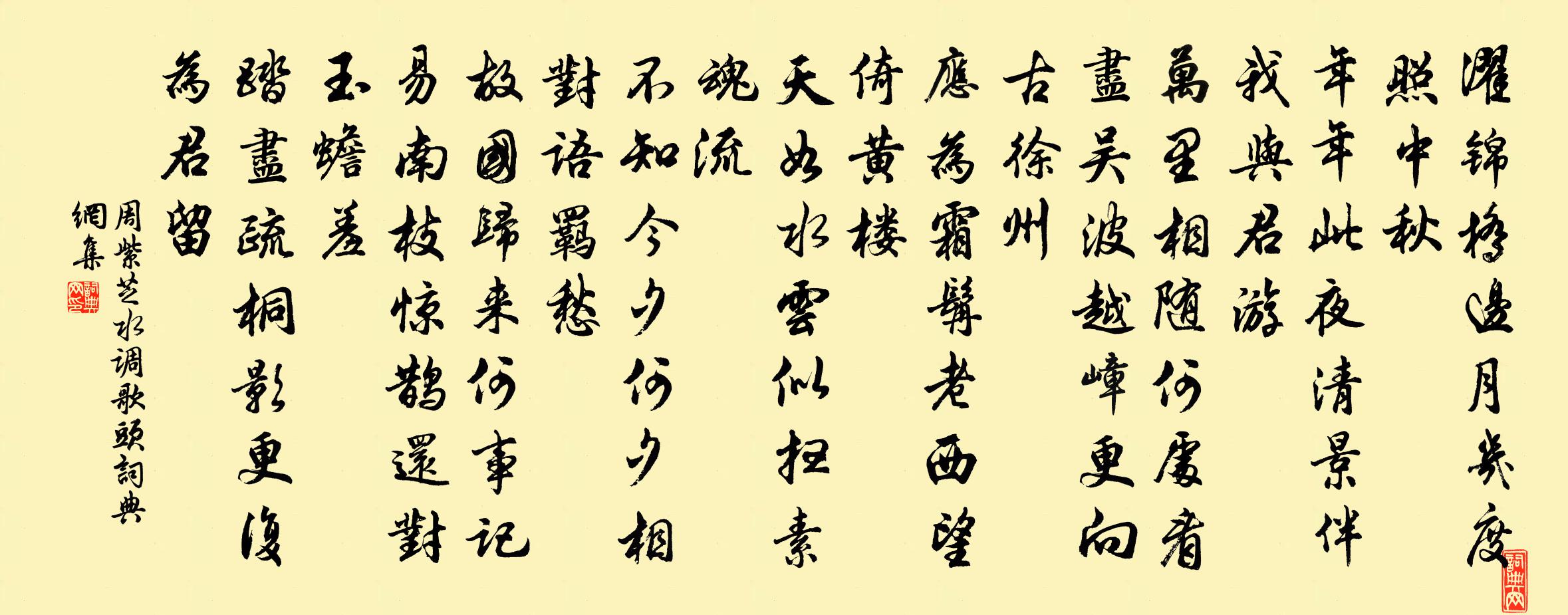 濯錦橋邊月,幾度照中秋。年年此夜清景,伴我與君游。