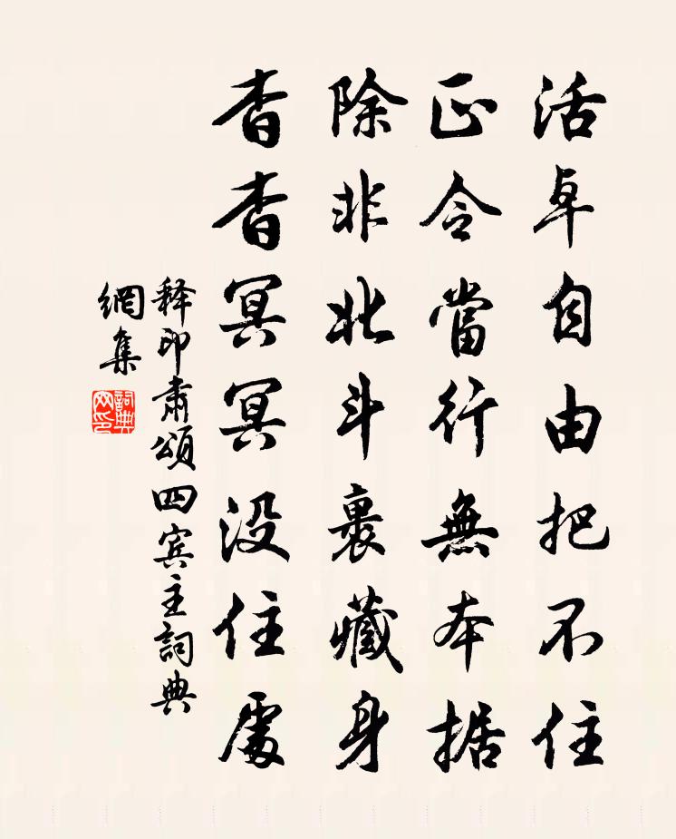 詩詞名句歷史字典書法欣賞書法字典國語詞典說文解字康熙字典古漢語字典標 題 作 者 詩 句 頌四賓主作者:釋印肅 朝代:宋代頌四賓主原文活卓自由把不住,正令當行無本據。除非北斗裹藏身,杳杳冥冥沒住處。詩詞問答問:頌四賓主的作者是誰?答:釋印肅問:頌四賓主寫於哪個朝代?答:宋代釋印肅頌四賓主書法欣賞頌四賓主書法作品詩詞推薦次何愛山喜雨韻劉黻〔宋代〕梵宮默禱托爐煙,火繖愁張六月天。雨倏隨車符蟻垤,水分沃野免龜田。已知簾影多琴暇,更與花封結飯緣。坐聽夜坐小飲陸游〔宋代〕零落槐花已滿溝,江湖又見一番秋。冰輪有轍凌空上,銀漢無聲接地流。丹荔甘寒勞遠致,玉醅酟洌喜新篘。移床早行羅公升〔宋代〕殘月不肯吐,鄰雞殊未鳴。已驚火星沒,況值玄雲生。居人酣春夢,行客貪修程。眾愁春露冷,我喜旦氣清。小立上清宮洪邁〔宋代〕振策沖暮雲,攜琴宿仙境。松風生夜涼,蘿月散秋影。洞遠落猿聲,溪清鳴鶴頂。中宵夢仙翁,乘車停翠嶺。獅子代上夔帥丁文伯程公許〔宋代〕璧月行素空,流魄寒潭水。水山非月期,月豈待濯洗。天光發於定,妙契元一理。士生無南北,樂在相知心。同行中秋月五首汪莘〔宋代〕萬派寒芒一道飛, * 盛處遠成圍。抱回紅日浴東井,橫截碧天朝太微。惟有中秋金正王,復當子夜水生肥。溶溶哭祥興帝二首馬南寶〔宋代〕屋匡扶事已地非,遺黎空自淚沾衣。眾星耿耿滄溟底,恨不同歸一少微。句戚明瑞〔宋代〕老槐陰下吹箜篌。瓶中梅曾幾〔宋代〕小窗水冰青琉璃,梅花橫斜三四枝。若非風日不到處,何得色香如許時。神情蕭散林下氣,玉雪清瑩閨中姿。陶泓已亥雜詩 238龔自珍〔清代〕擬策孤筇避冶遊,上方一塔俯清秋。太湖夜照山靈影,頑福甘心讓虎丘。曲江春草鄭谷〔唐代〕花落江堤簇暖煙。雨餘江色遠相連。香輪莫碾青氈破。留與遊人一醉眠。送津赴紹興倅八首吳芾〔宋代〕汝辭秦邸佐名藩,端為親庭數舍間。數舍相望雖不遠,爭如在側日承顏。雜曲歌辭。征步郎佚名〔唐代〕塞外虜塵飛,頻年度磧西。死生隨玉劍,辛苦向金微。菩薩蠻·秋風掃盡閒花佚名〔宋代〕秋風掃盡閒花草,黃花不逐秋光老。試與插釵頭,釵頭占斷秋。簪花人有意,共祝年年醉。不用泛瑤觴,花先著酒方提乾有端石硯池狹不能容不予攜以歸令匠者朱翌〔宋代〕端溪有石紫玉潤,未遇良工失追琢。眇哉池面劣容指,水至不能容一勺。潛山道人請歸治,要使墨池少開拓。每煩花檻夏竦〔宋代〕曲檻橫欄百實裝,春風容冶看人狂。孤松瘦柏無顏色,只有青青待雪霜。被旨趣行和計院兄韻劉克莊〔宋代〕耄耋即今同隊少,宗盟於我數年加。陳根尚□□□□,新詠真堪續棣華。狂老監猶能嗜酒,□□□□□生花。何時登高詠菊盡(一作李山甫詩)羅隱〔唐代〕籬畔霜前偶得存,苦教遲晚避蘭蓀。能銷造化幾多力,不受陽和一點恩。生處豈容依玉砌,要時還許上金樽。陶公複次韻蘇轍〔宋代〕滕王閣在誰攜手,徐孺湖寬可放情。楚客解書南國恨,秦箏助發上林鶯。系匏獨負杯中物,擁鼻和逢洛下生。問得赴試途中有感李鴻章〔清代〕一肩行李又吟囊,檢點詩書喜欲狂。帆影波痕淮浦月,馬蹄草色薊門霜。故人共贈王祥劍,荊女同持陸賈裝。自愧名句推薦樓前柳,憔悴幾秋風。賀鑄《小重山·花院深疑無路通》 日邊訊息空沈沈。畫眉樓上愁登臨。鄭文妻《憶秦娥·花深深》 生怕見花開花落,朝來塞雁先還。辛棄疾《漢宮春·立春日》 曉雞驚樹雪,寒鶩守冰池。李商隱《幽居冬暮》 總是向人深處,當時枉道無情陸游《朝中措·代譚德稱作》 流年莫虛擲,華發不相容。方乾《送從兄郜 / 韋郜 / 途中別孫璐》 數叢沙草群鷗散,萬頃江田一鷺飛。溫庭筠《利州南渡》 但得一片橘皮吃,莫便忘了洞庭湖。施耐庵《水滸傳·第二十四回》 紙上得來終覺淺,絕知此事要躬行。陸游《冬夜讀書示子聿》 千萬恨,恨極在天涯。溫庭筠《夢江南·千萬恨》